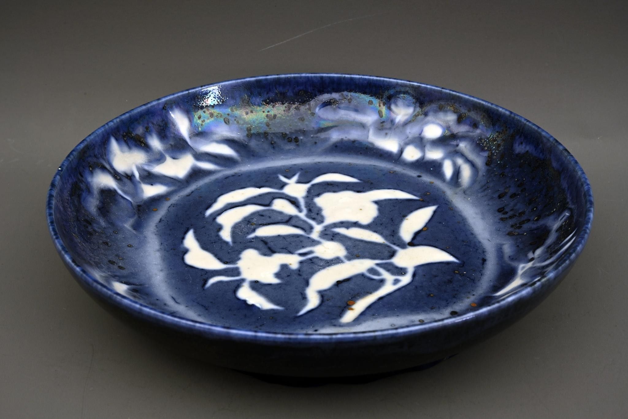 Premium Large deep porcelain dish with blue glaze decorated with whi…