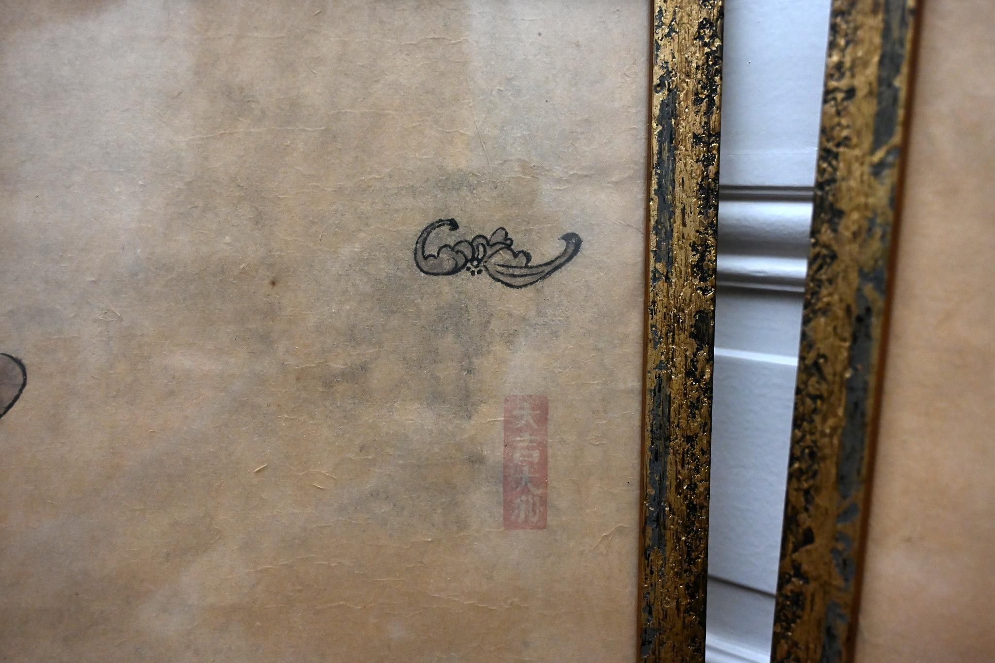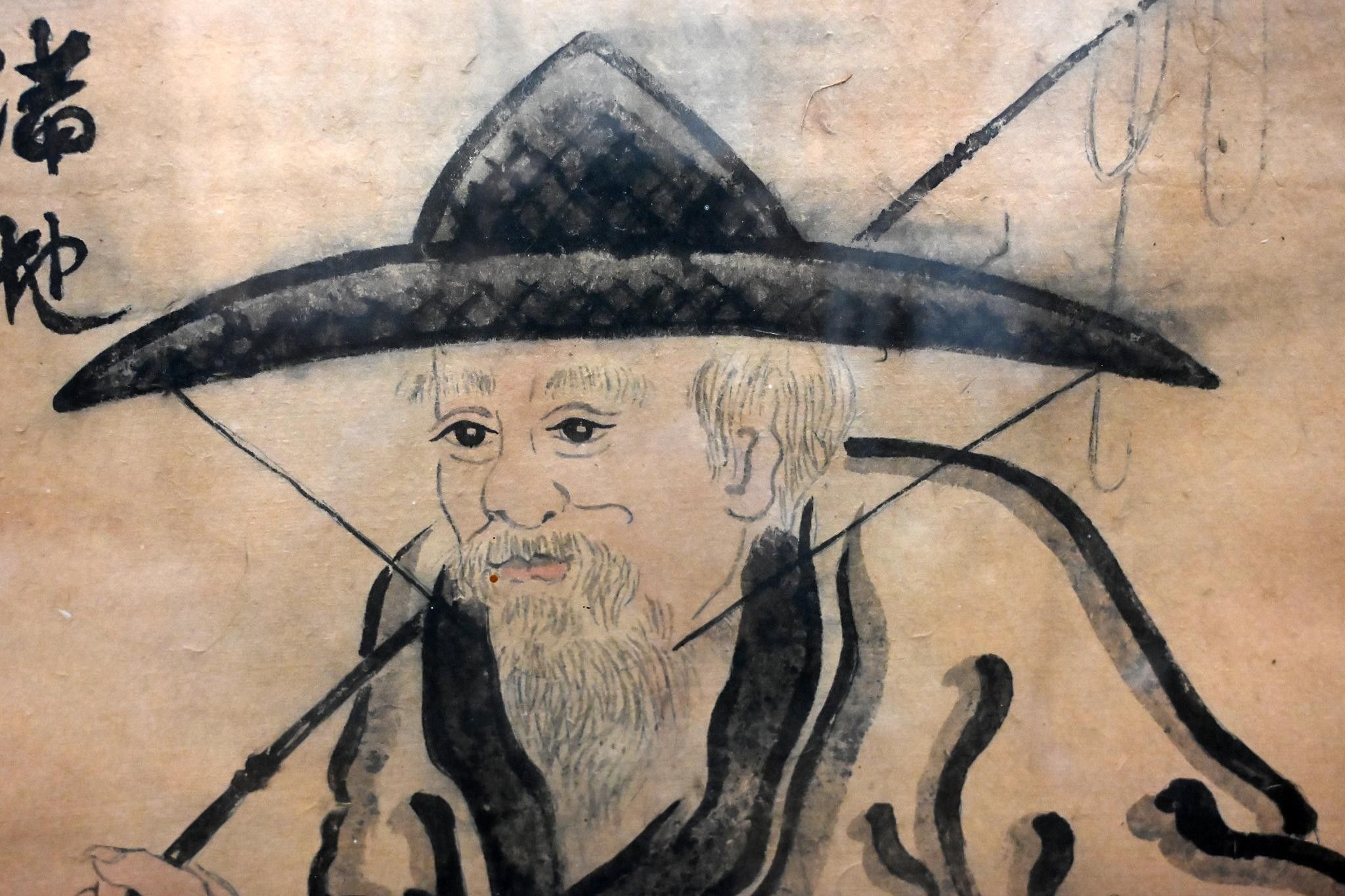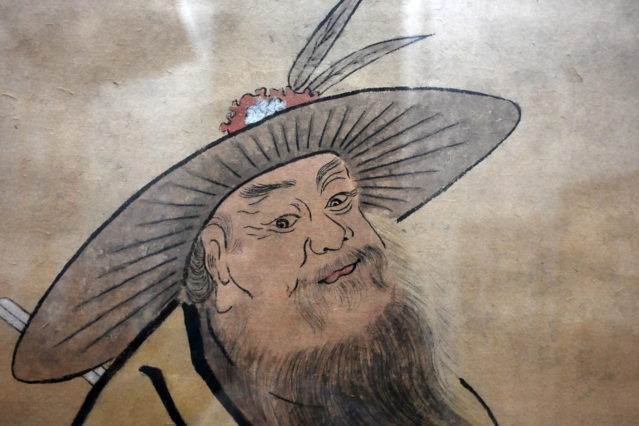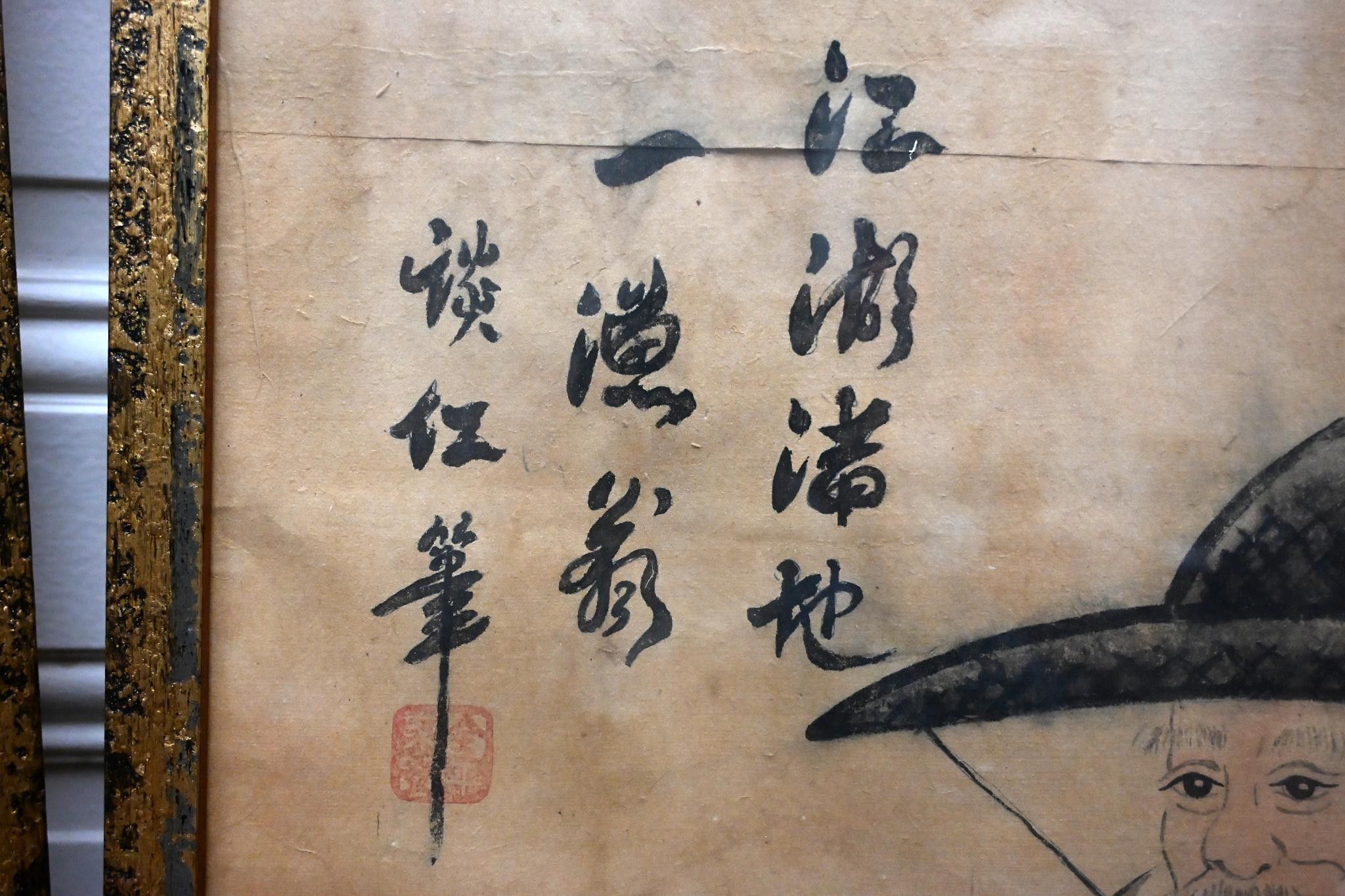 China - Characters suite of three drawings in ink and colour on paper Dimension 104 x 56 cm on view.