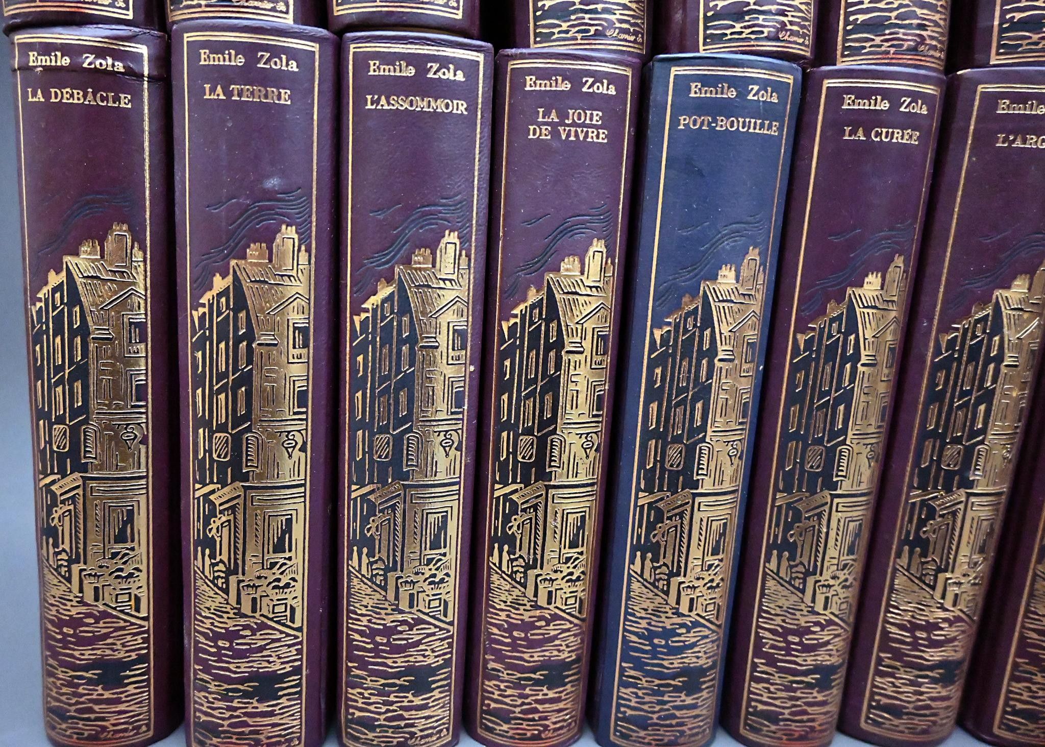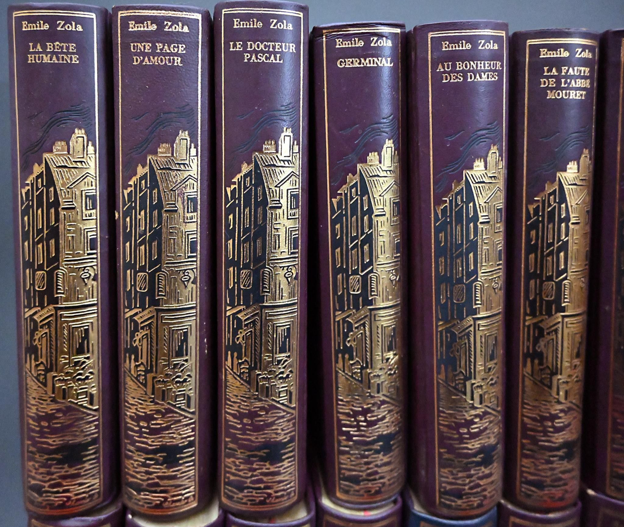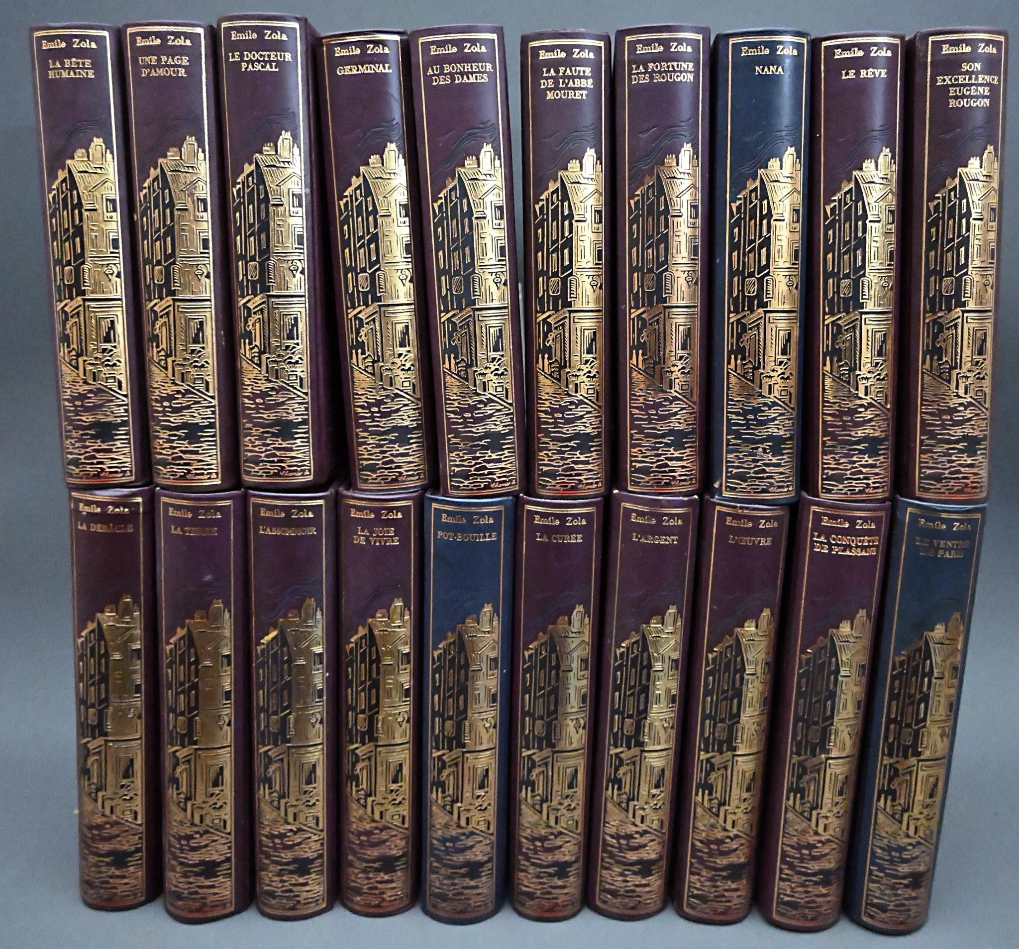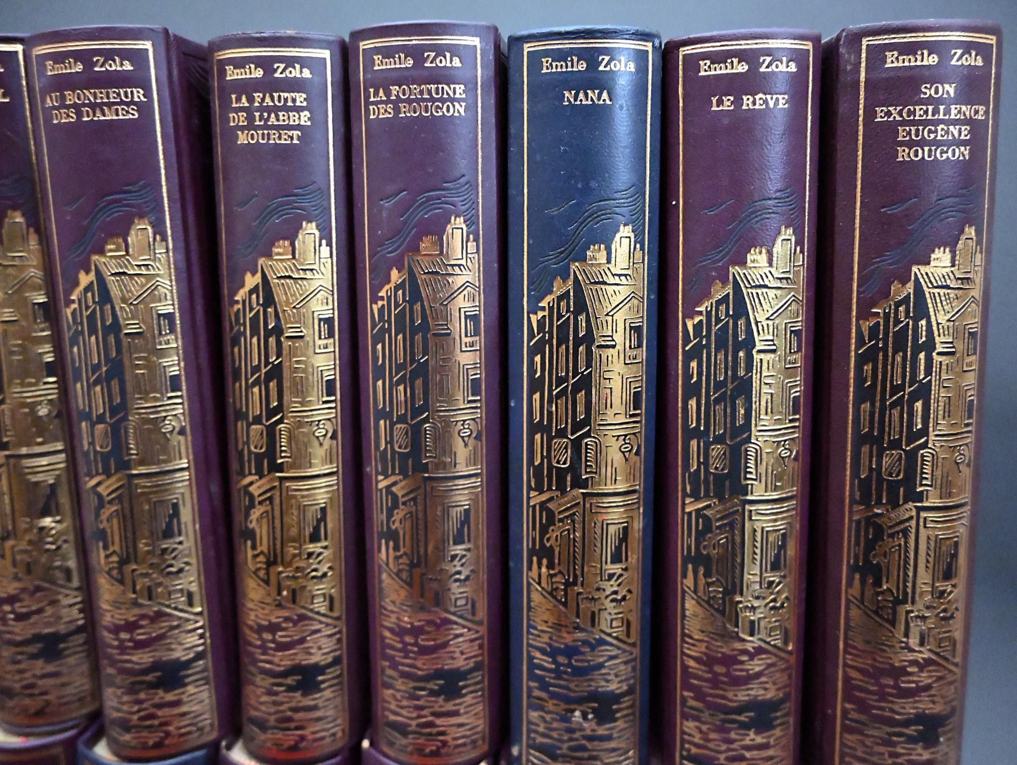 Éditions Jean de Bonnot : ZOLA Emile, - Les Rougon-Macquart. Histoire naturelle et sociale d'une famille sous le Second Empire - Set of twenty works from the Collection Les Œuvres d'Emile Zola: La bête humaine, une page d'amour, le docteur Pascal, Germinal, Au Bonheur des dames, la faute de l'abbé Mouret, la fortune des Rougon, Nana, le rêve, son excellence Eugène Rougon, la débâcle, la terre, l'assommoir, la joie de vivre, peaubouille, la curée, l'argent, l'œuvre, la conquête plassans, le ventre de paris .
