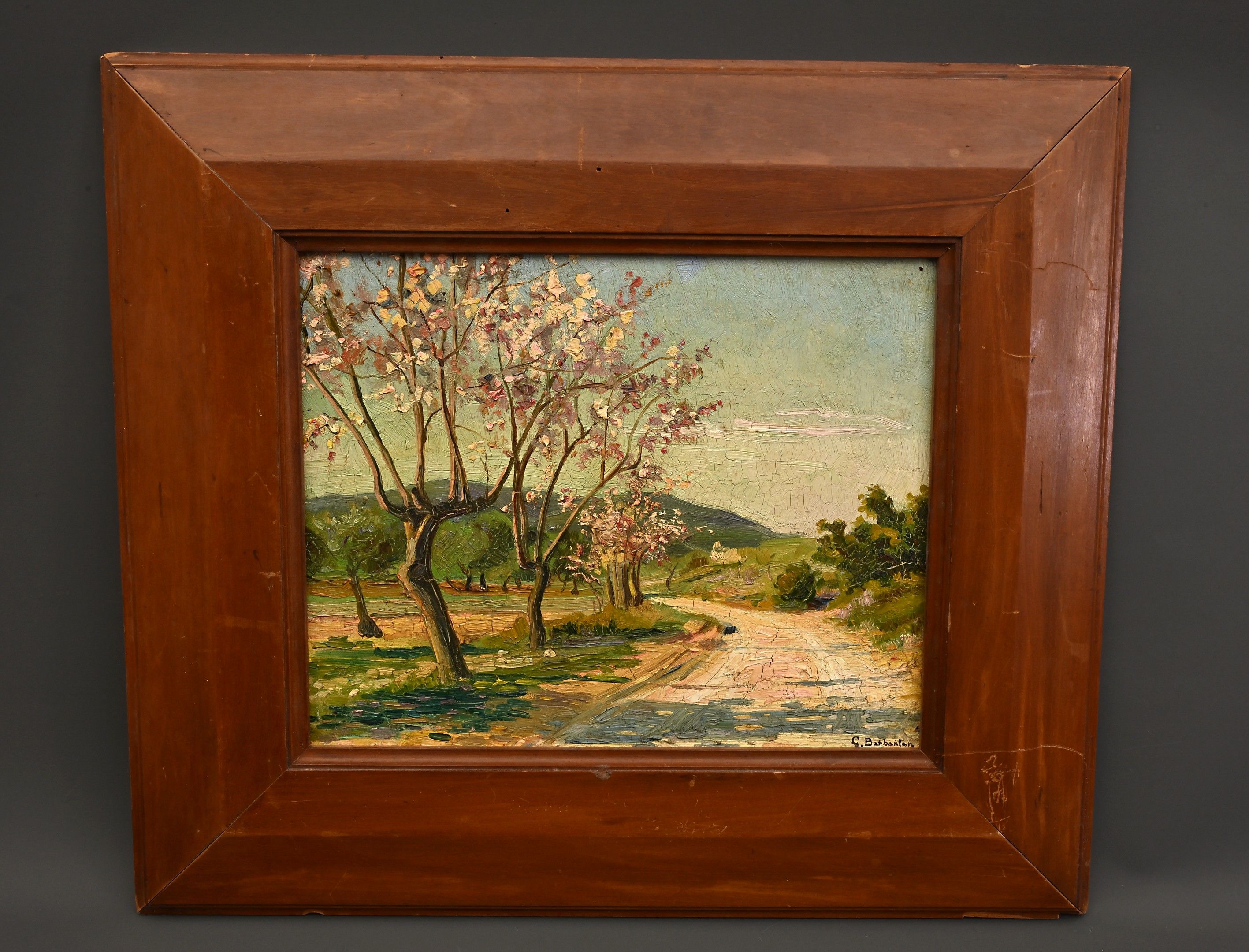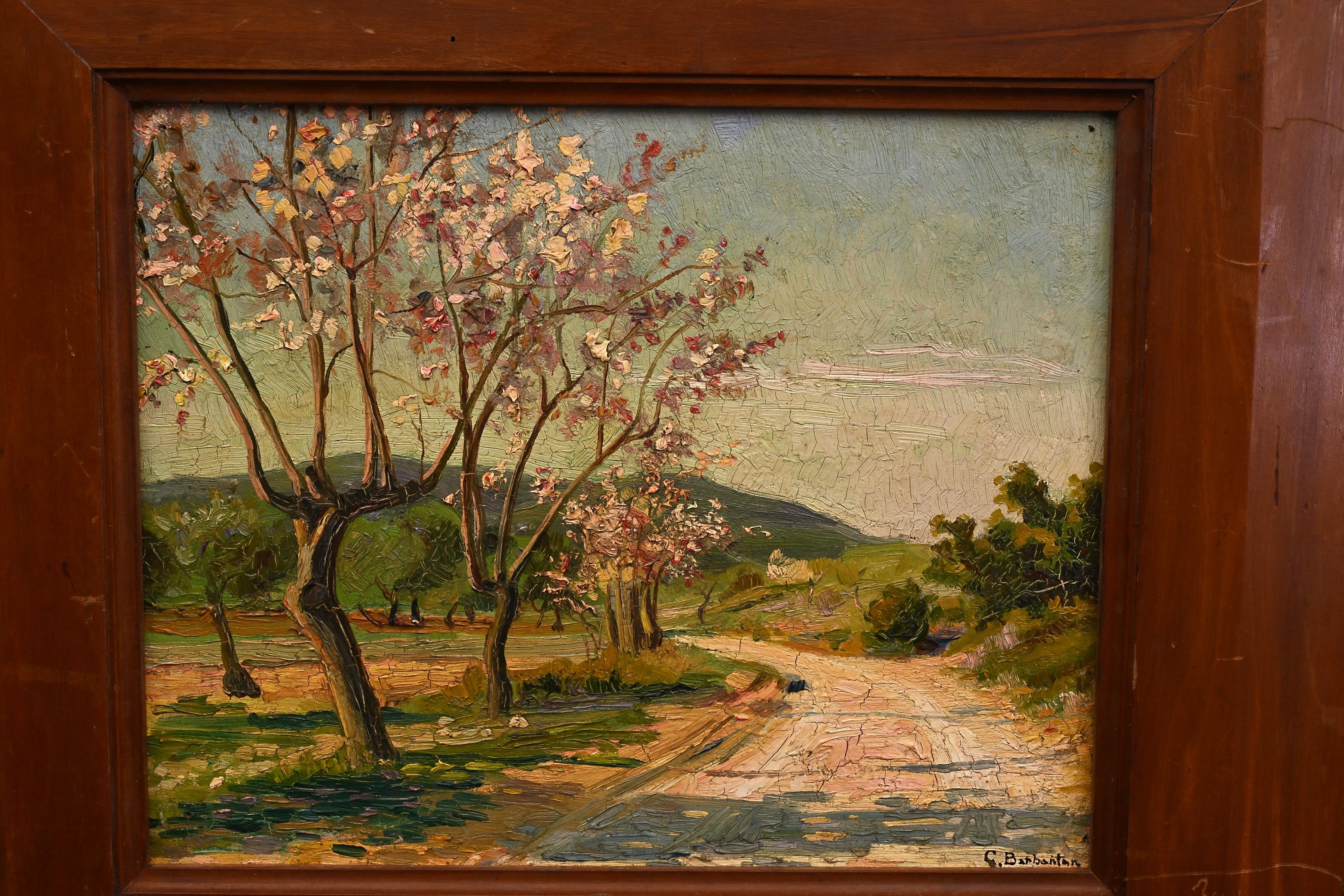 Gaston BARBANTAN (1882-1961) The almond trees in bloom. Oil on card signed lower right. 28 x 35 cm.
