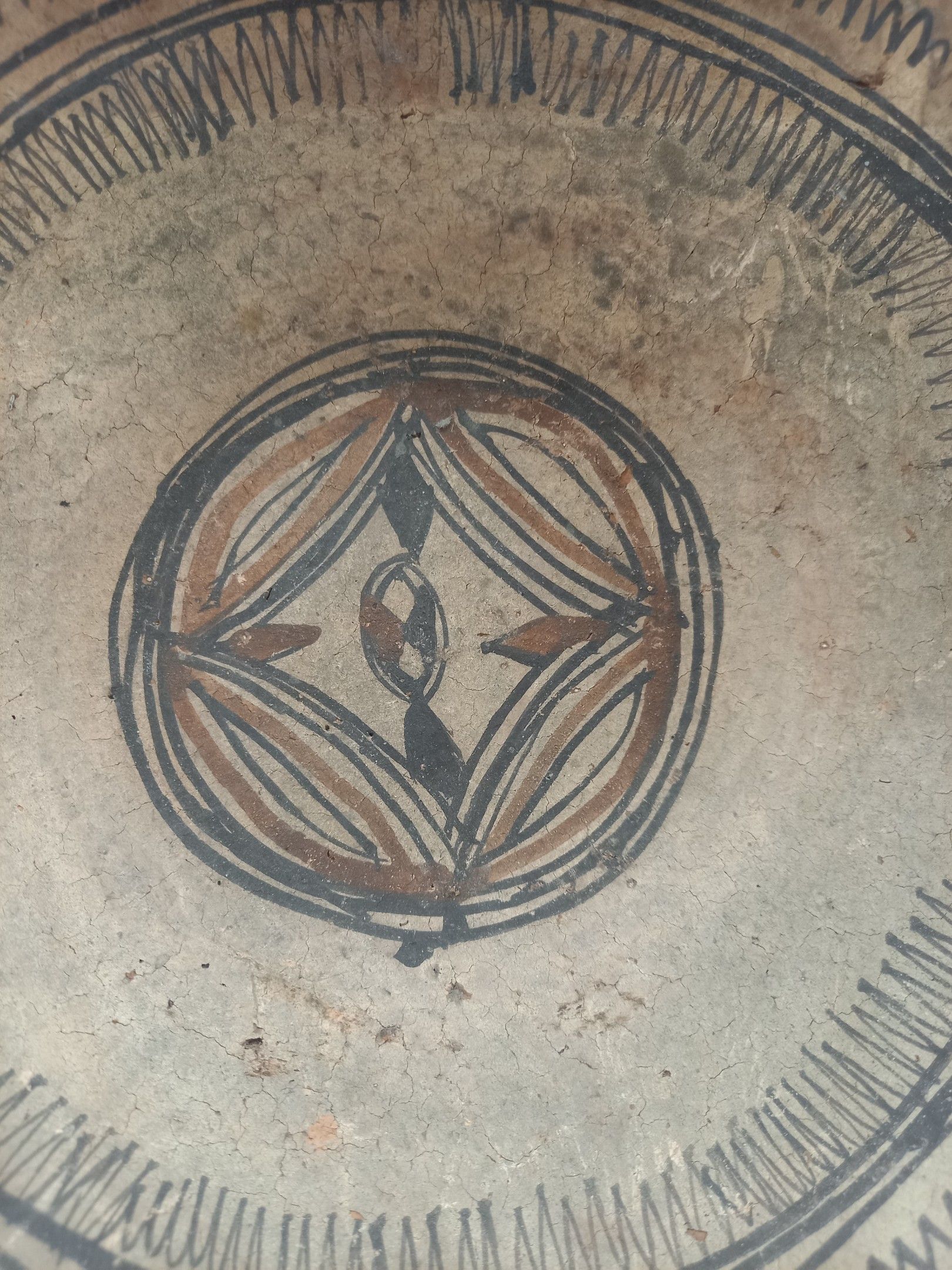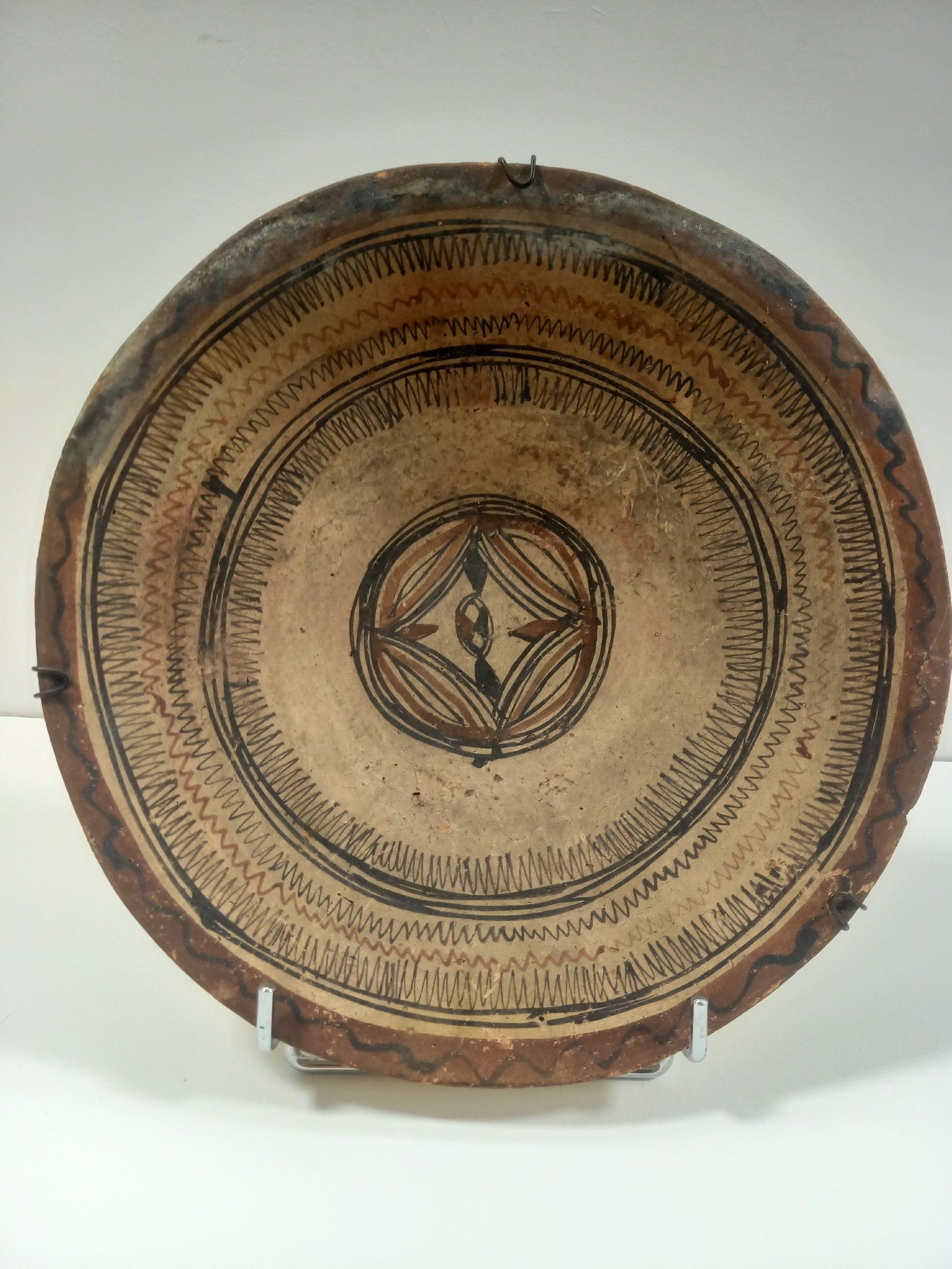 Morocco: terracotta bowl decorated with a central motif. Small chip. As is. Diameter 29 cm.