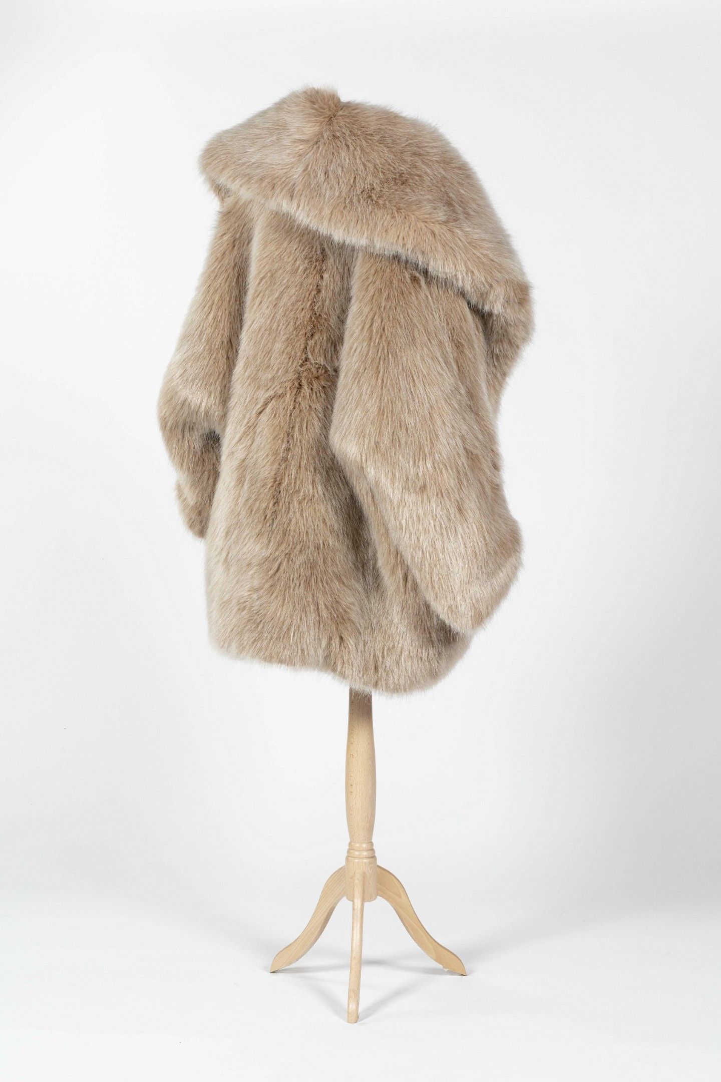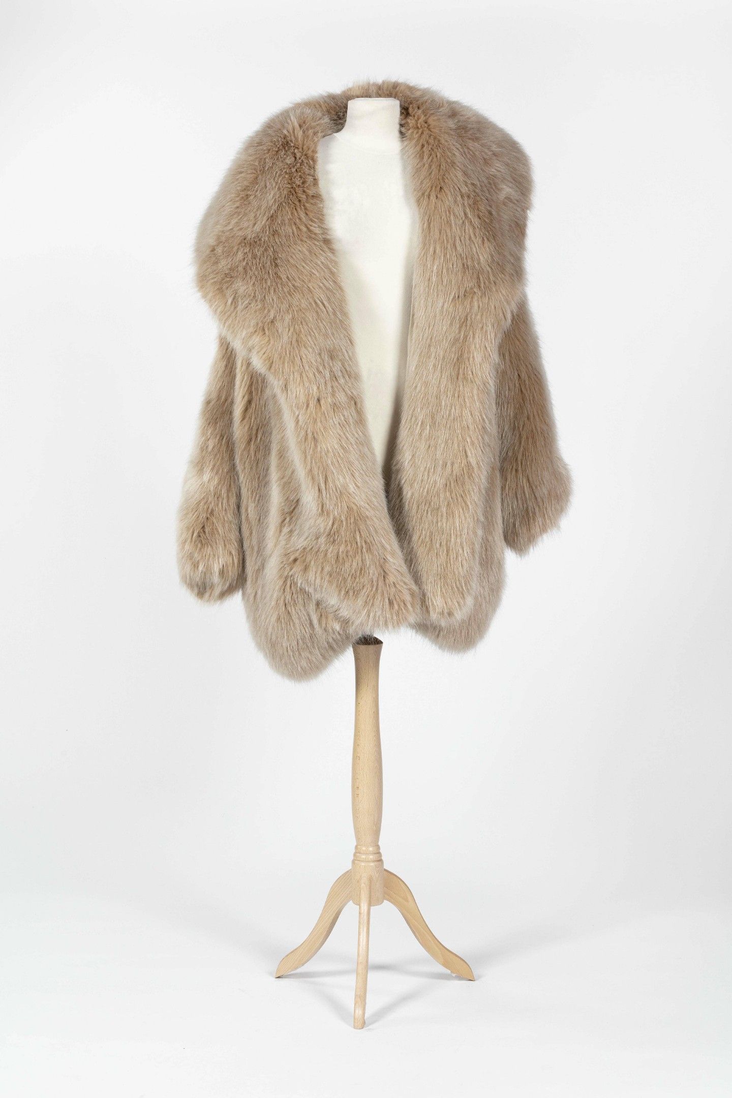 COUTURE Beige faux fur overcoat, long sleeves, large shawl c…