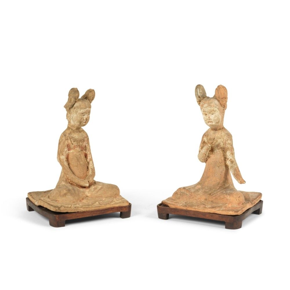 Premium 43. TWO POTTERY FIGURES OF SEATED LADIES