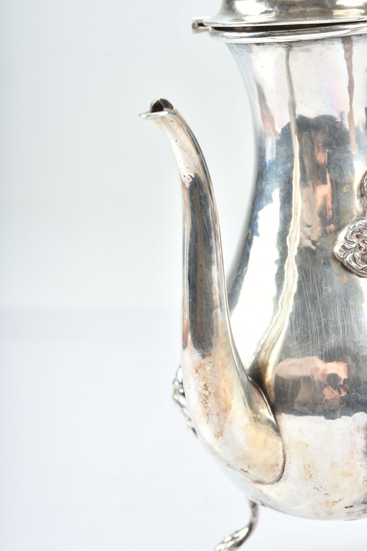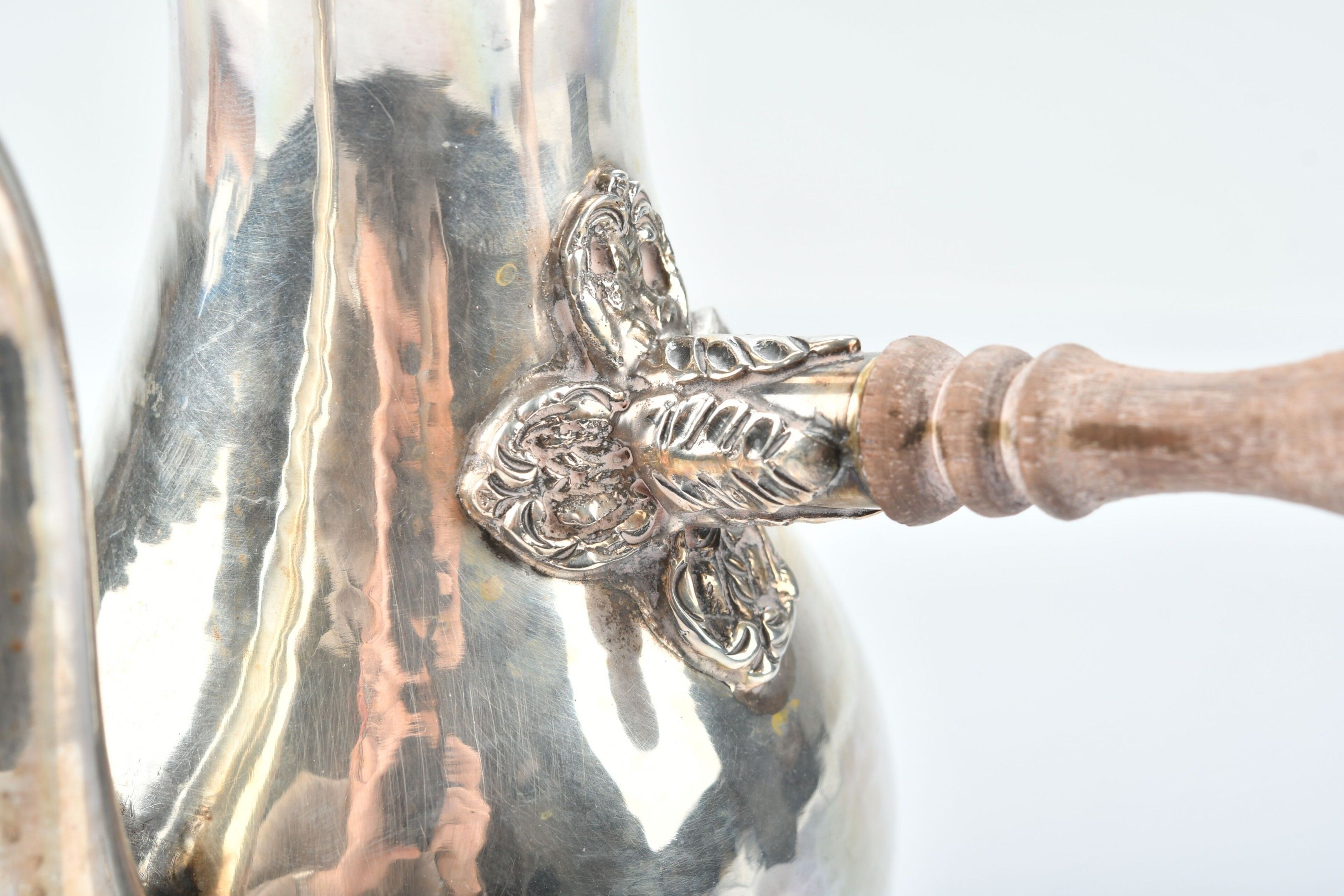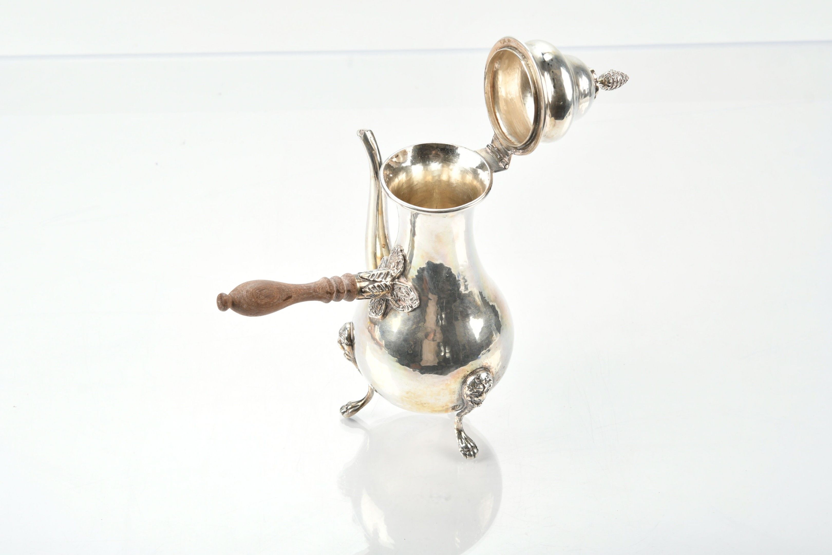 Turkish glass jug in silver 800 thousandth, wooden handle.