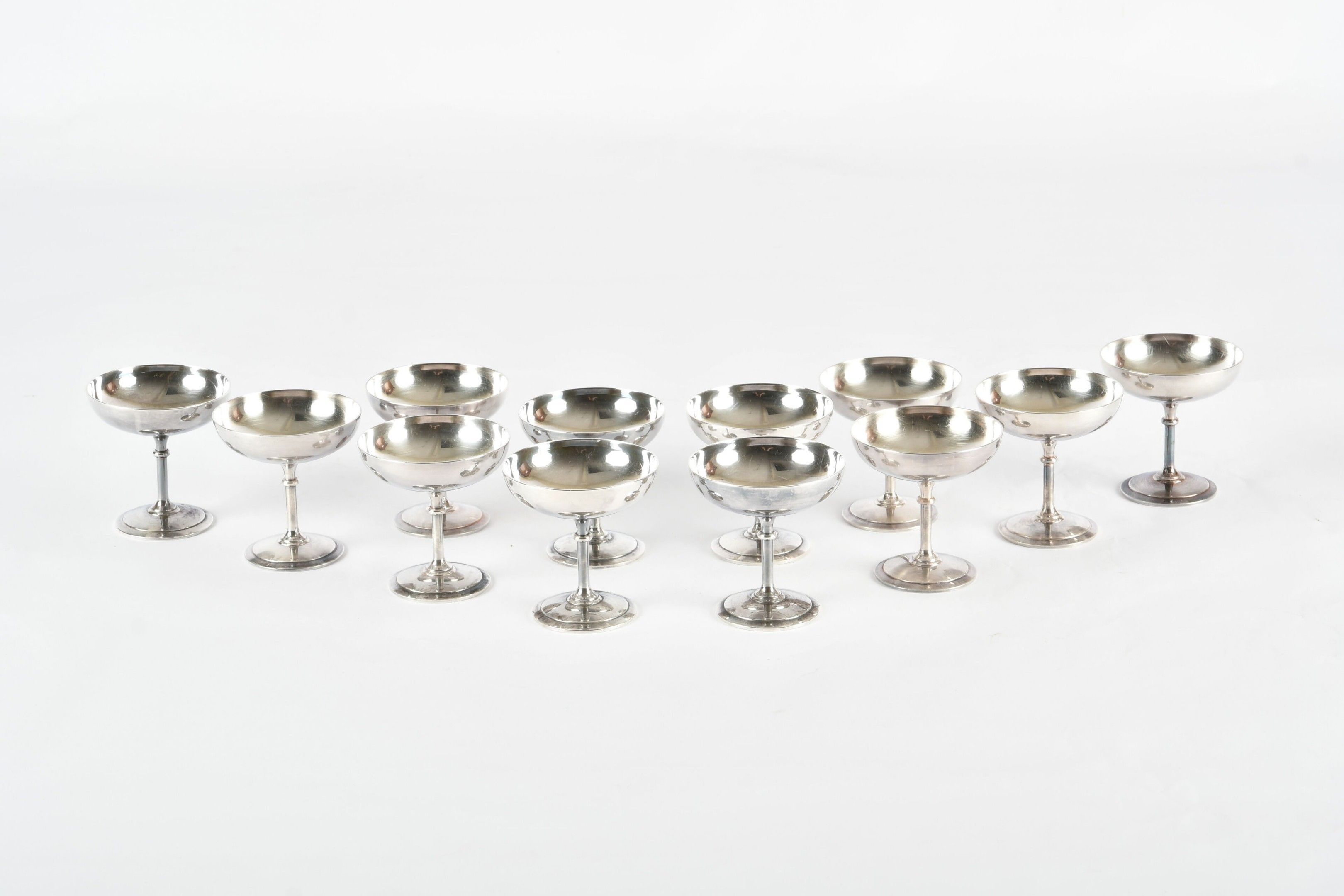 CHRISTOFLE. Suite of twelve silver-plated champagne glasses