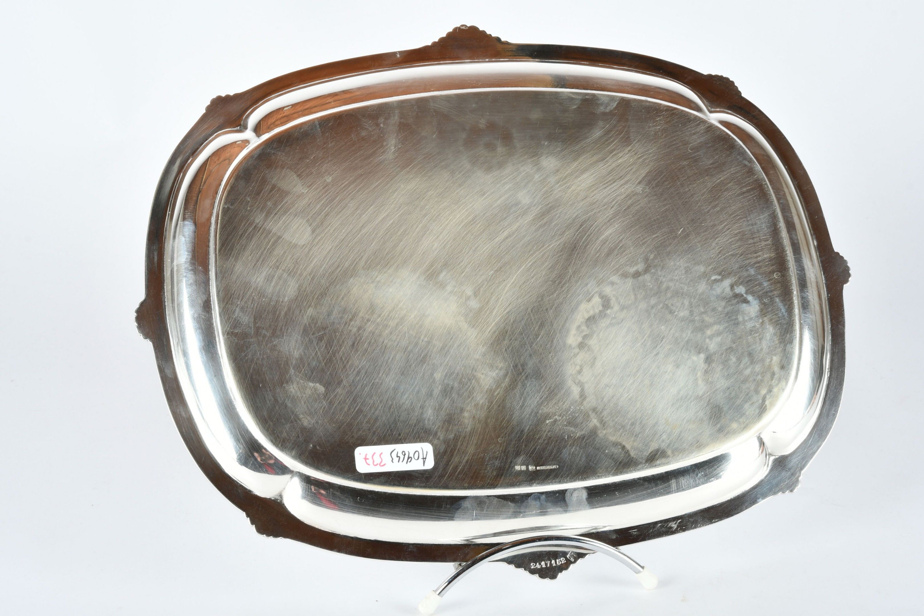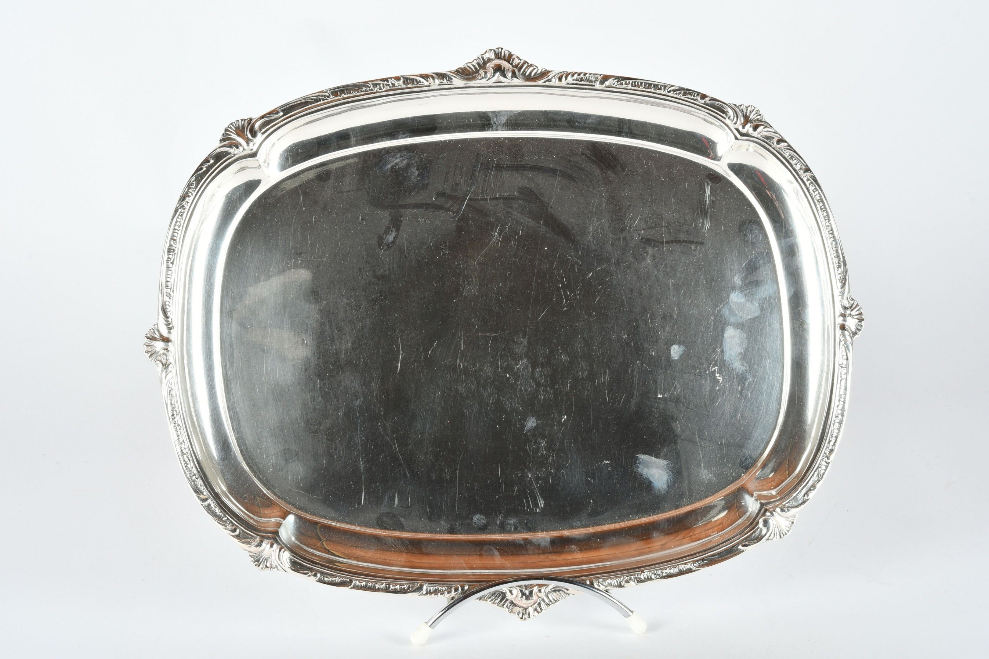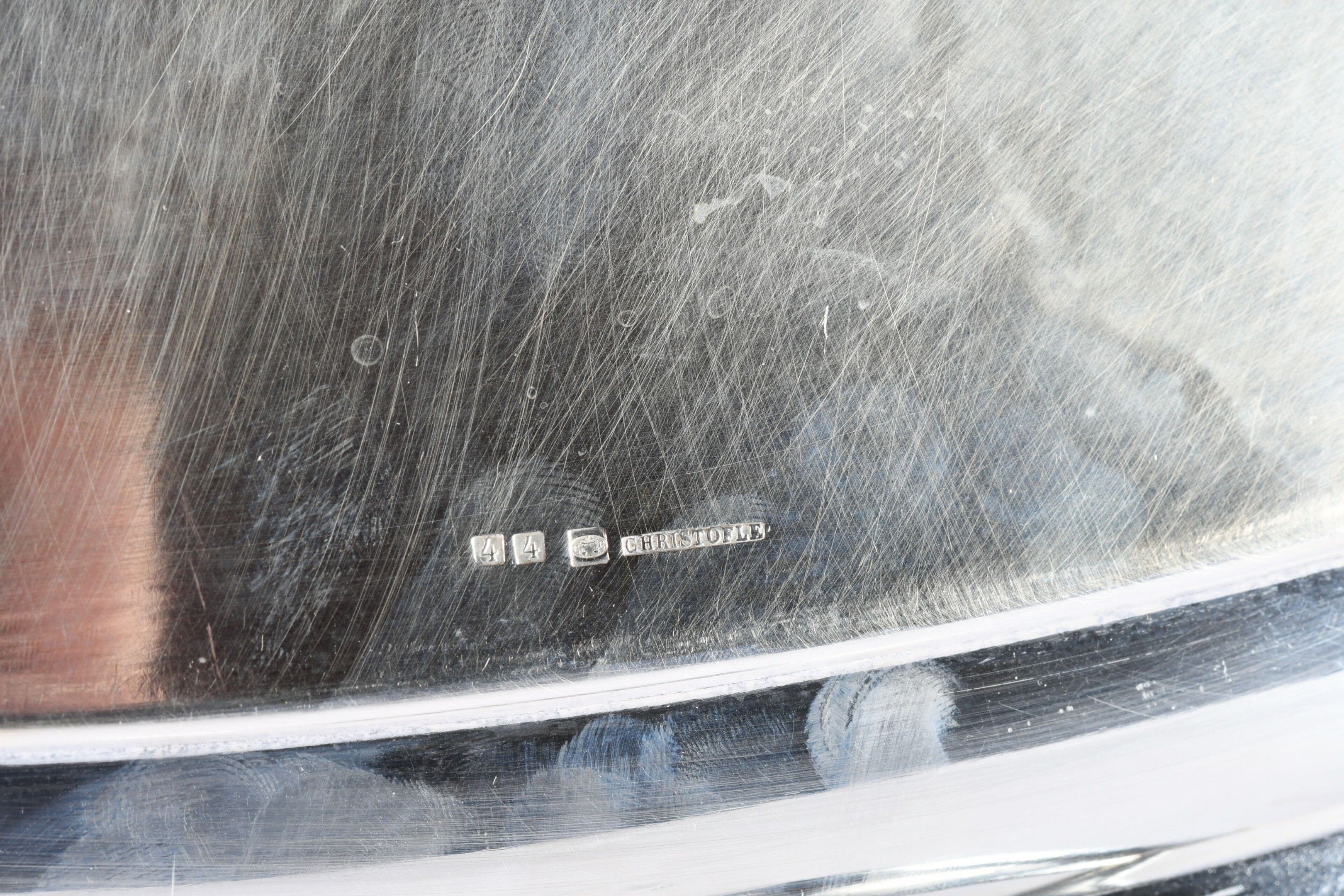 CHRISTOFLE. Rectangular silver-plated tray with rocaille dec…