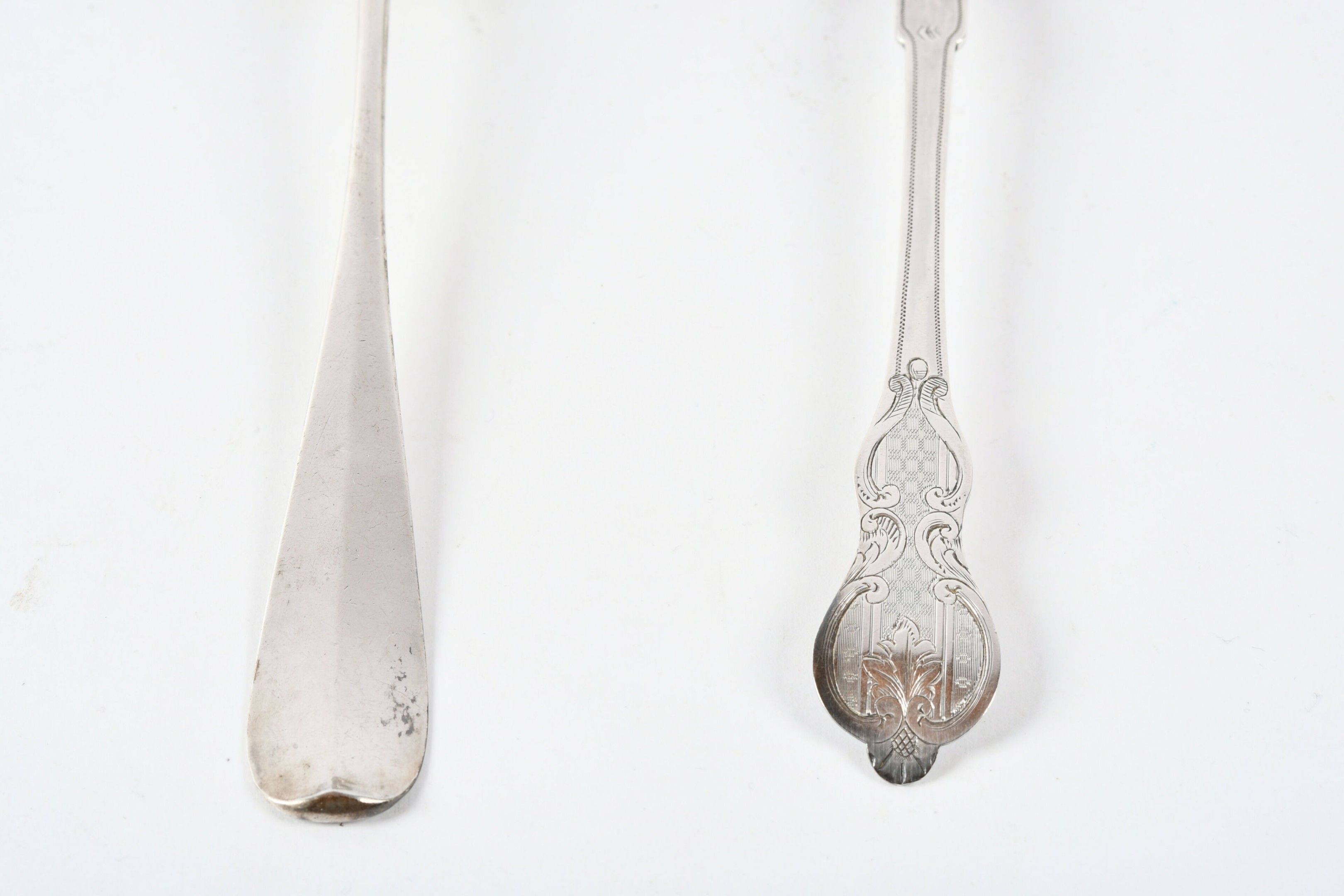 SILVER VITRINARY OBJECTS: small poly-lobed platter; two spoo…