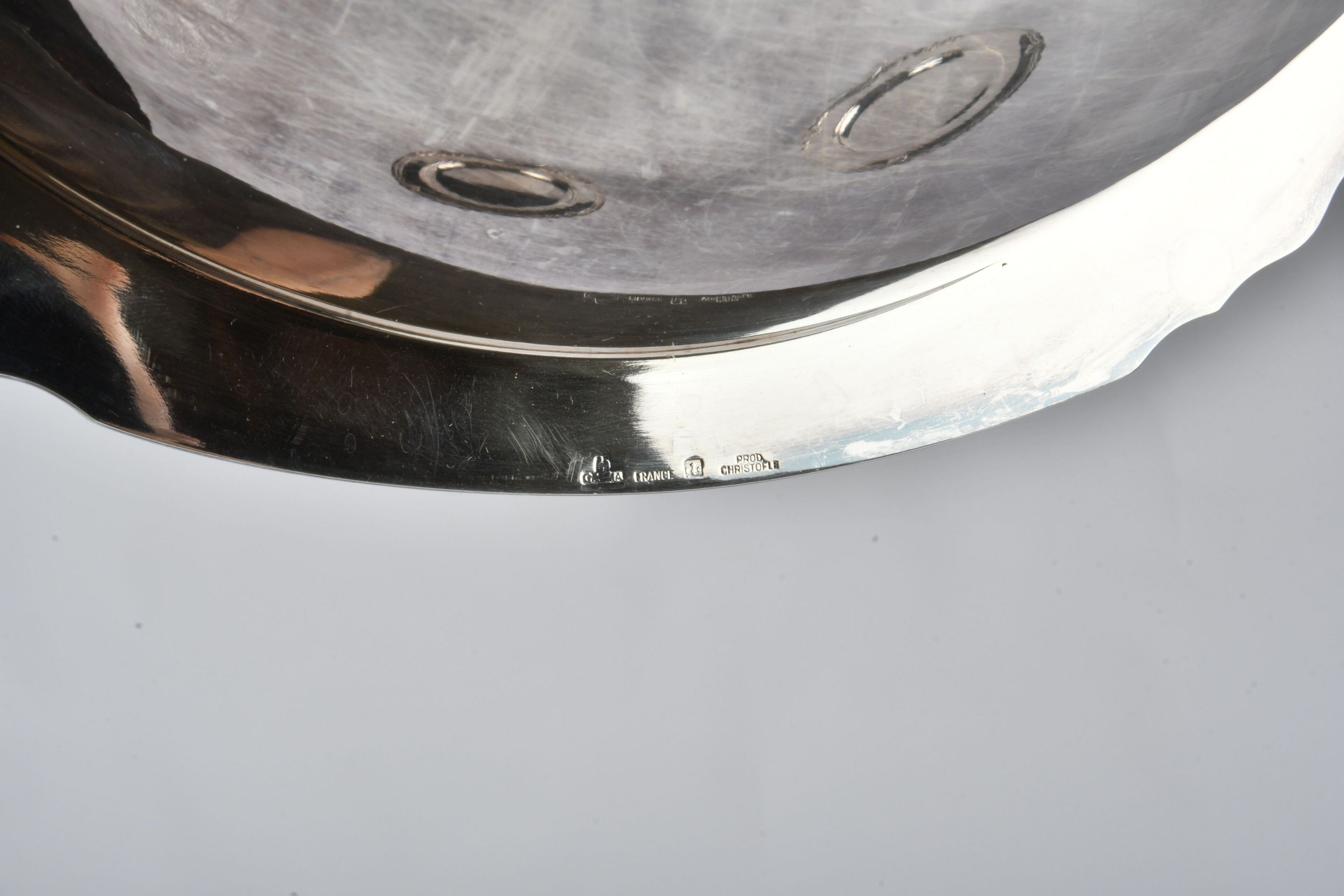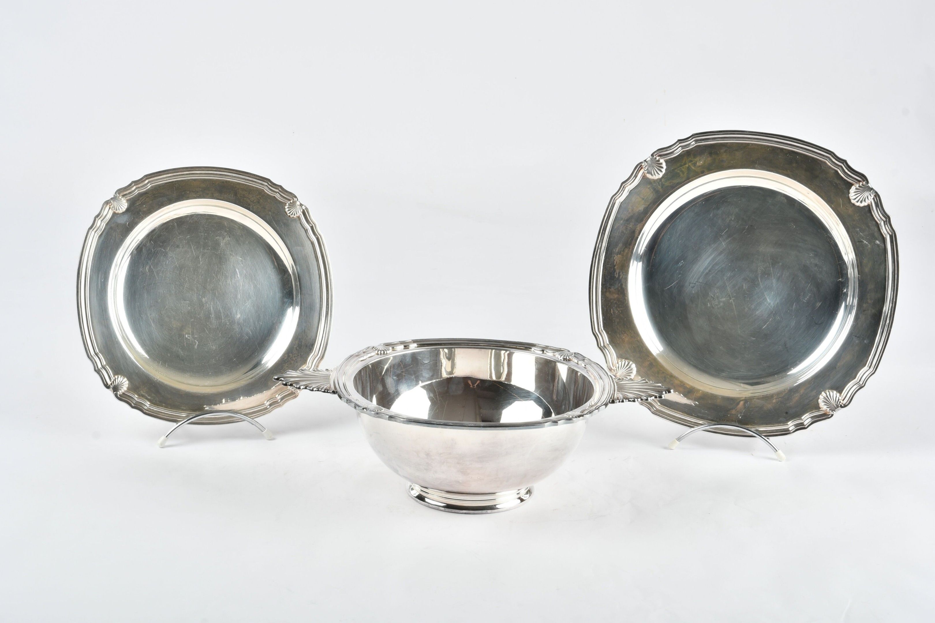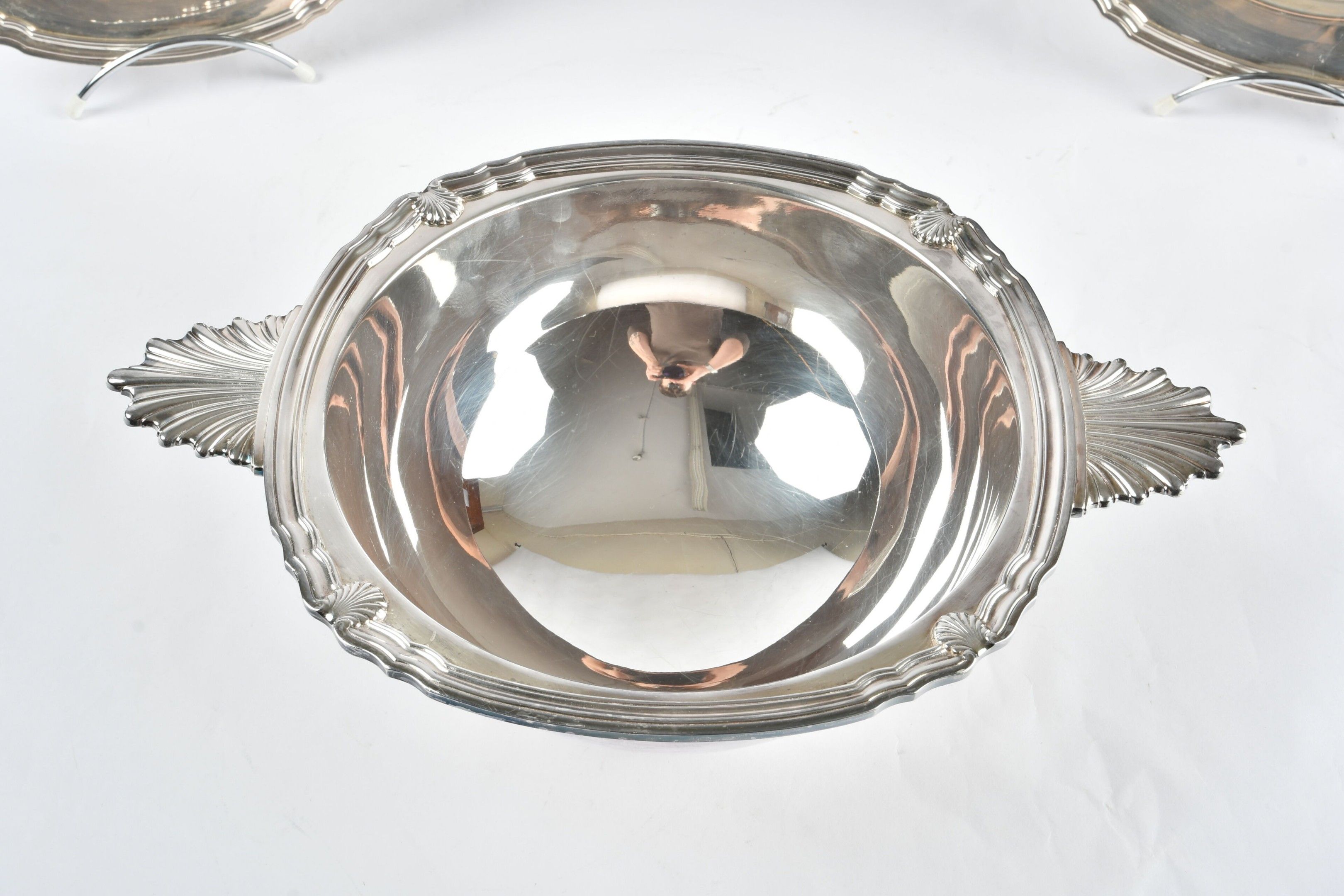 GALLIA (Christofle production). Légumier with handles and set of two silver-plated dishes, shell model. L. Légumier: 39 cm - L. dishes: 27 and 32 cm