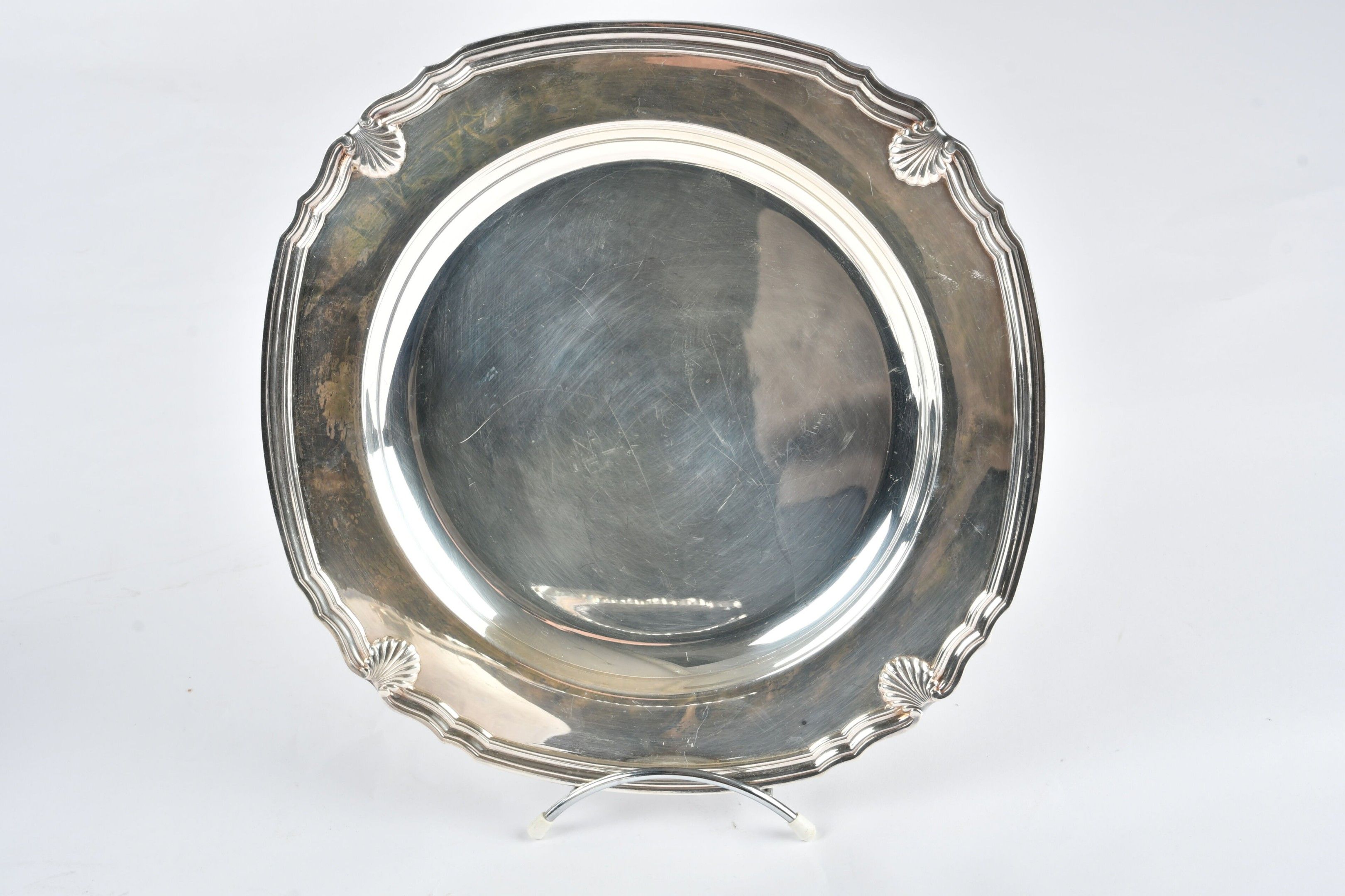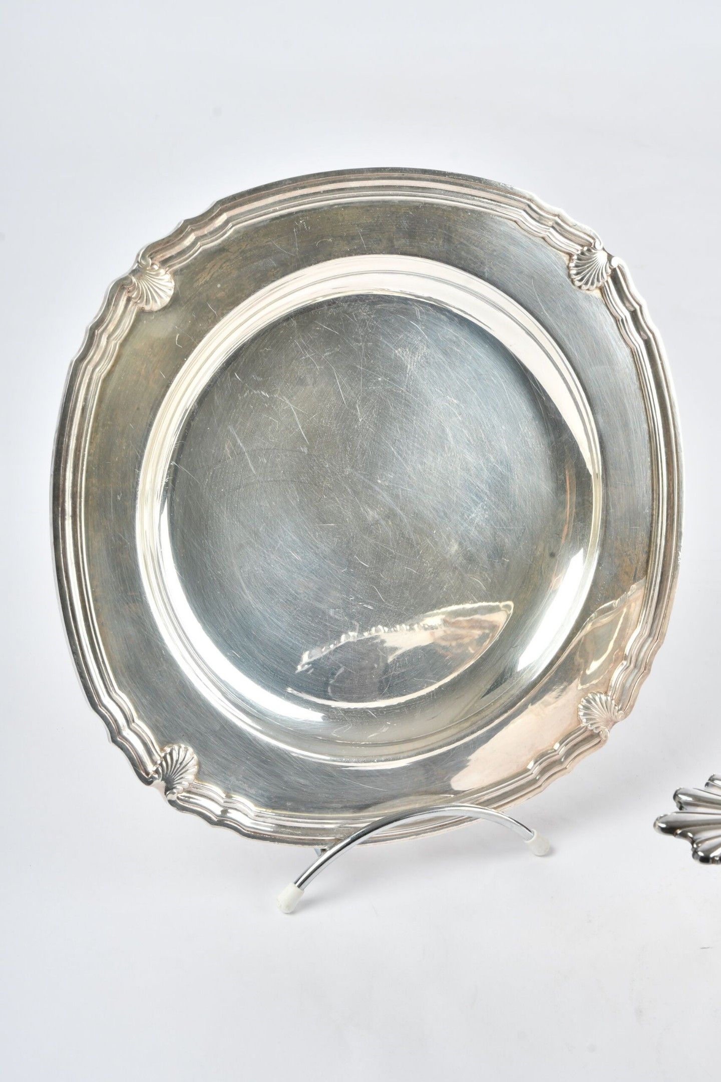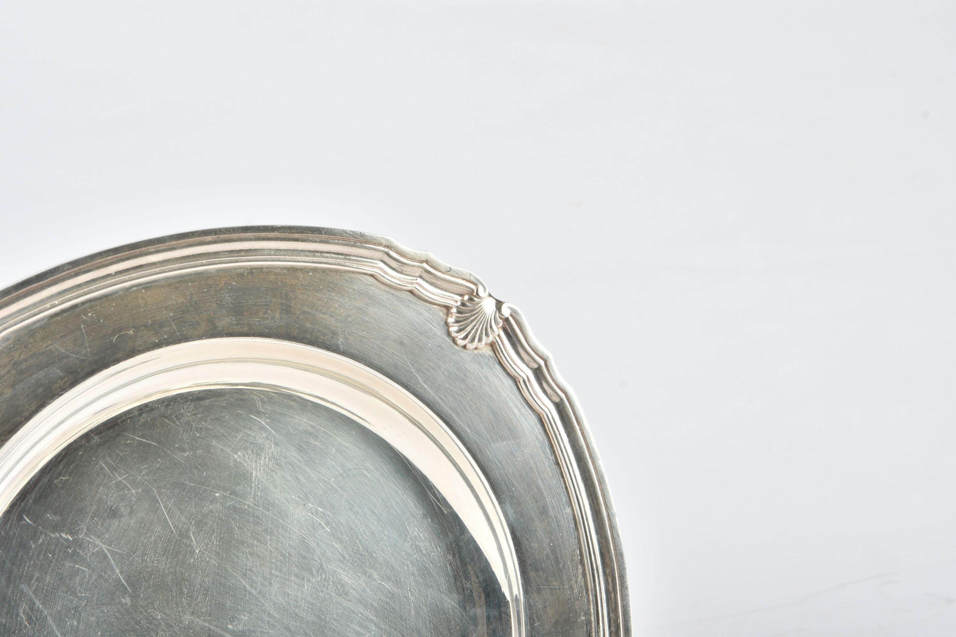 GALLIA (Christofle production). Légumier with handles and set of two silver-plated dishes, shell model. L. Légumier: 39 cm - L. dishes: 27 and 32 cm
