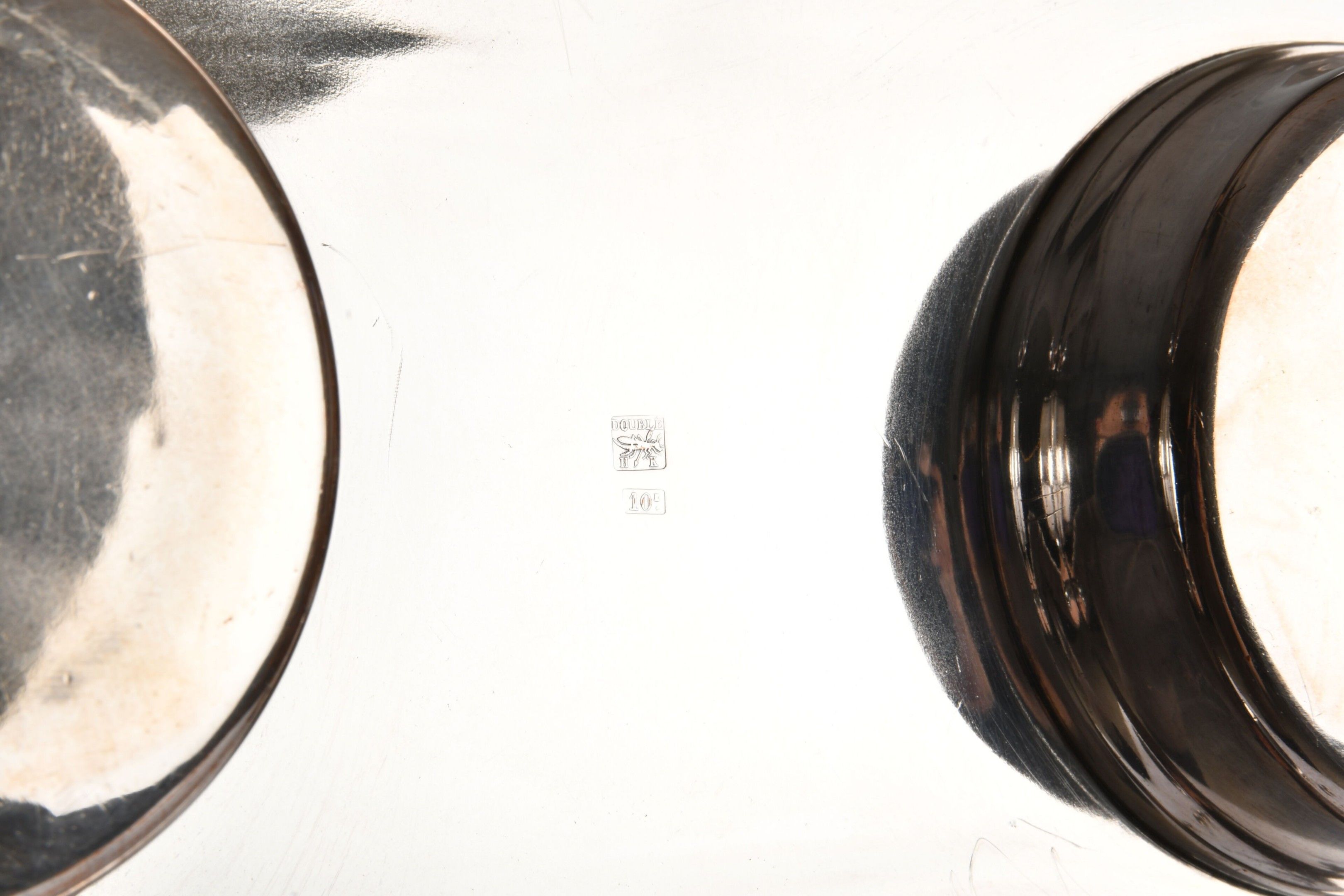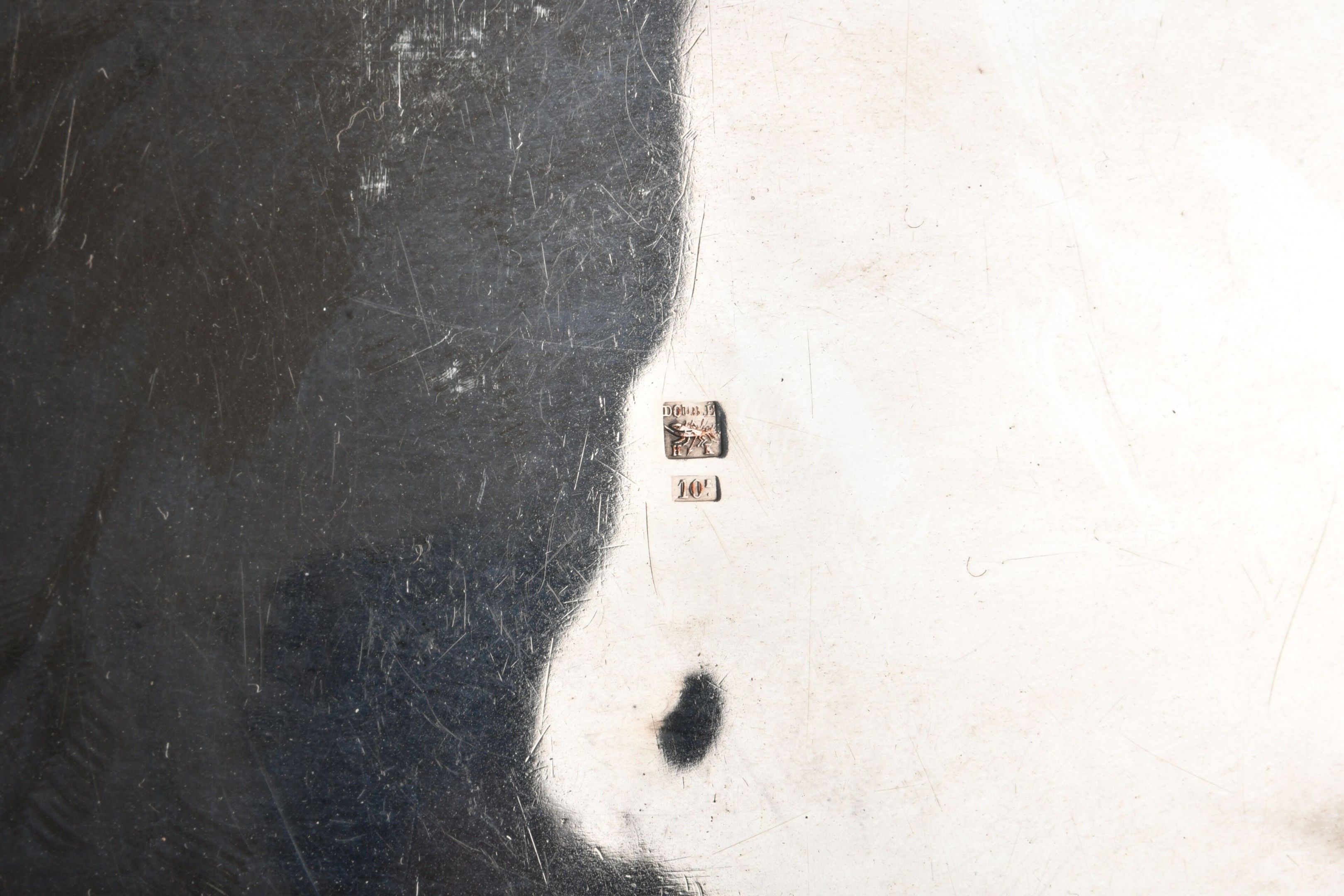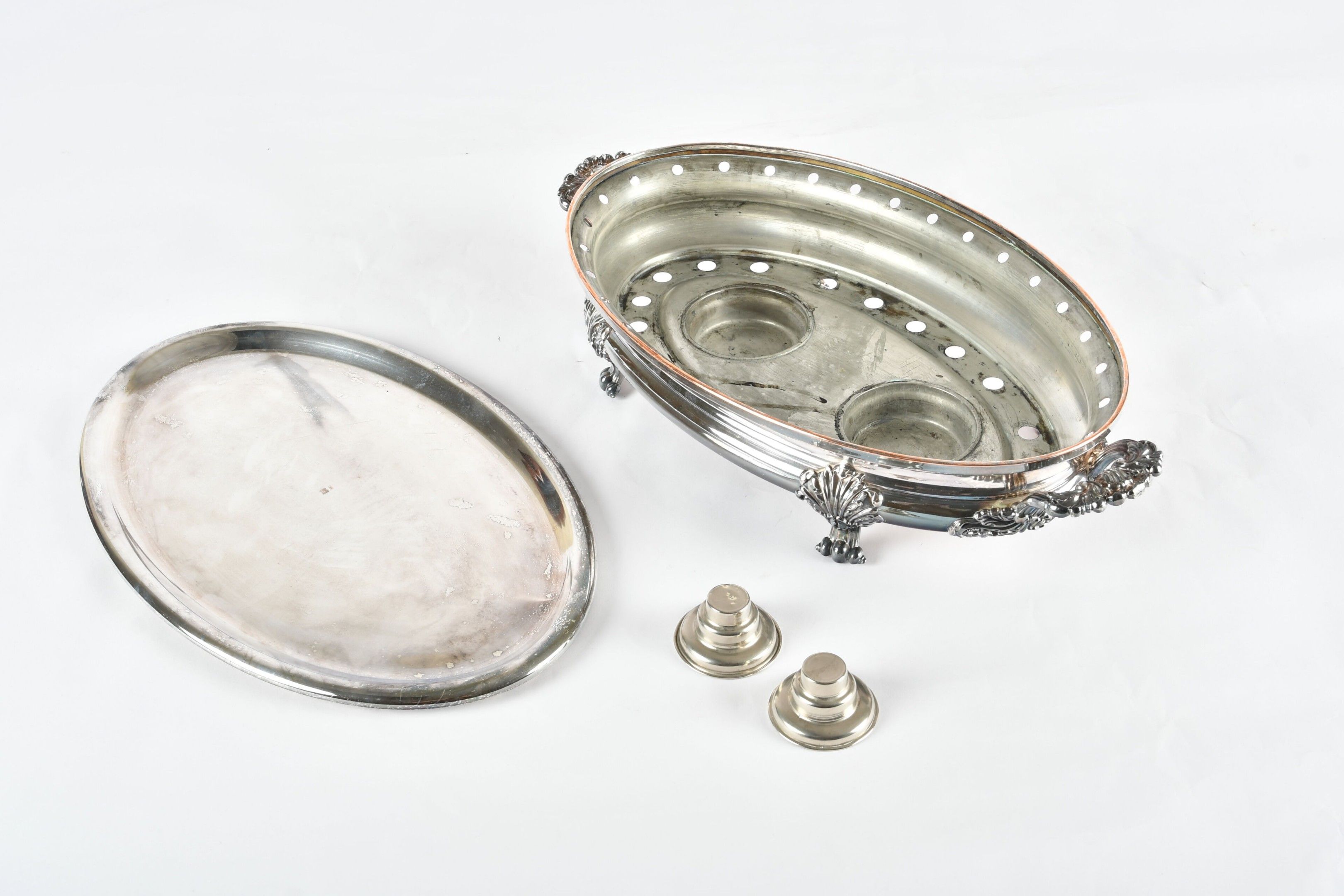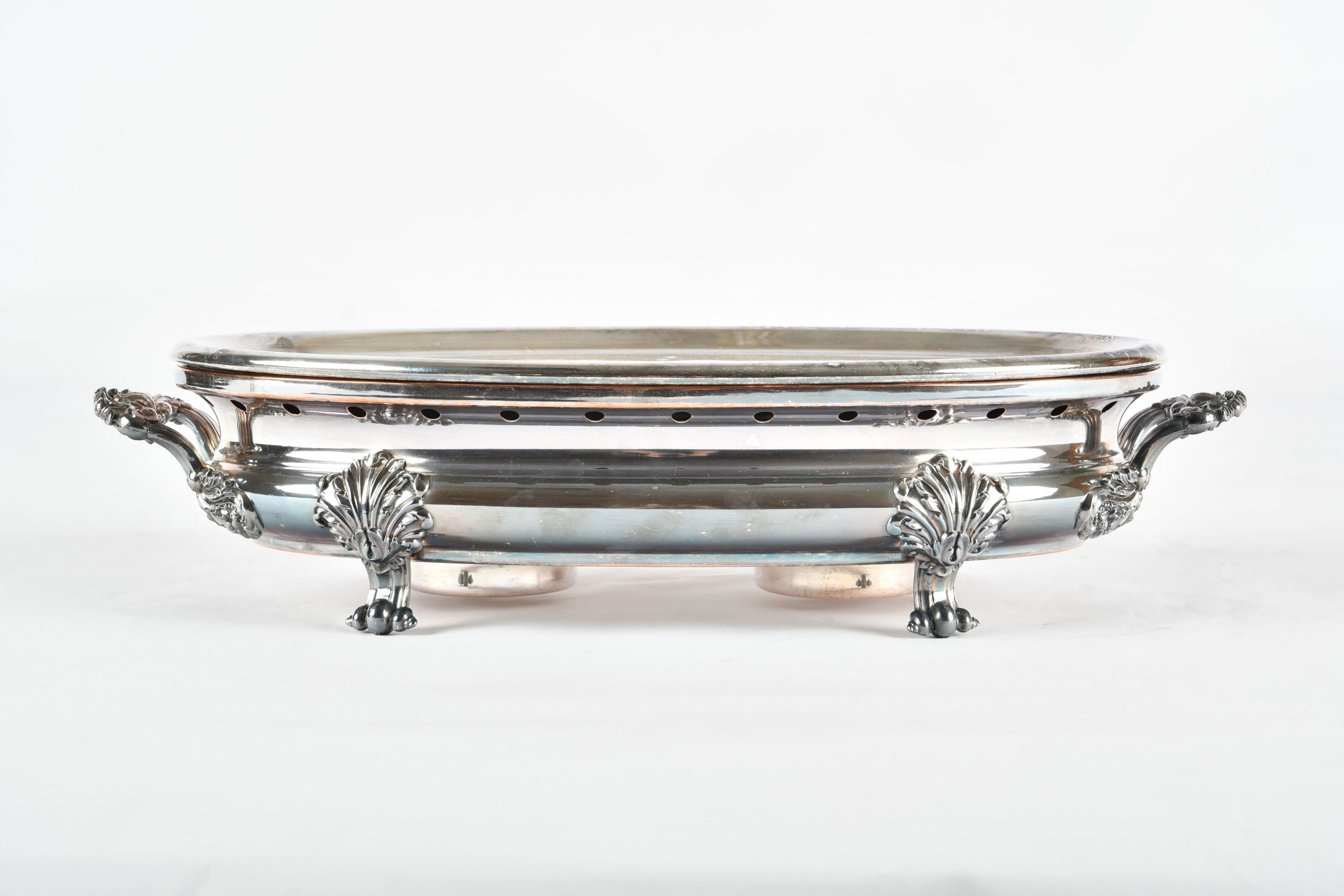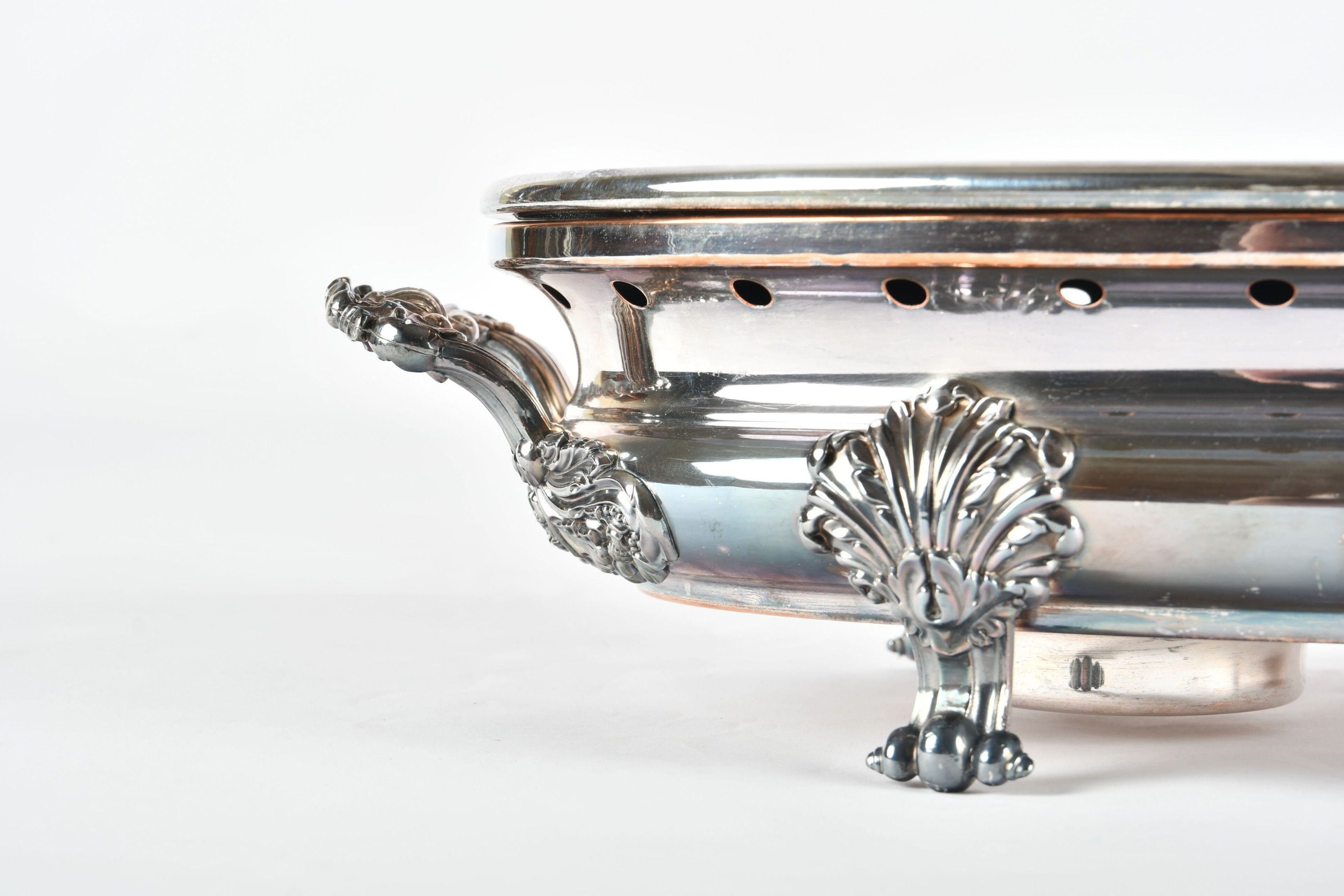 A silver-lined metal TABLE HEATER with handles standing on four legs 19th century. L. 48 cm