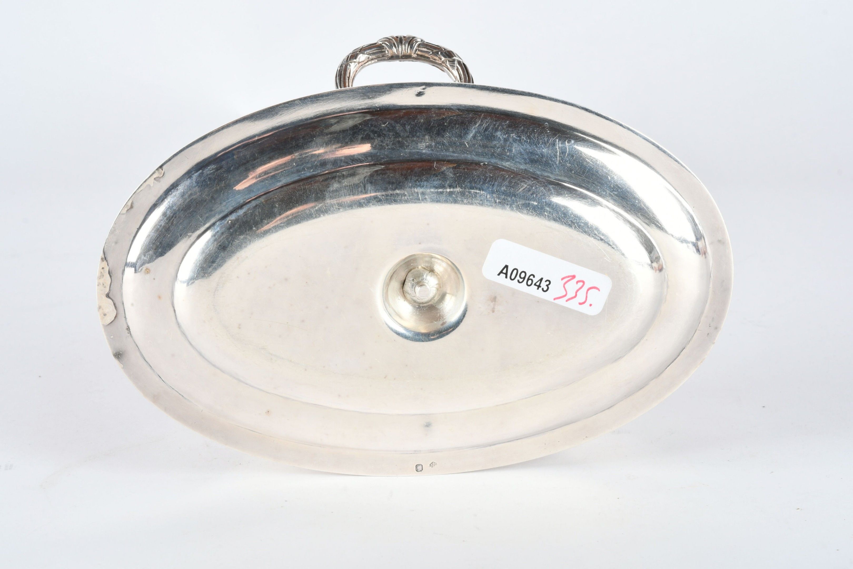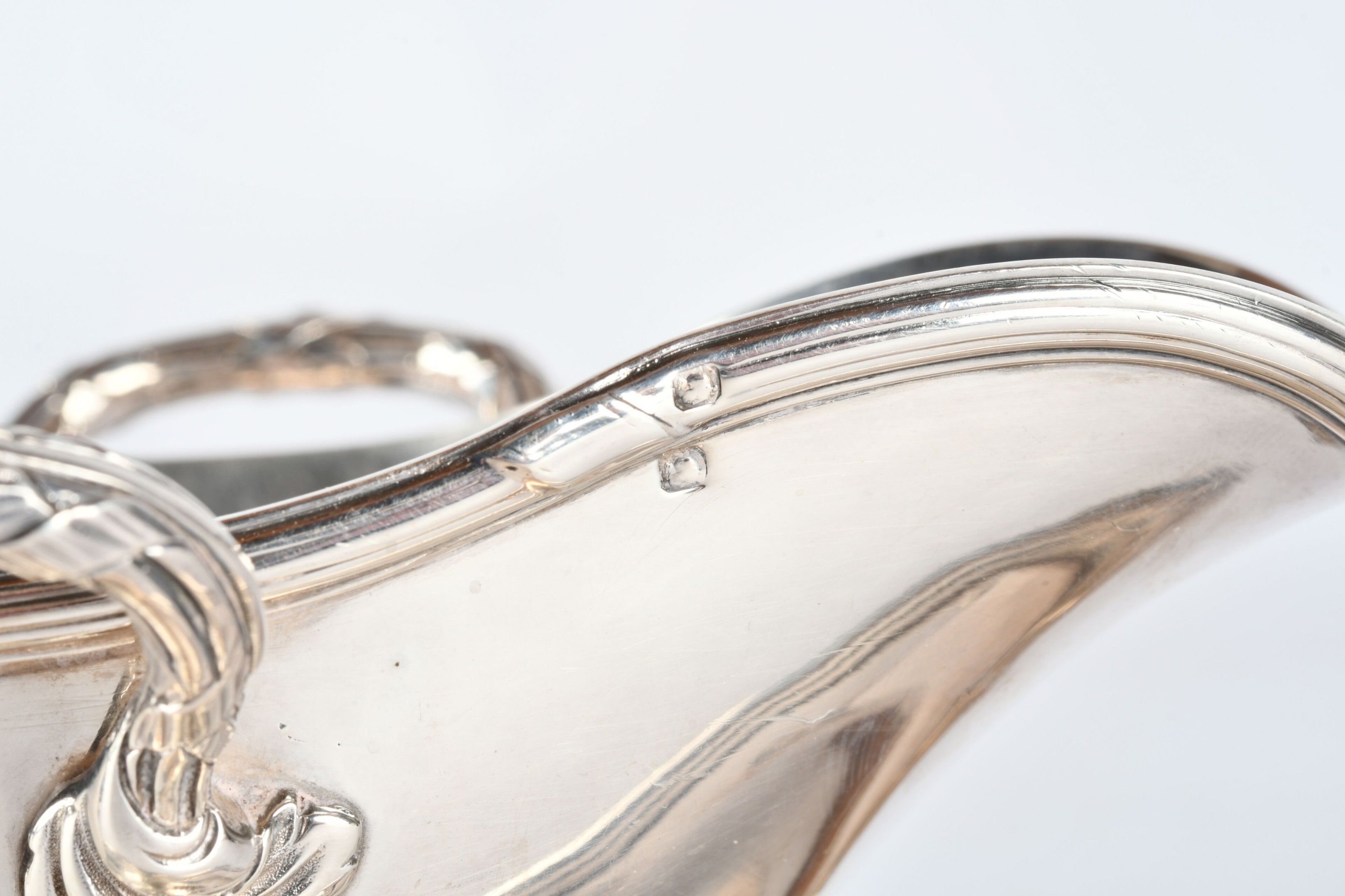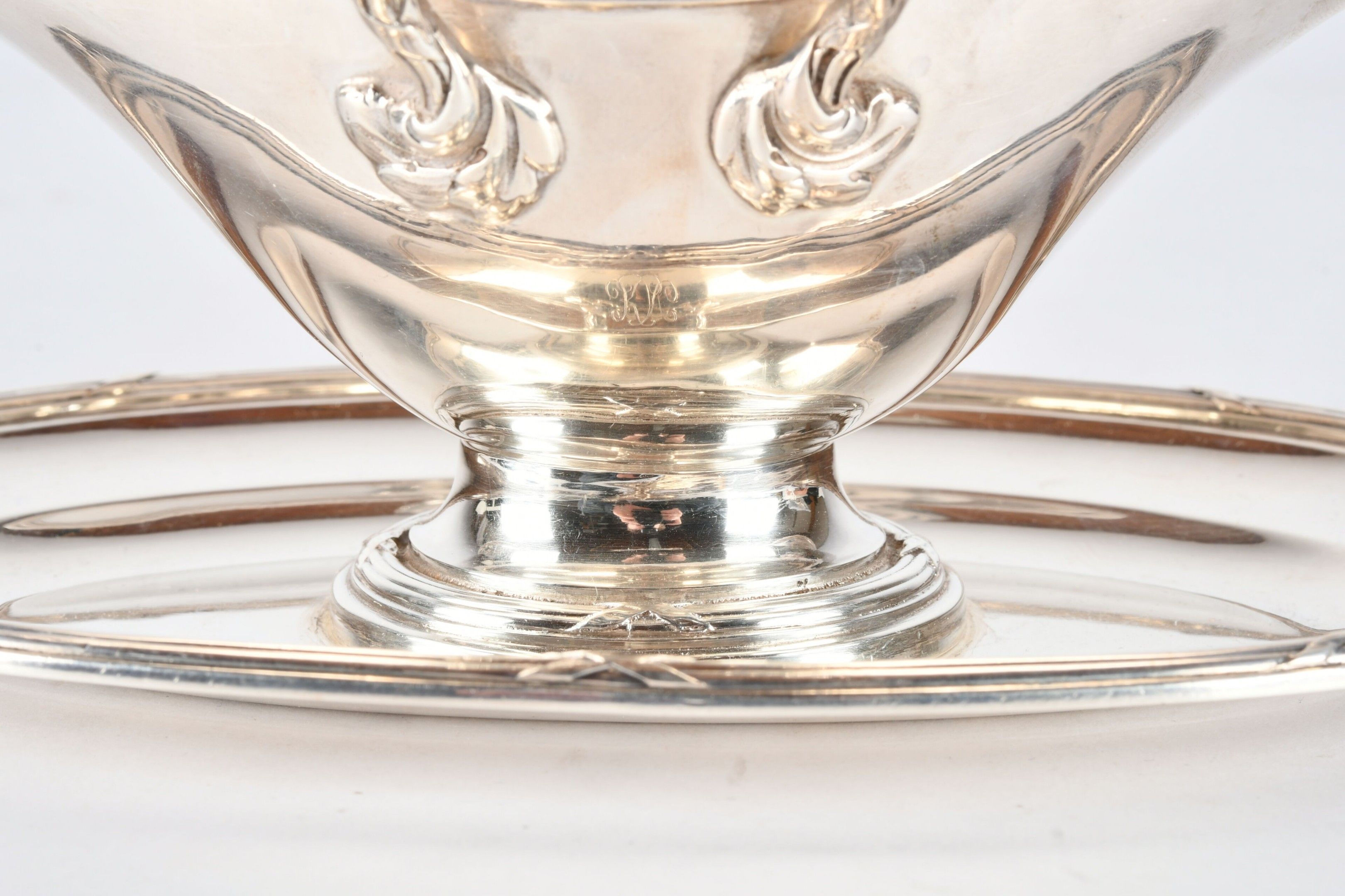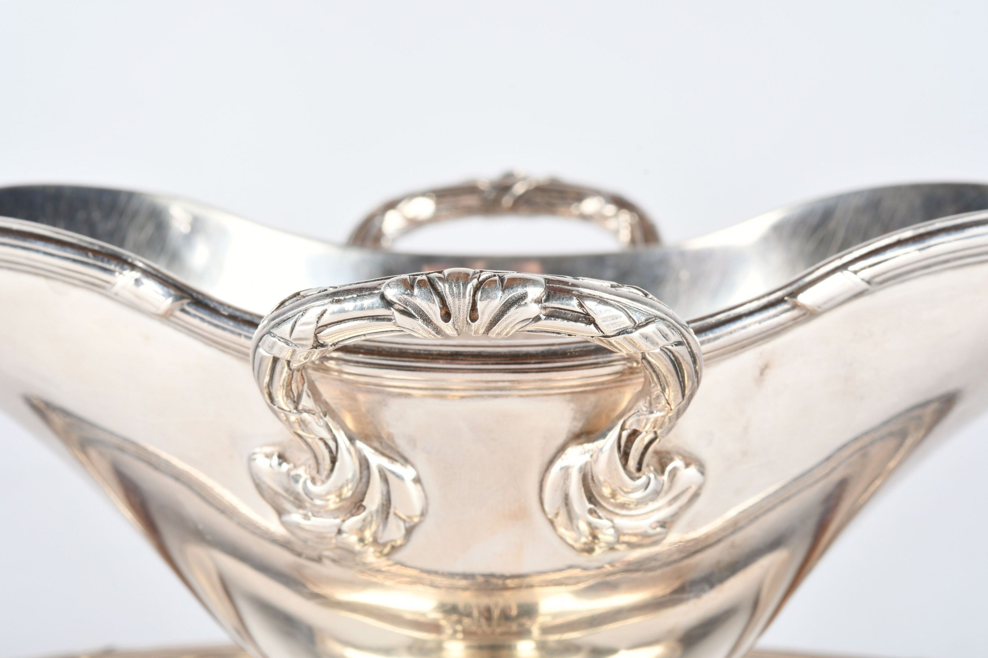 SAUCIERE (small) in silver decorated with filets and knotted ribbons. H. 8 - L. 19 cm - Weight : 465 g