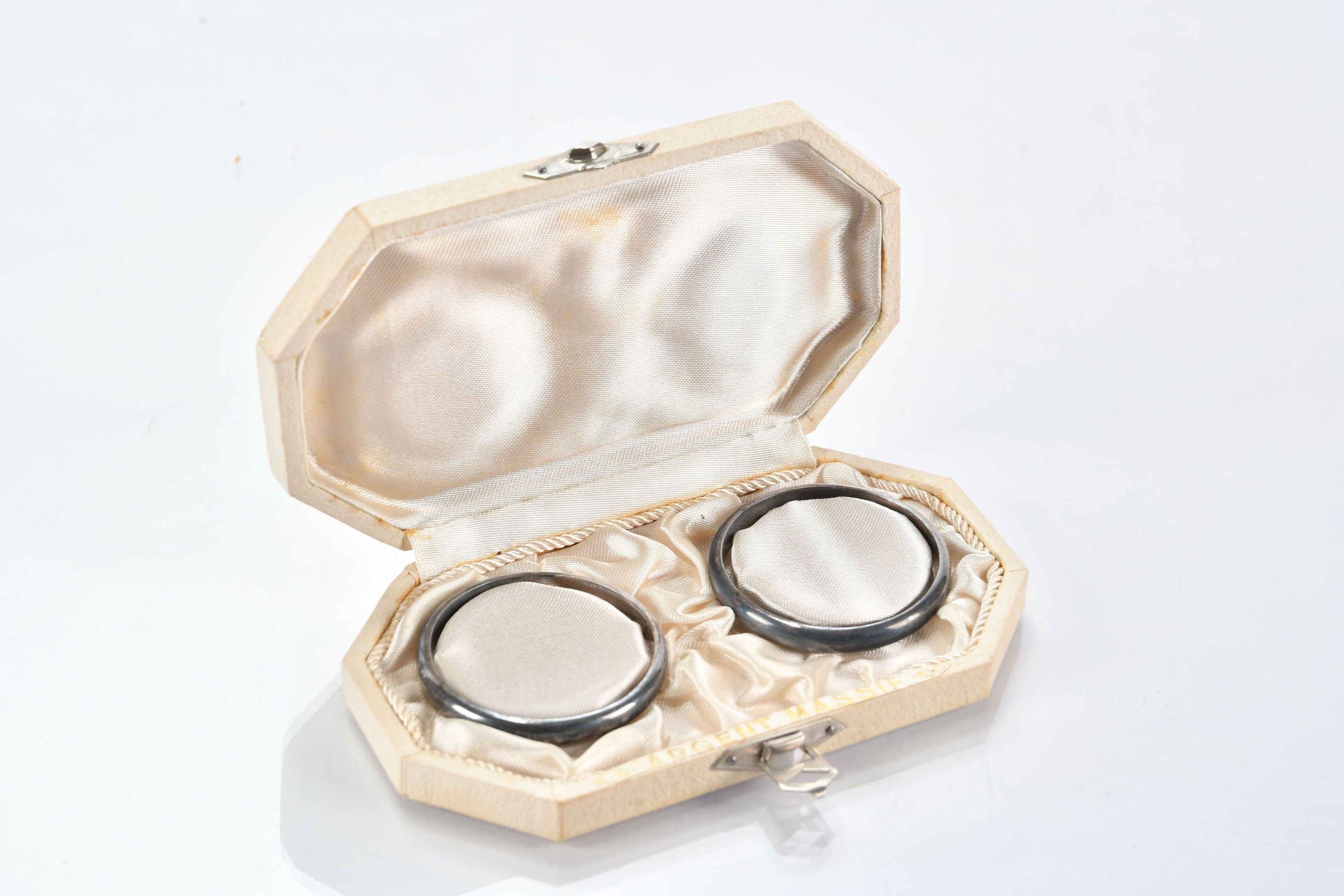 Pair of silver TOWEL BANDS in their original box. Weight : 44 g