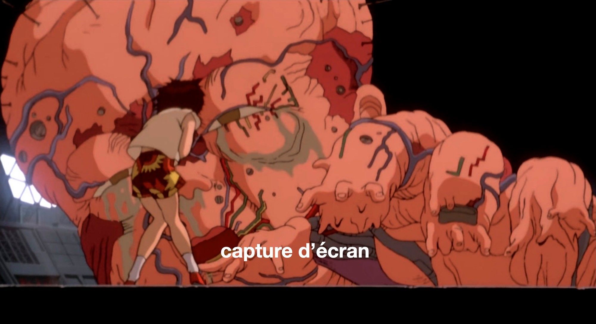 Exceptional and very rare original book cellulo in ink and multi-layered gouache on an original gouache-matched background (part of the background is missing) with foreground depicting Tetsuo mutating in front of the innocent, dumbfounded Kaori. A real museum piece for this anthology scene (1 h 47 min 2 s). Produced by TMS in 1988.