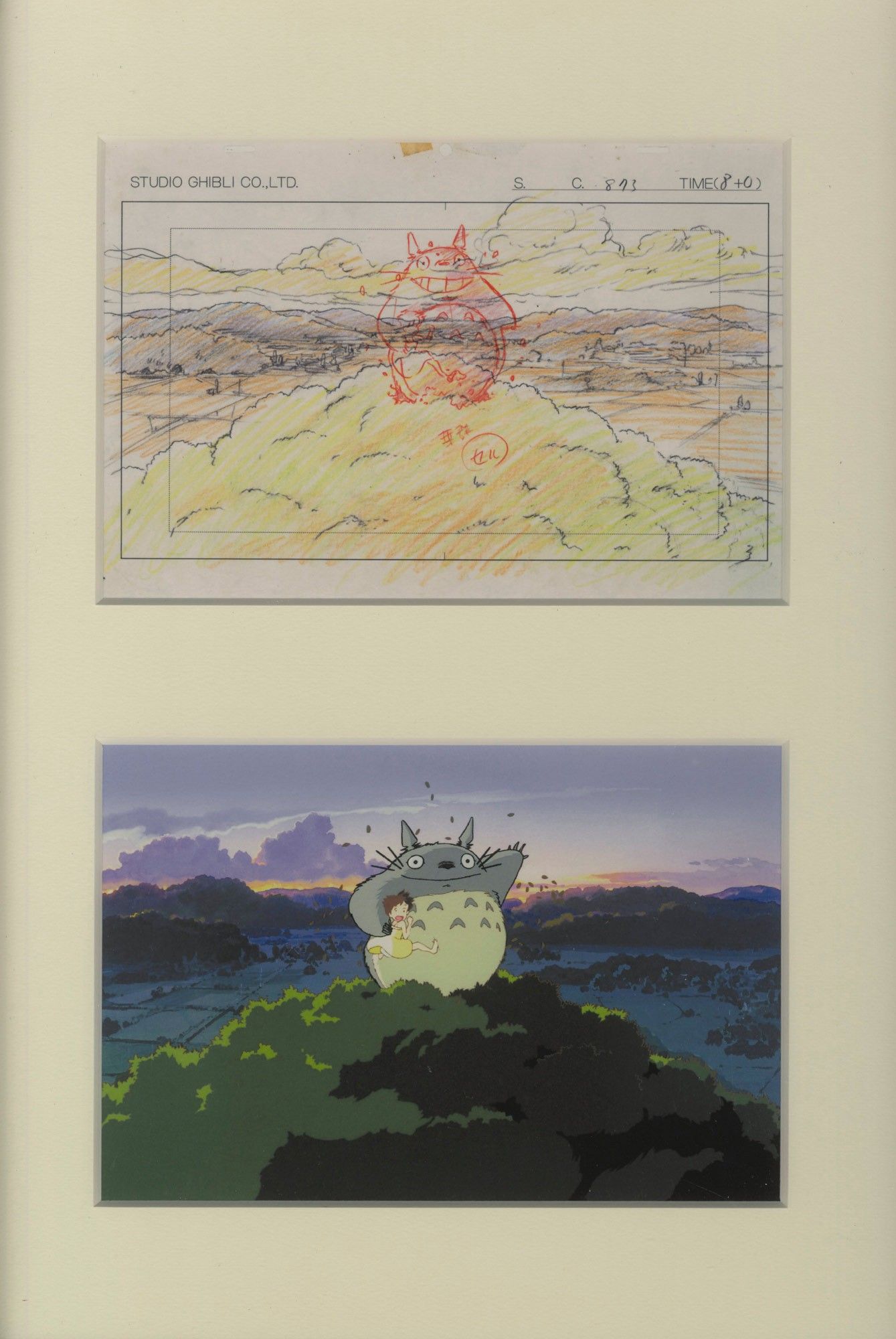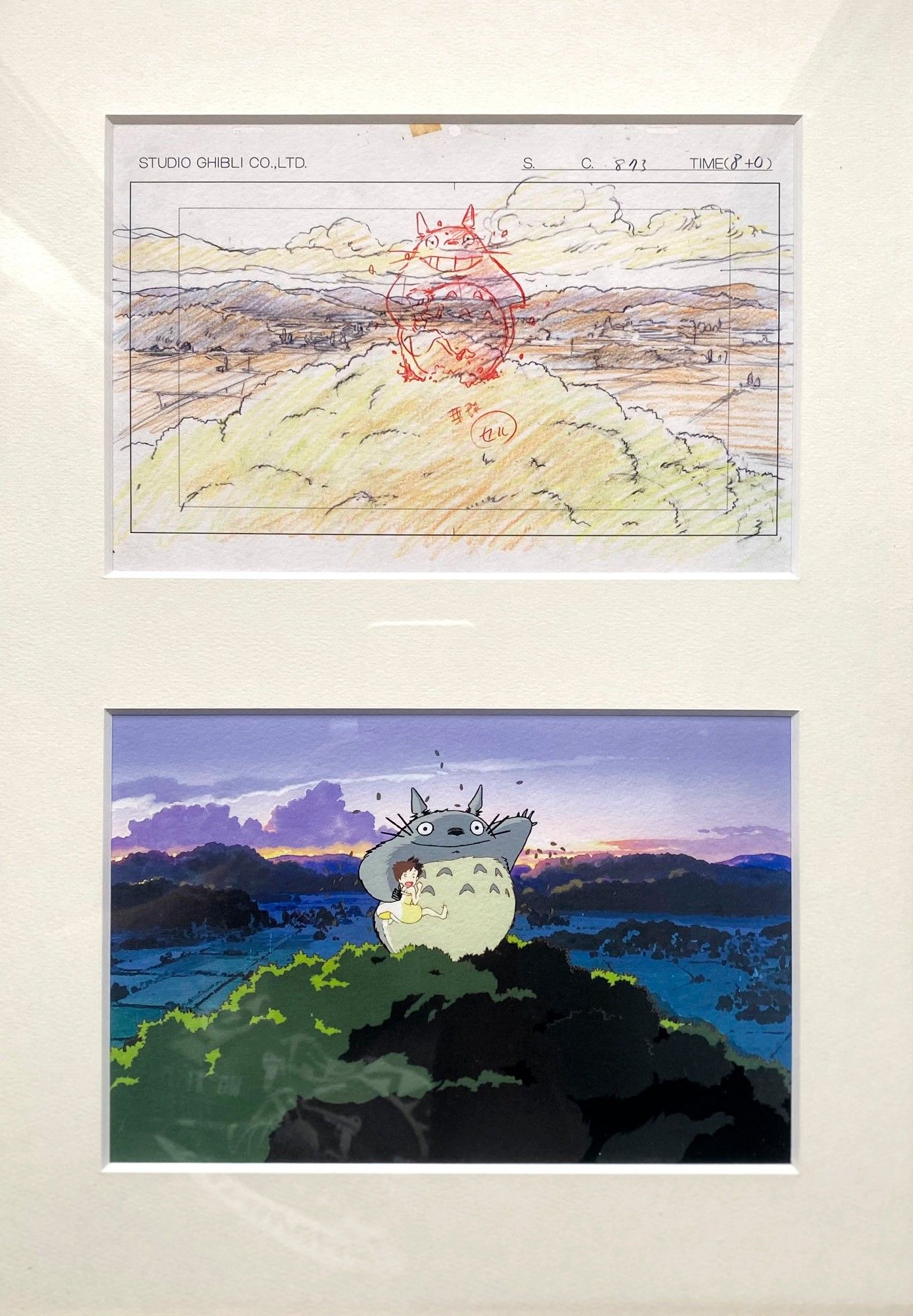 Superb and rare official Studio Ghibli double screen print consisting of a Layout and its final on-screen result. Sold at the Studio Ghibli Layout exhibition in 2009 at the Suntory Art Museum in Tokyo. Highly sought-after.
