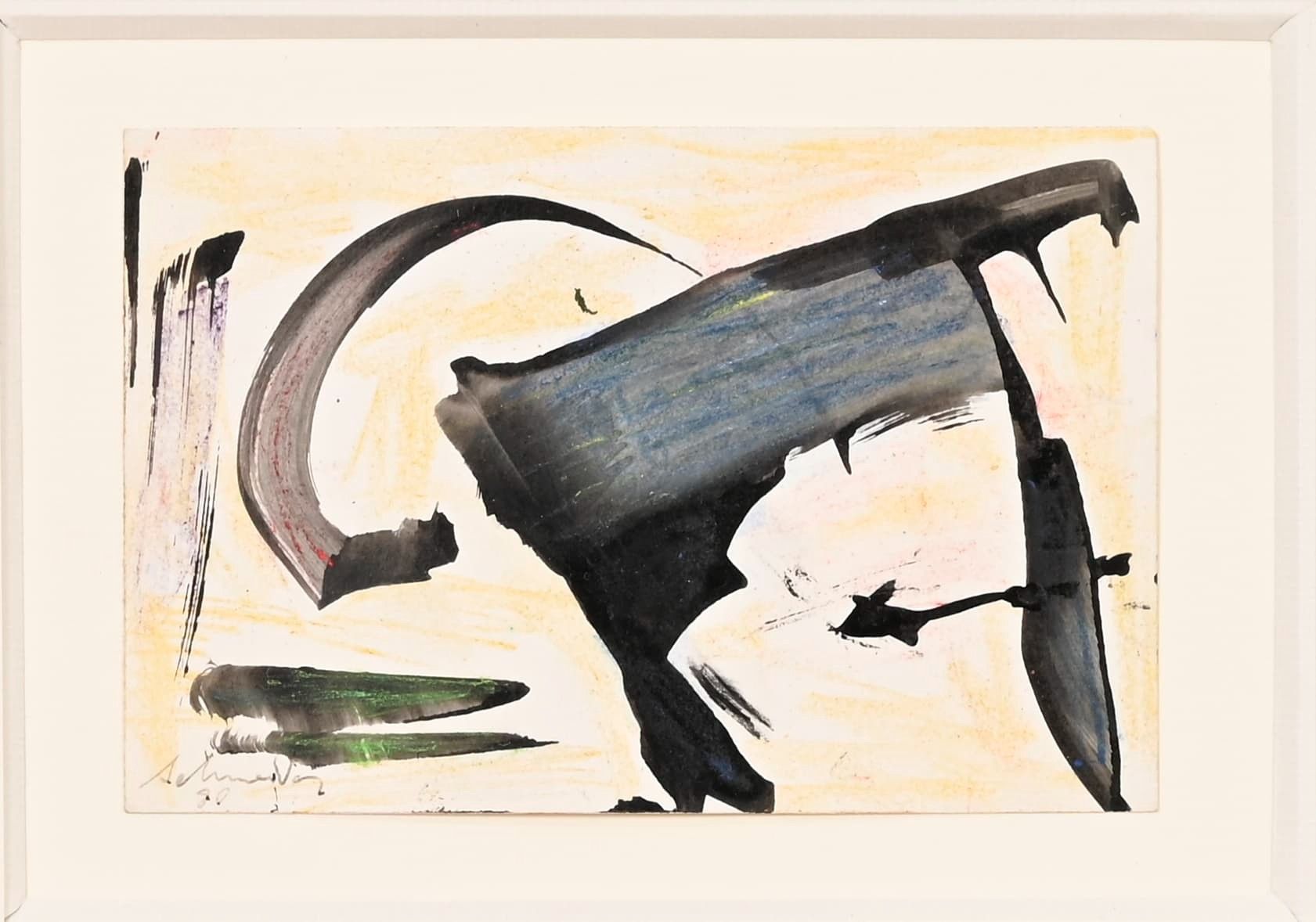 Gérard Schneider (1895-1986) Composition 1980 Indian ink and coloured pencil on paper signed and dated lower left 10 x 15 cm Provenance: > Espace Brimaud, Paris (label on back)