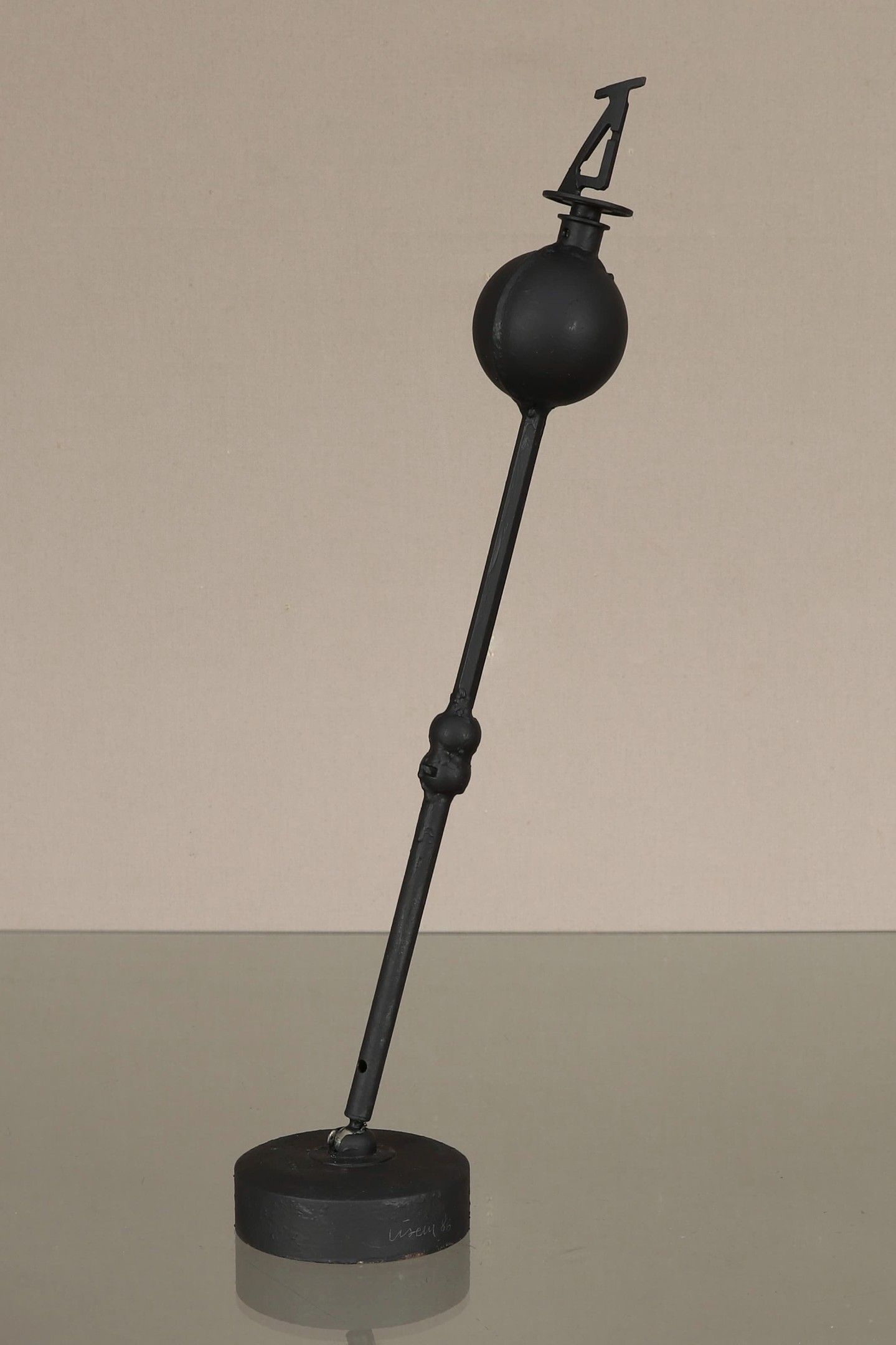 Claude Viseux (1927-2008) Flèche mobile 1986 Steel sculpture painted black, signed and dated on the base H. 57 cm L. 12 cm Claude Viseux was born and grew up in Champagne-sur-Oise, near Paris. In 1946, he studied architecture at the École des Beaux-Arts in Paris. He then met Jean Prouvé and Constantin Brancusi, and finally decided to turn to painting.