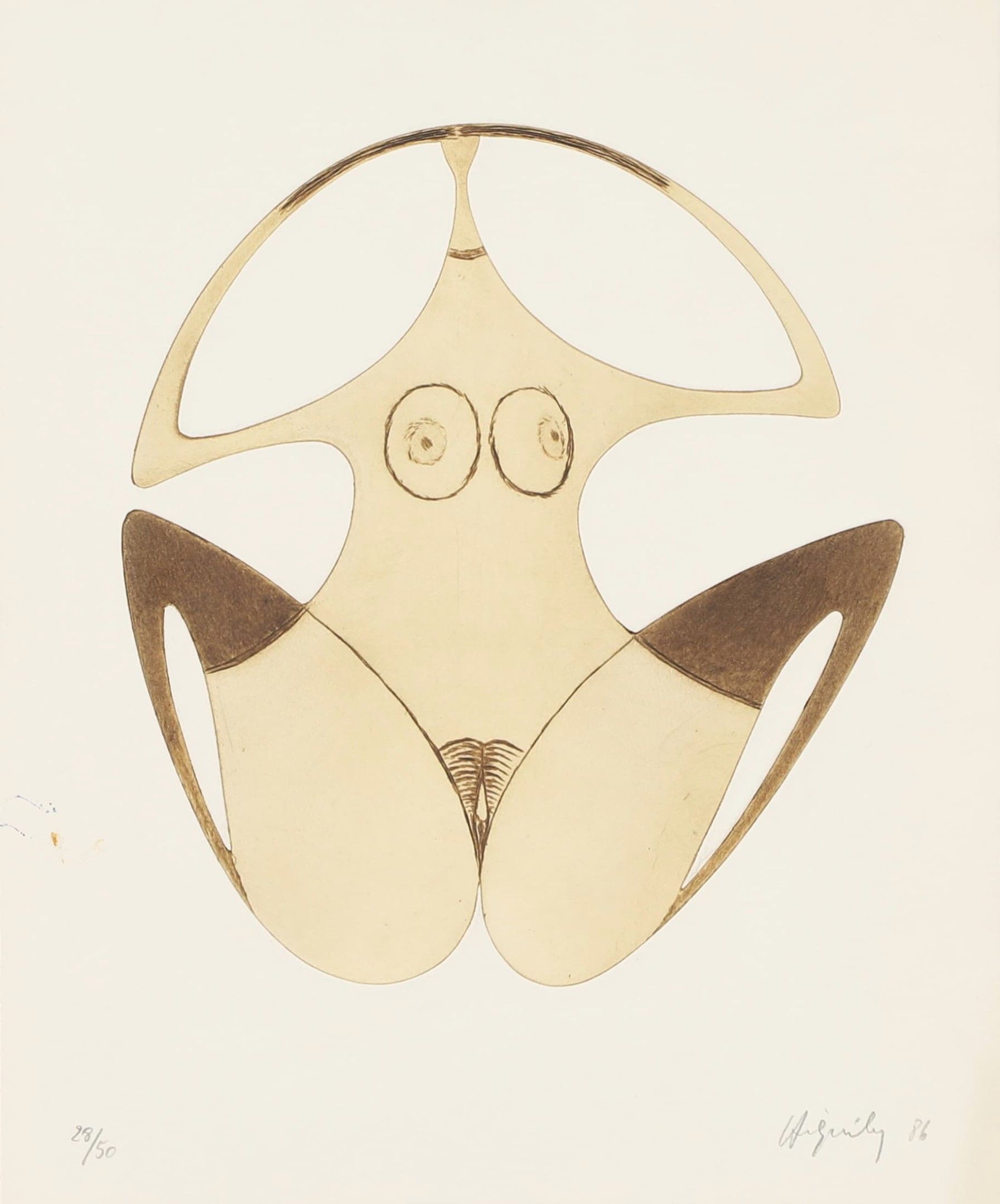 Philippe Hiquily (1925-2013) L'Origine du monde 1986 Watercolour on paper signed and dated lower right, numbered 28/50 lower left 40 x 32.5 cm Condition report: Stains left centre