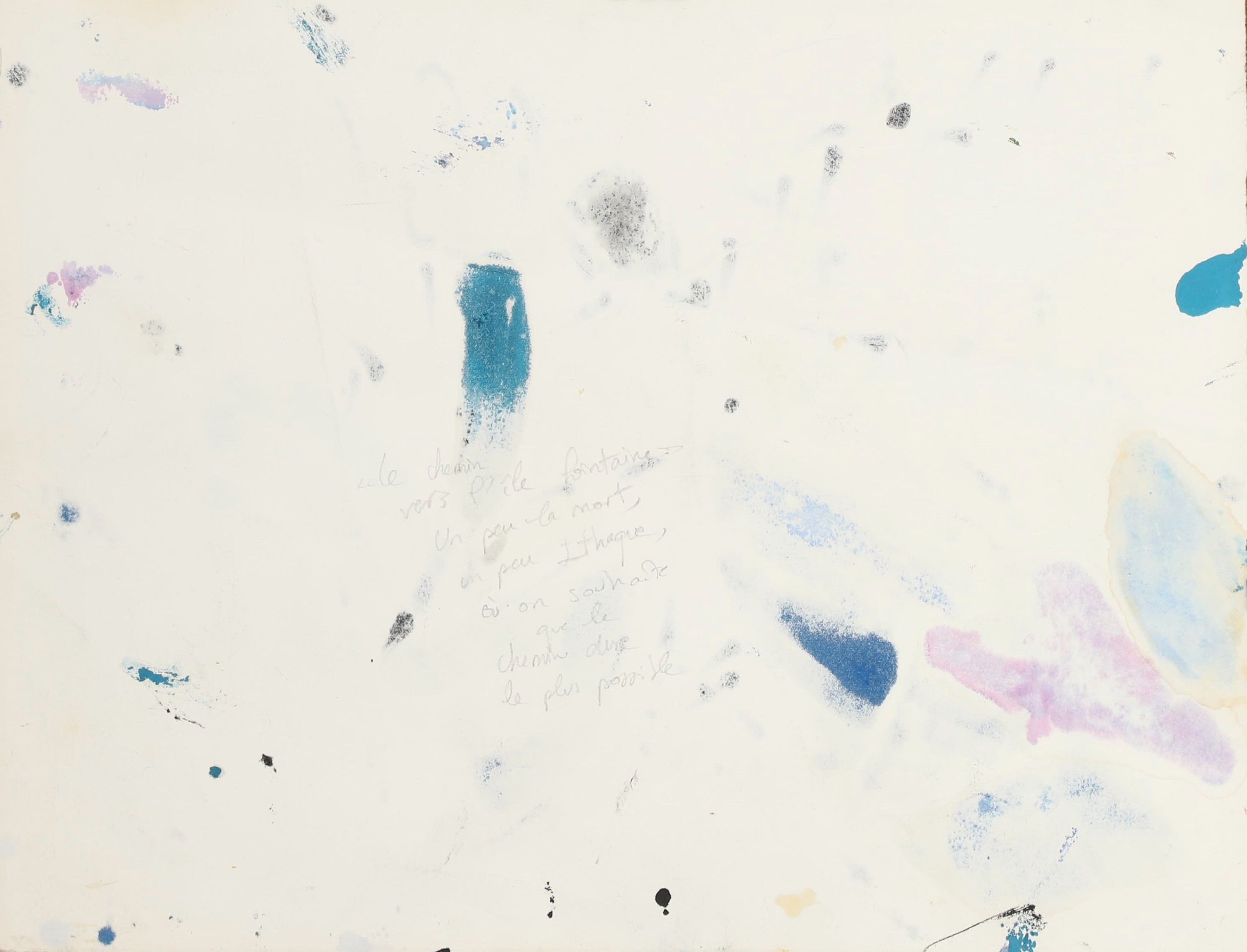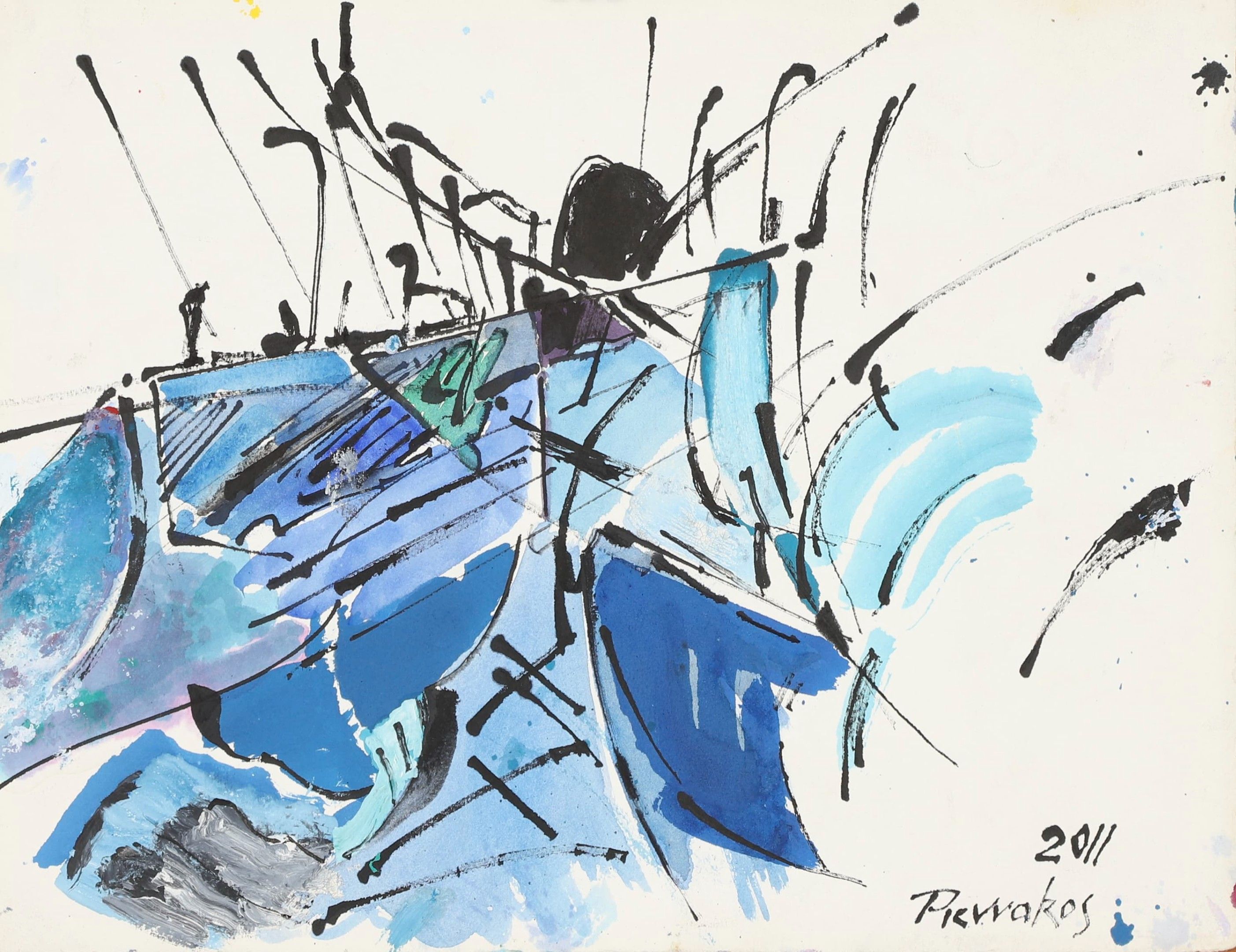 Alkis Pierrakos (1920-2017) Le Chemin vers l'île lointaine 2011 Indian ink and gouache on paper signed and dated lower right, titled and annotated "Un peu la mort, Un peu Ithaque, où l'on souhaite que le chemin dure le plus possible" on the back 32.5 x 42 cm Condition report: Framed, broken glass