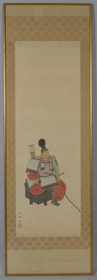 JAPAN Portrait of a samurai Painting on silk bearing a stamp…