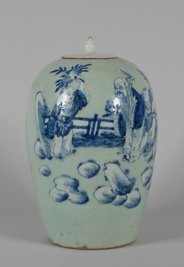 CHINA Celadon porcelain ginger pot decorated with white and …