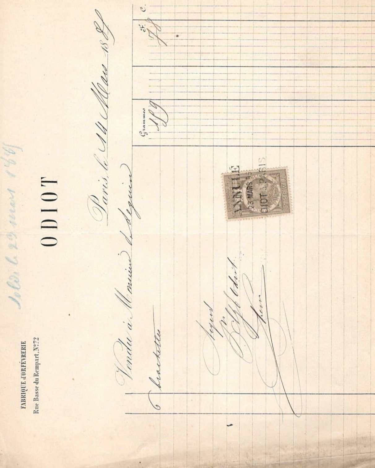 Attached are a pair of silver metal hâtelets with deer head and openwork palmettes decoration, by the workshop of Armand Thouret, Paris, circa 1860 and an Odiot invoice dated 14 March 1887.