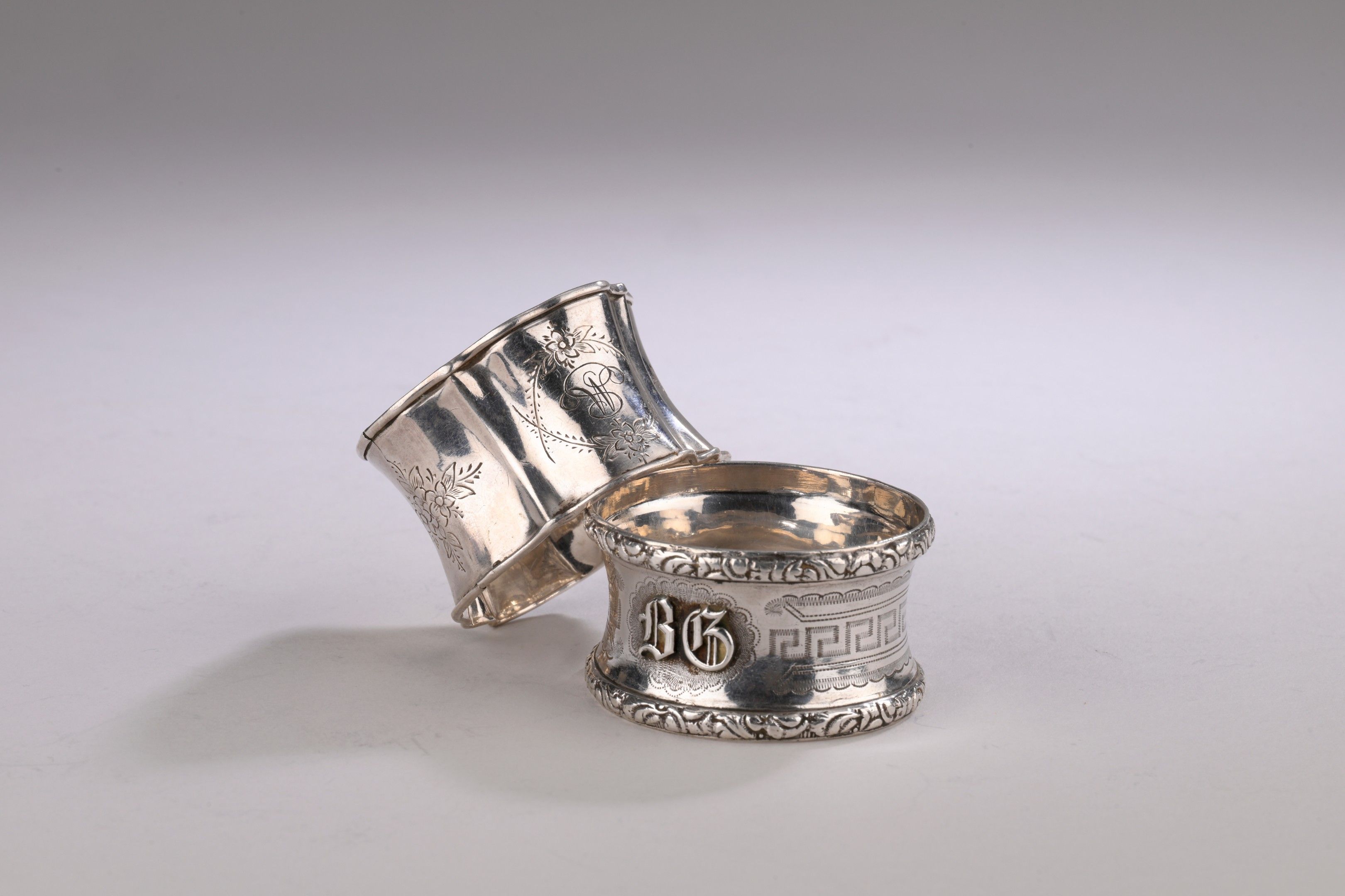 - Silver napkin ring 1st title 950‰, curved with Greek and rocaille frieze decoration. Cyphered. By the workshop of Philippe Berthier. Paris, circa 1850.