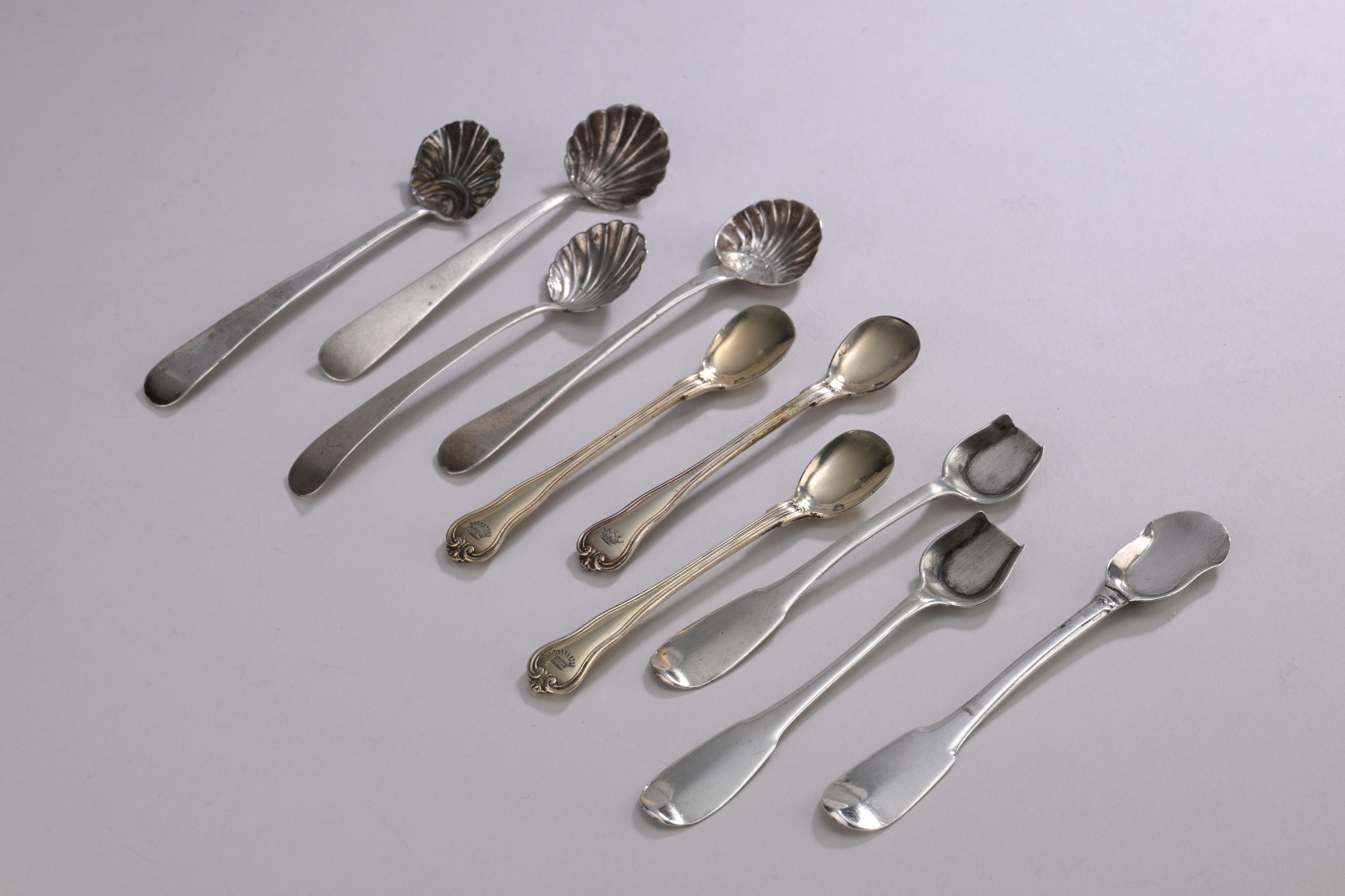 Lot including : - Four silver salt scoops 1st title, plain m…