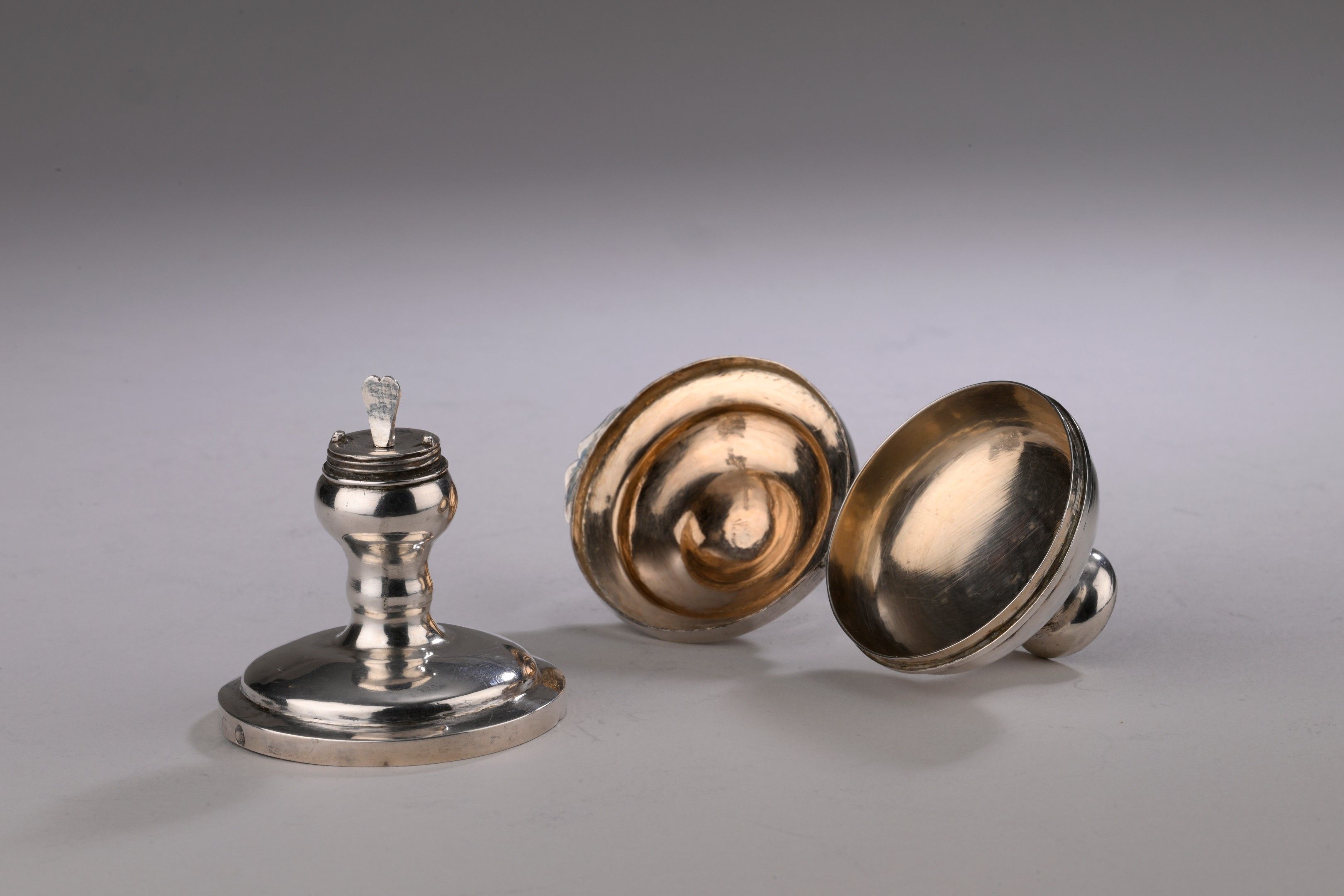 Ciborium-chrismatory in silver 1st title 950‰, plain. Fitted…