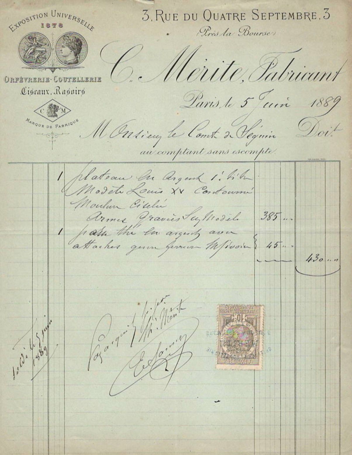 Marked in the workshop of Charles Mérite. Parisian work, circa 1889. Signed.