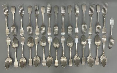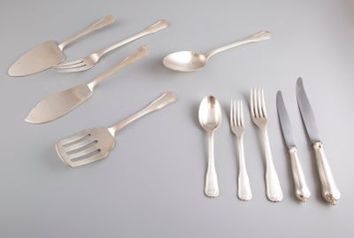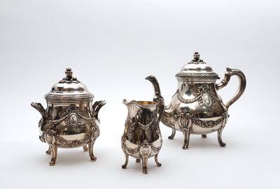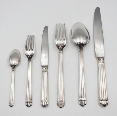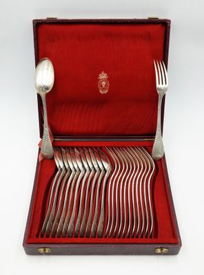 Sterling silver tea sets, full cutlery services, fish knives, Louis XV candlesticks, rococo serving trays, wine buckets, vermeil caskets—these pieces embody elegance and craftsmanship. Highly prized at auction: works by Puiforcat, Christofle, Odiot, Boin-Taburet, Ravinet d’Enfert, and hallmarked pieces (Minerve, Vieillard). Engraved crests, coats of arms and period decorations add character and value. Expert descriptions and secure online bidding provided.