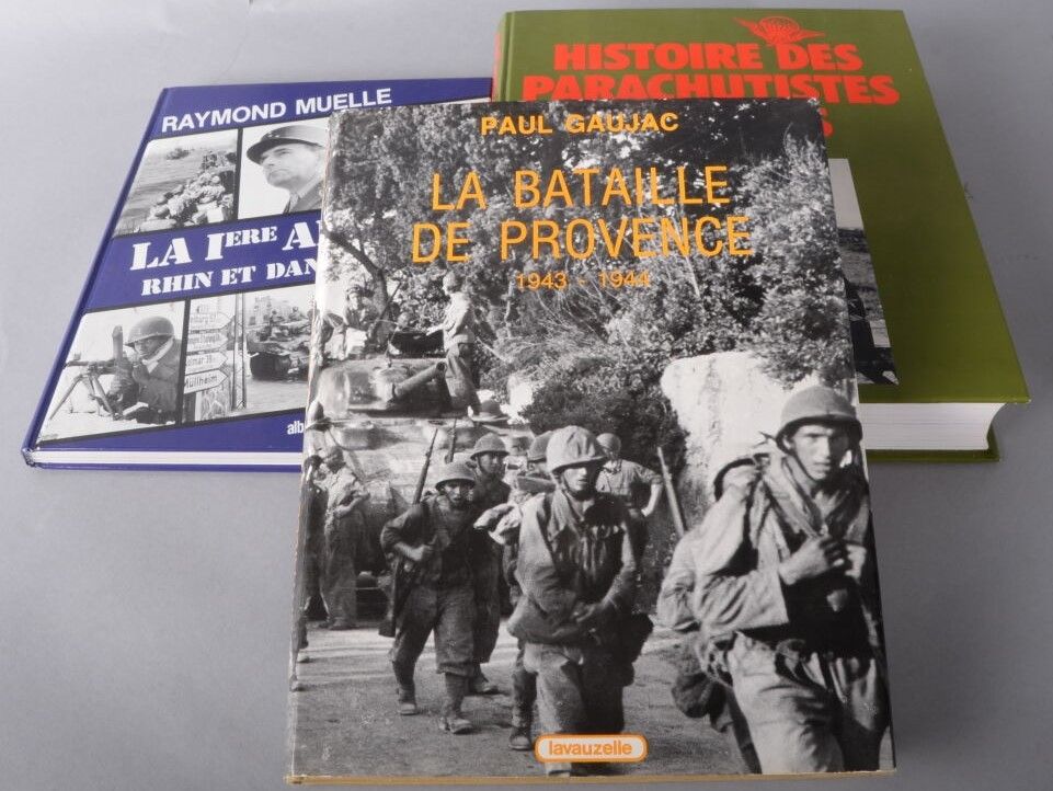 Set of 3 books including "histoire des PARAHUTISTES Français/la 1er ARMEE Rhin et Danube/La bataille de Provence