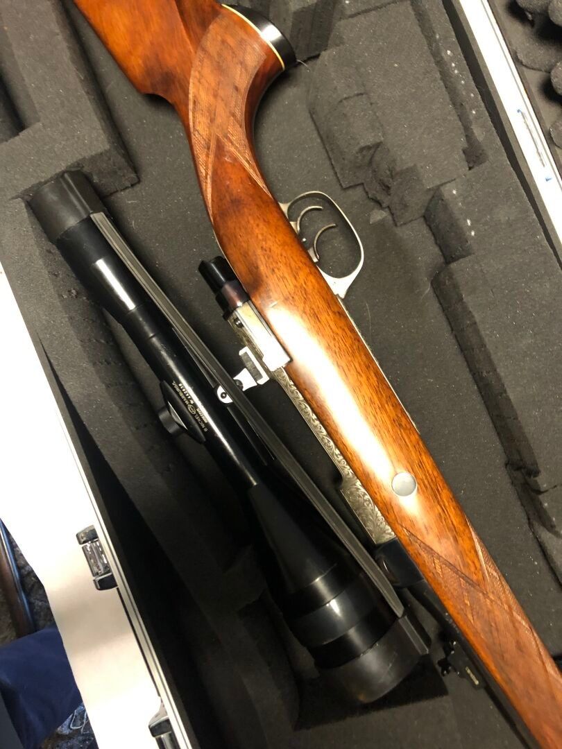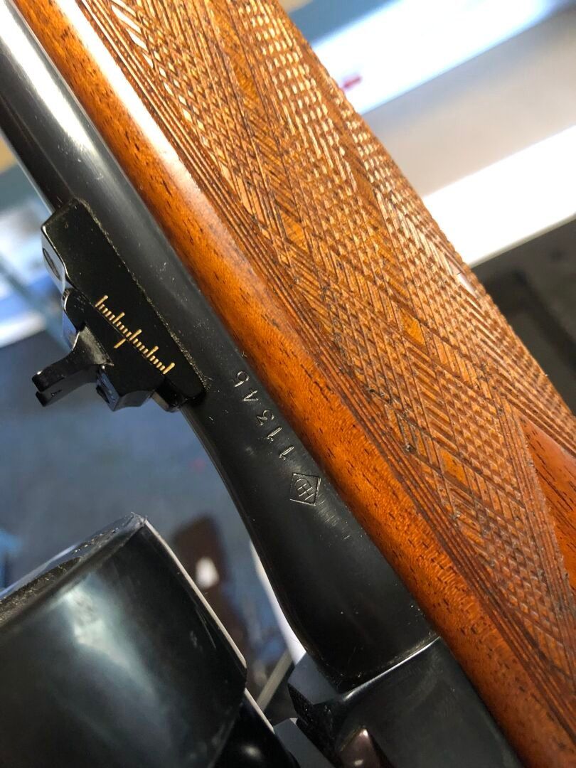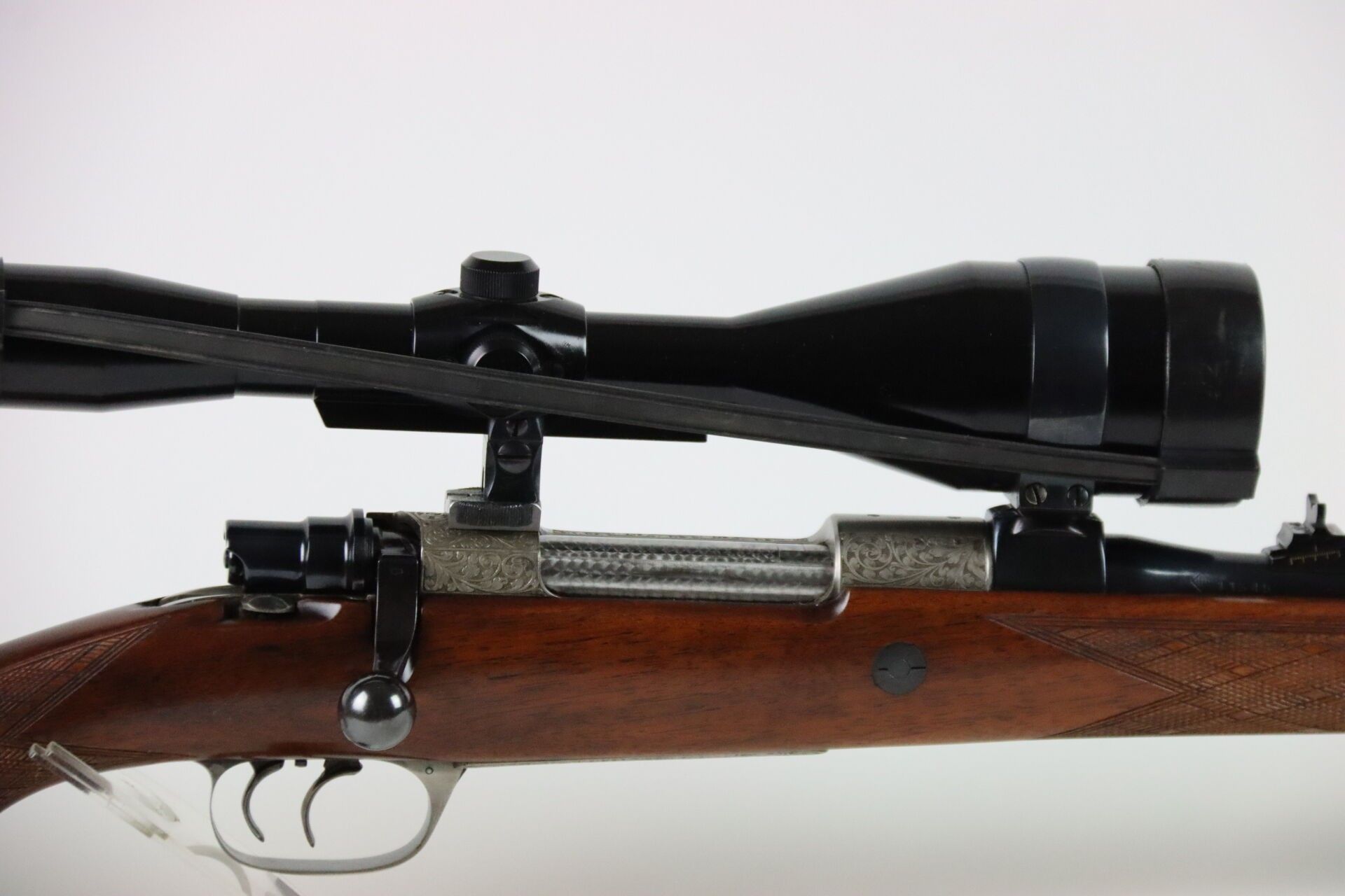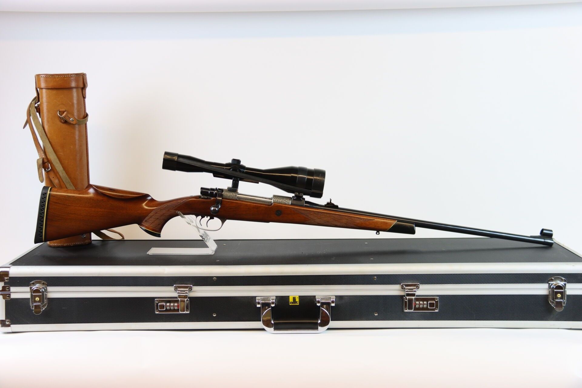 Carabine d'affût made by Henri Dumoulin in Liège on a Mauser 98 type rifle base.