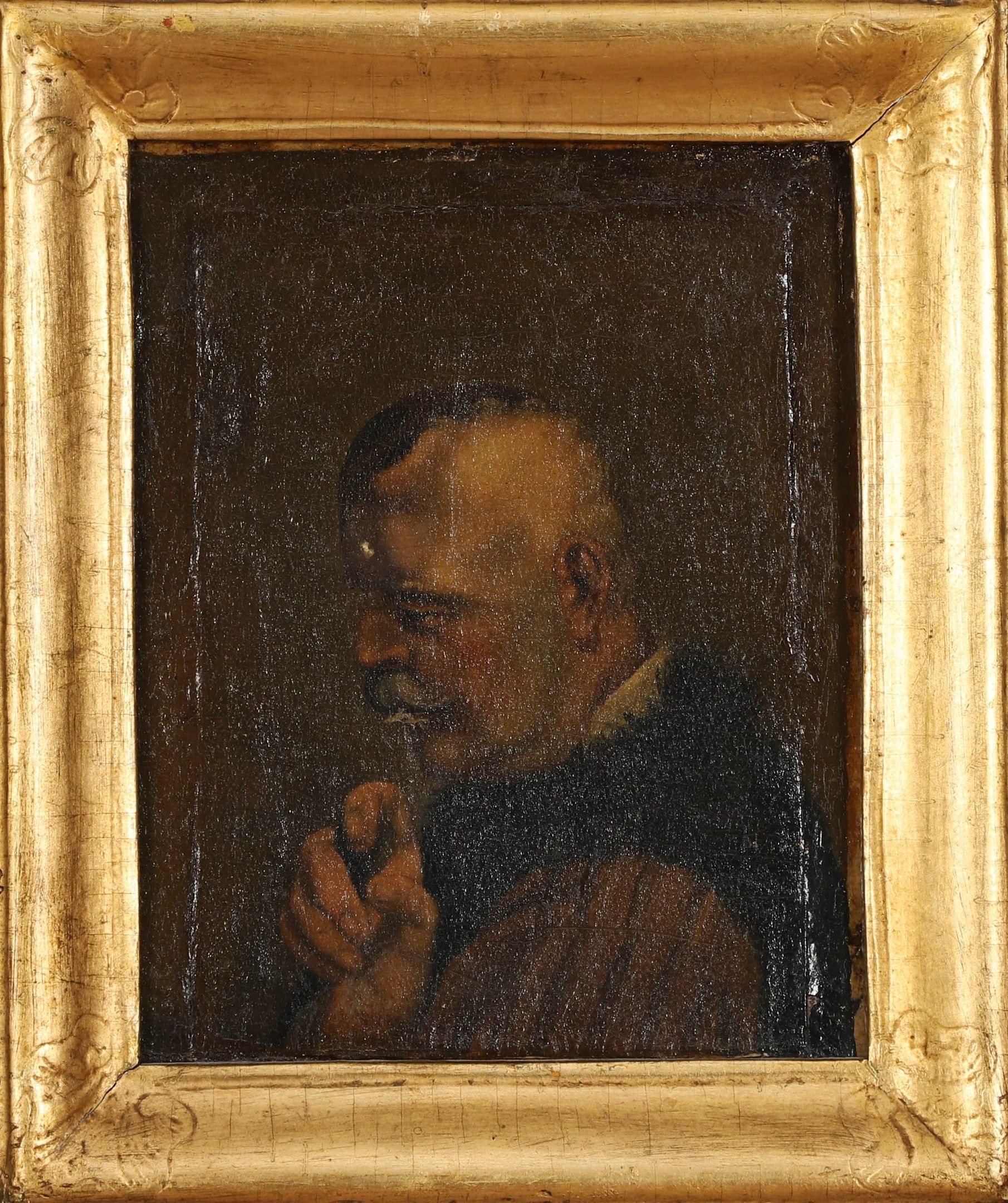 School of the XVIIth century - XVIIIth century Suite of two paintings > Man in profile, oil on board, old labels on the back with annotation "n°18" "Confucius legislator of the Chinese" in ink and pencil "1691 Raphaël".