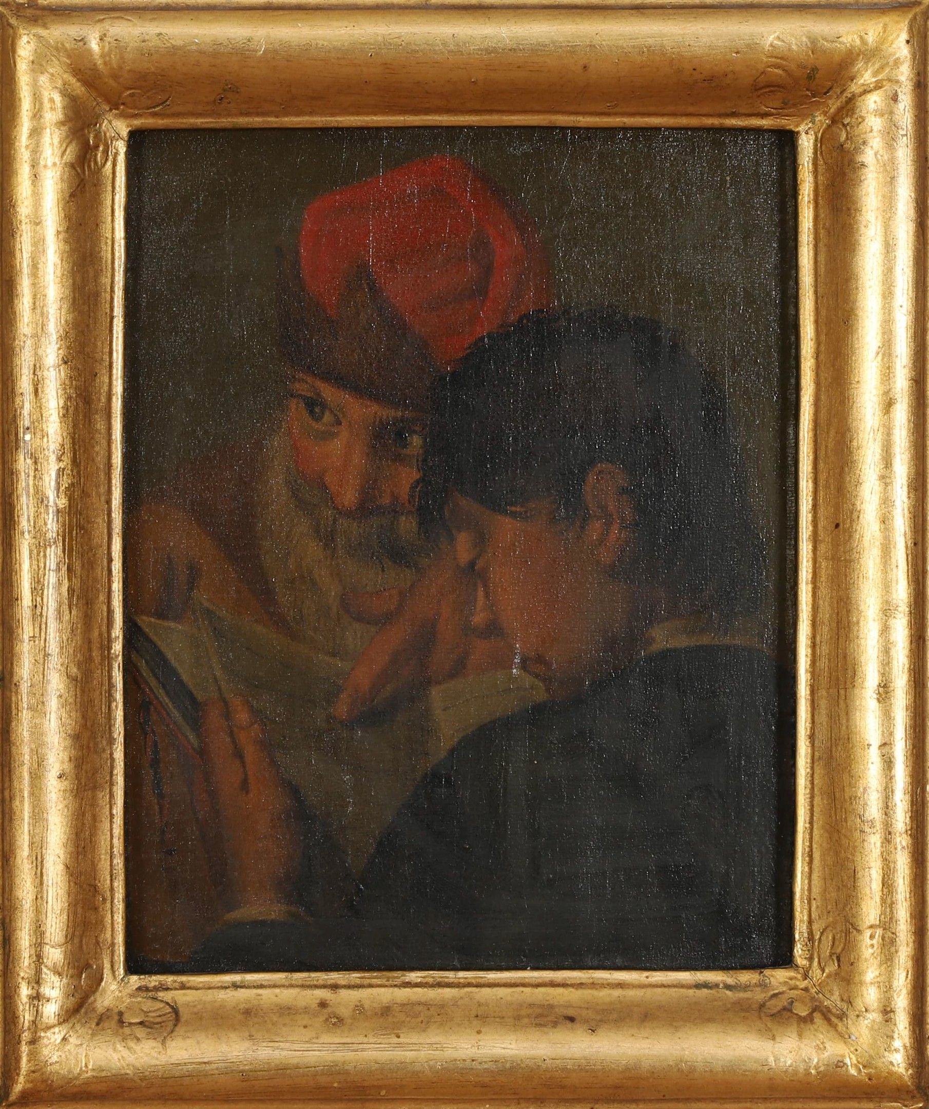 > Master and Pupil", oil on panel, old label on back with annotation "n°17