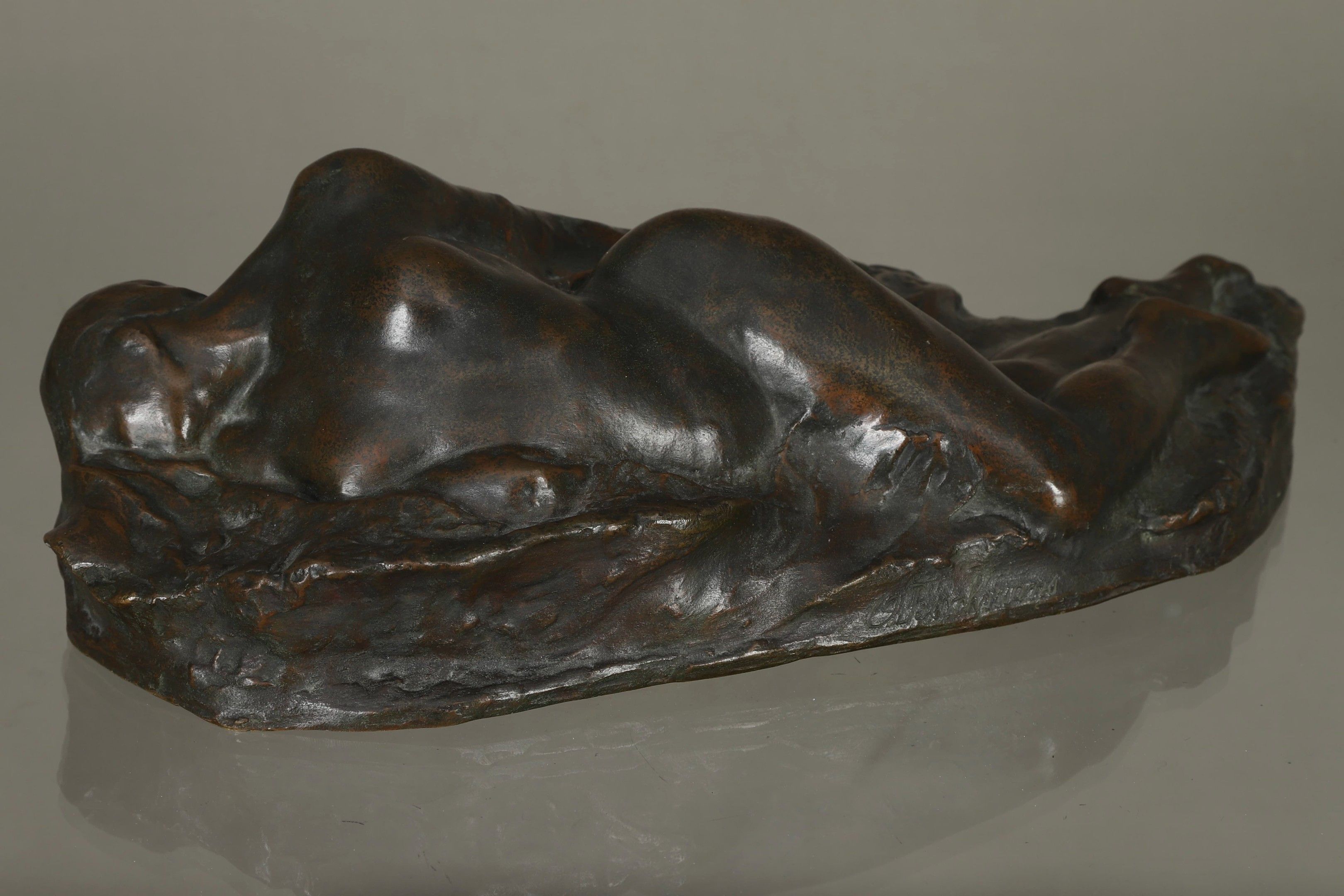 Oscar Berchmans (1869-1950) Extended Naiad Brown patina bronze signed on the front H. 16 cm W. 44 cm D. 20 cm
