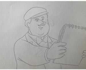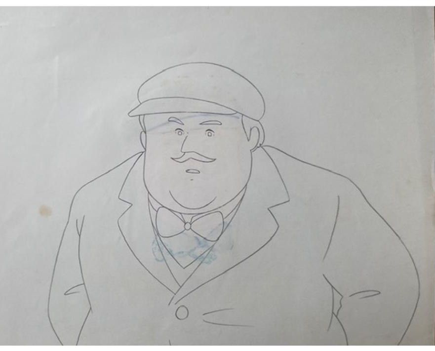 Set of two cellulos executed in ink and gouache attached to their dôgas in ink and coloured pencils