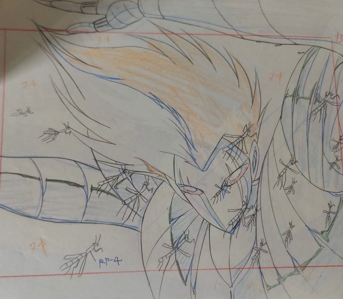 Original cellulo executed in ink and gouache on an original gouache background, accompanied by a layout in graphite and coloured pencils.