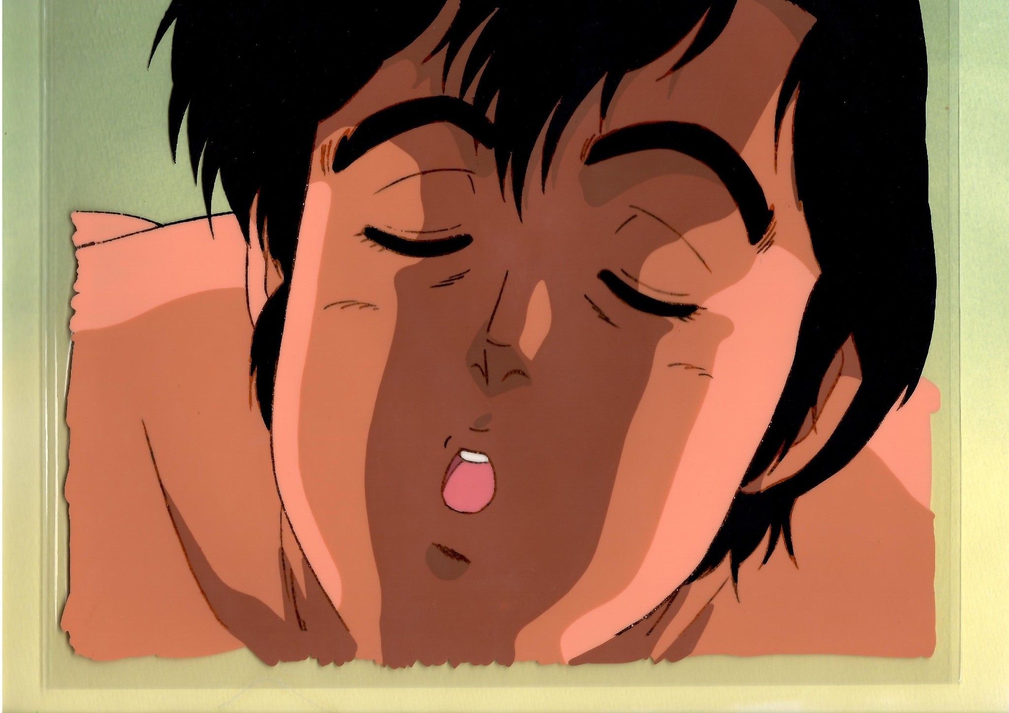 Tsukasa Hojo (北条 司) and Kenji Kodama (こだま 兼嗣) Nicky Larson - City Hunter (シティーハンター) Nicky Larson - Ryô Saeba Original cellulo in ink and gouache on original gouache set Produced by Sunrise in 1987-1991. H23 W26.5 cm cellulo, H25.5 W36 cm decor