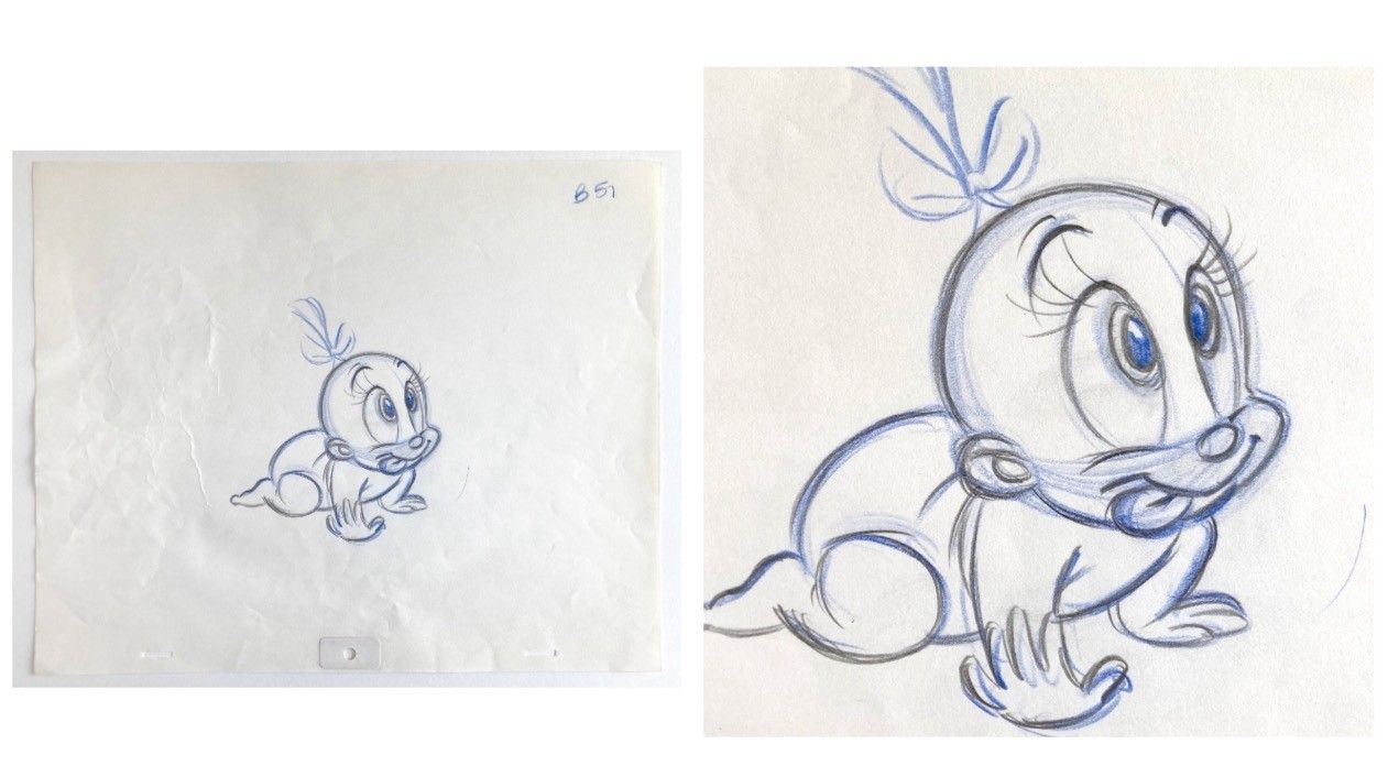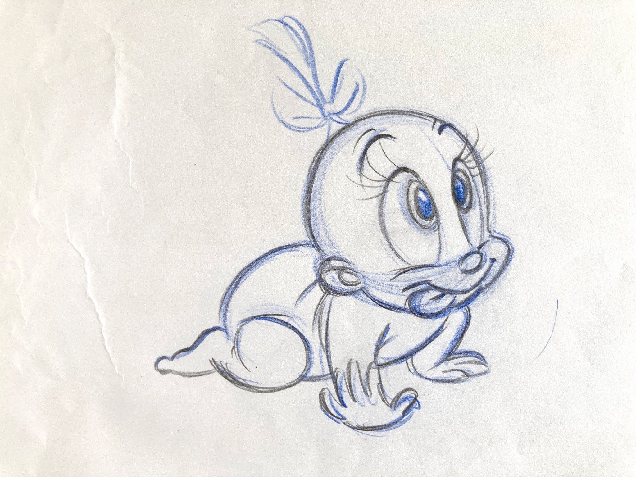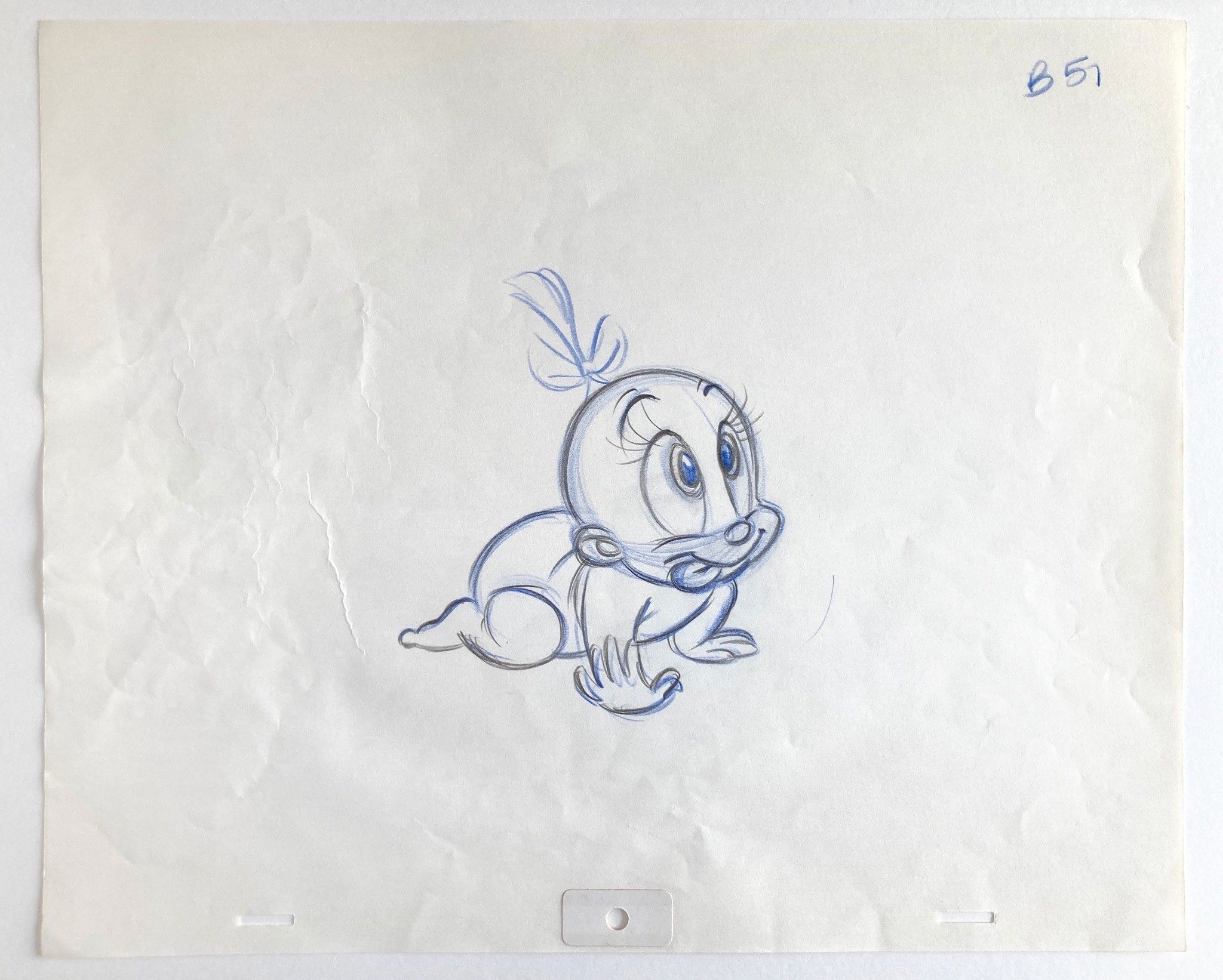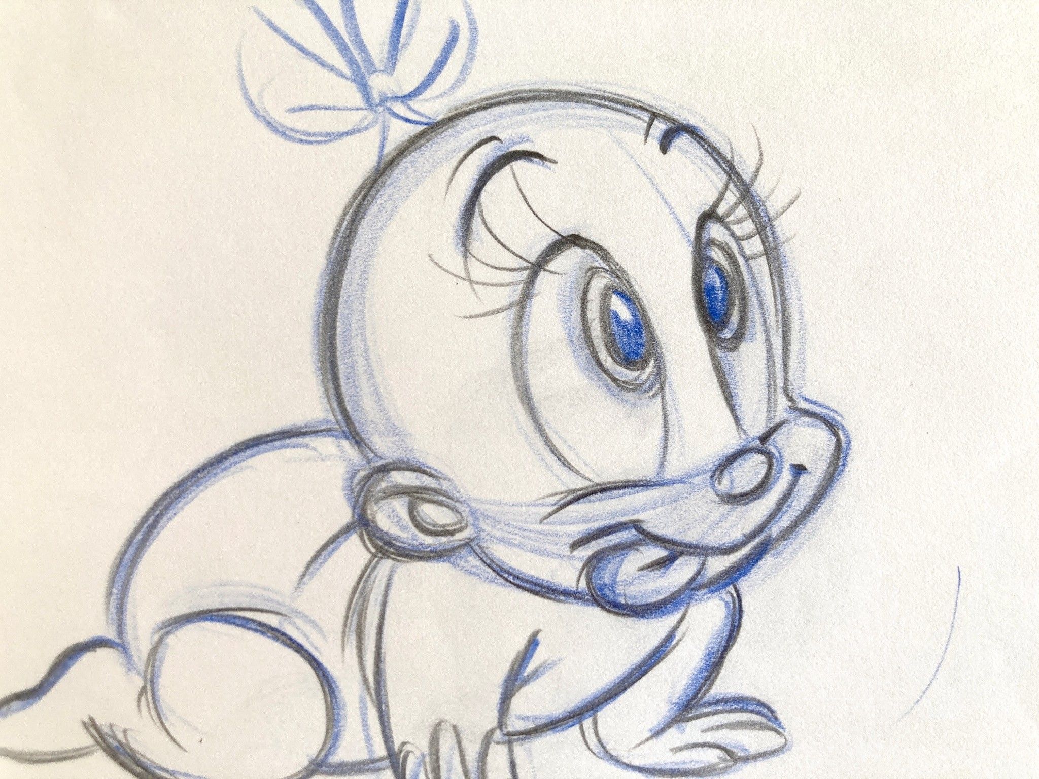 Original animation drawing executed in graphite pencil and coloured pencils on animation paper