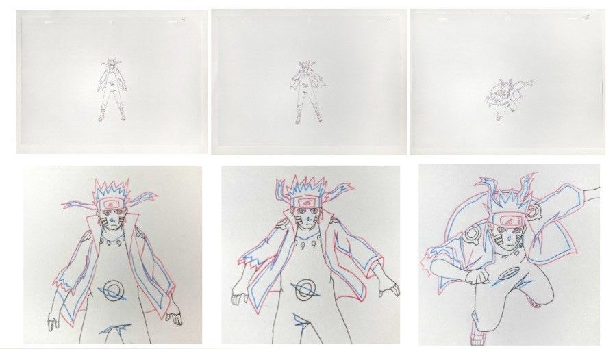 Set of thirteen original dôgas executed in graphite pencil and coloured pencils on standard 12 fields animation paper