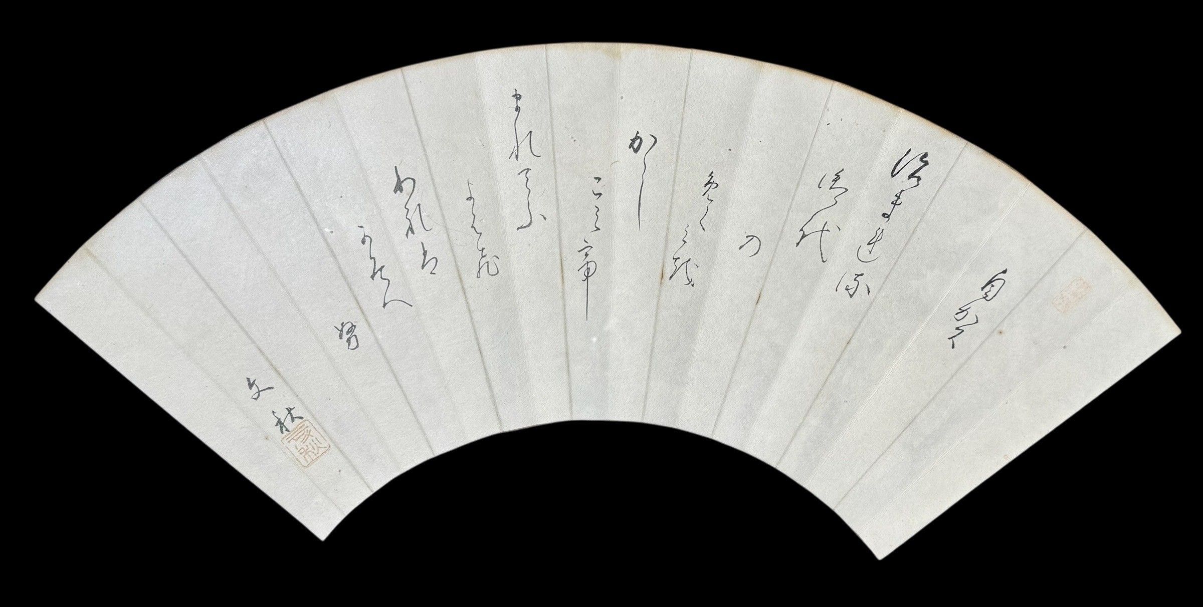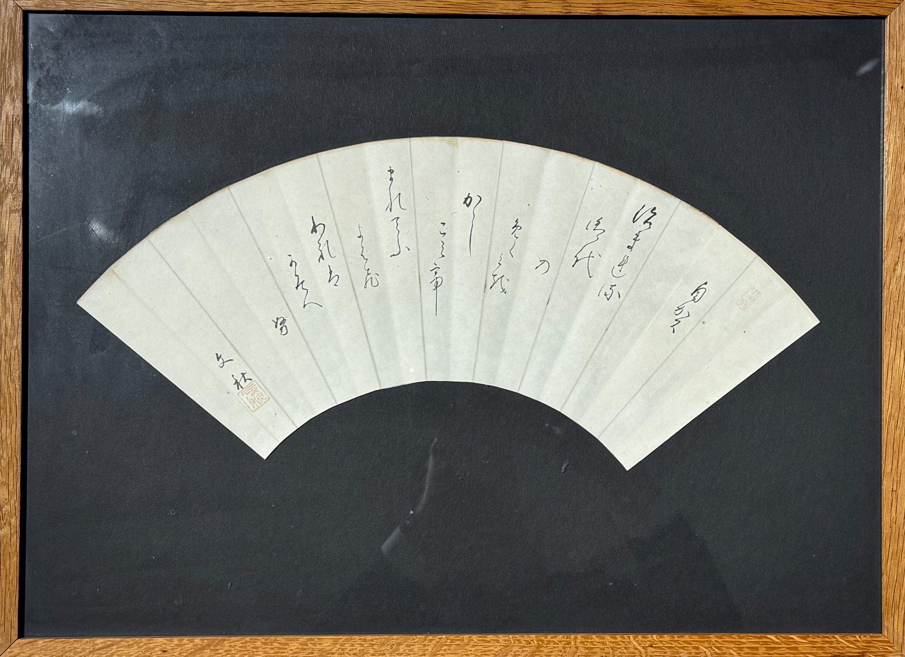 2/Fan design decorated with ideograms in Indian ink.