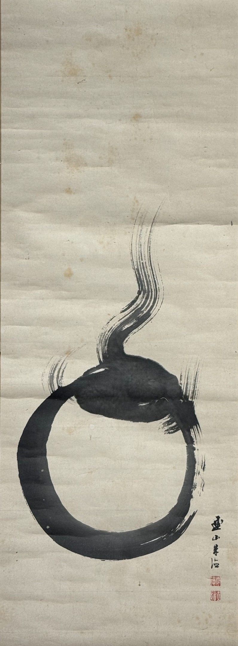 Kakemono of an ideogram in Indian ink and wash on paper mounted on a silk scroll, signed.