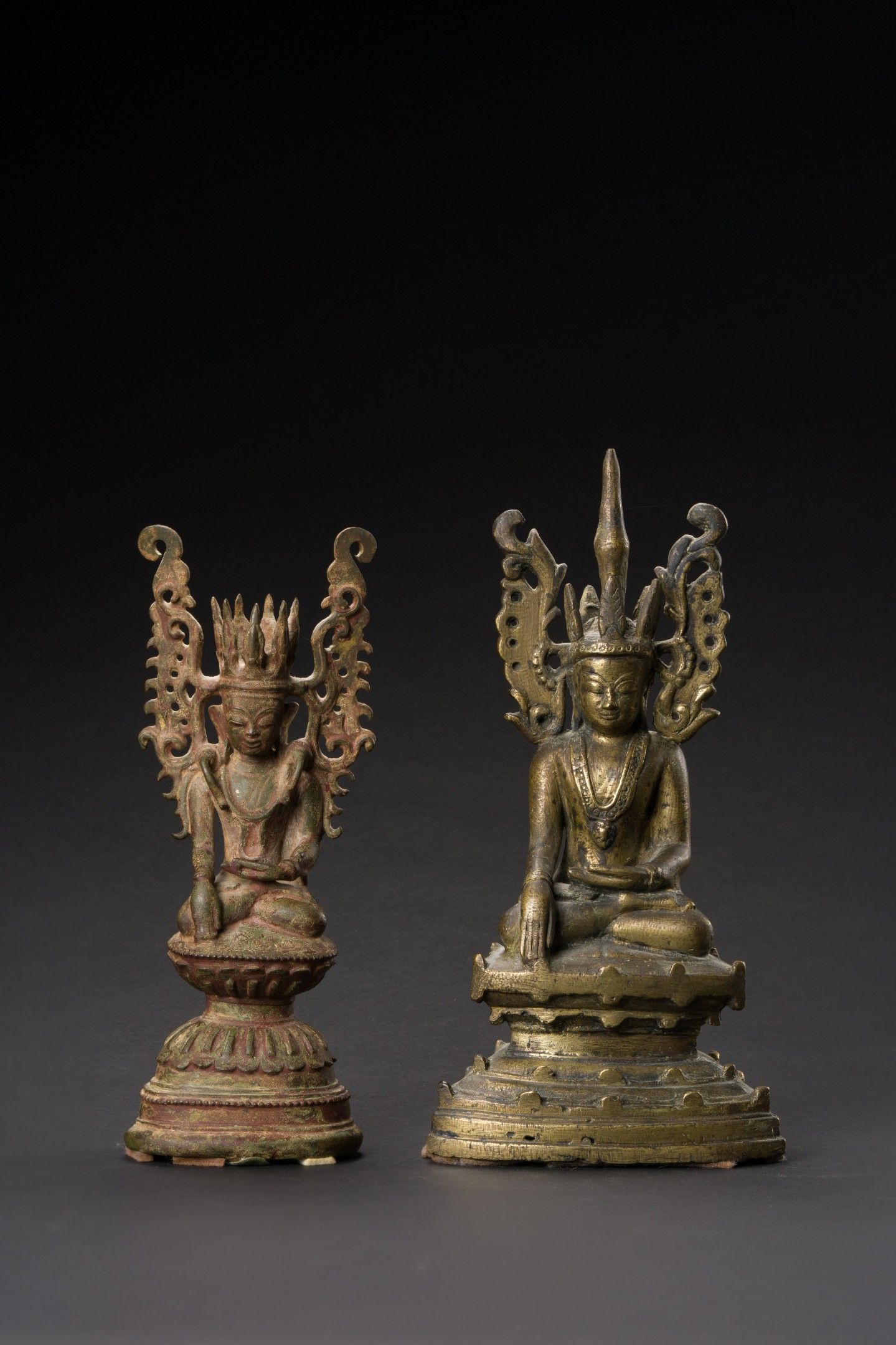 Reunion of two bronze statuettes depicting Crowned Buddha in…