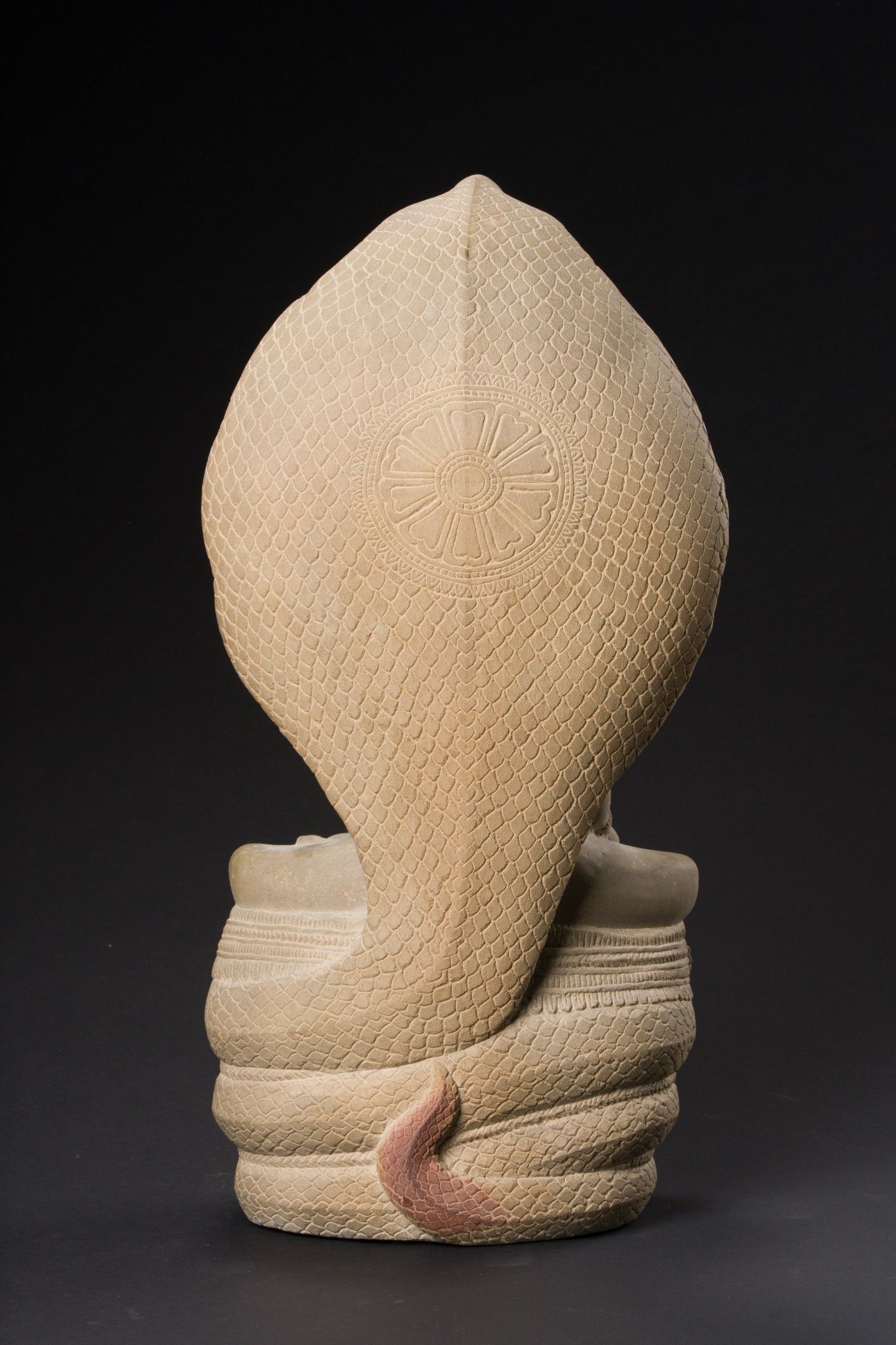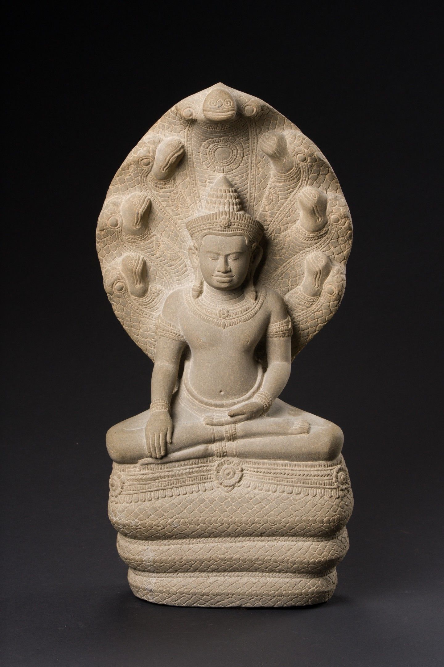 Important carved stone subject depicting Buddha protected by the nāga Mucilinda.