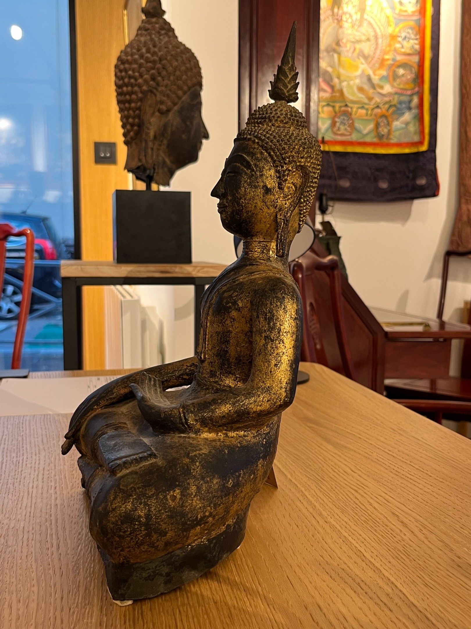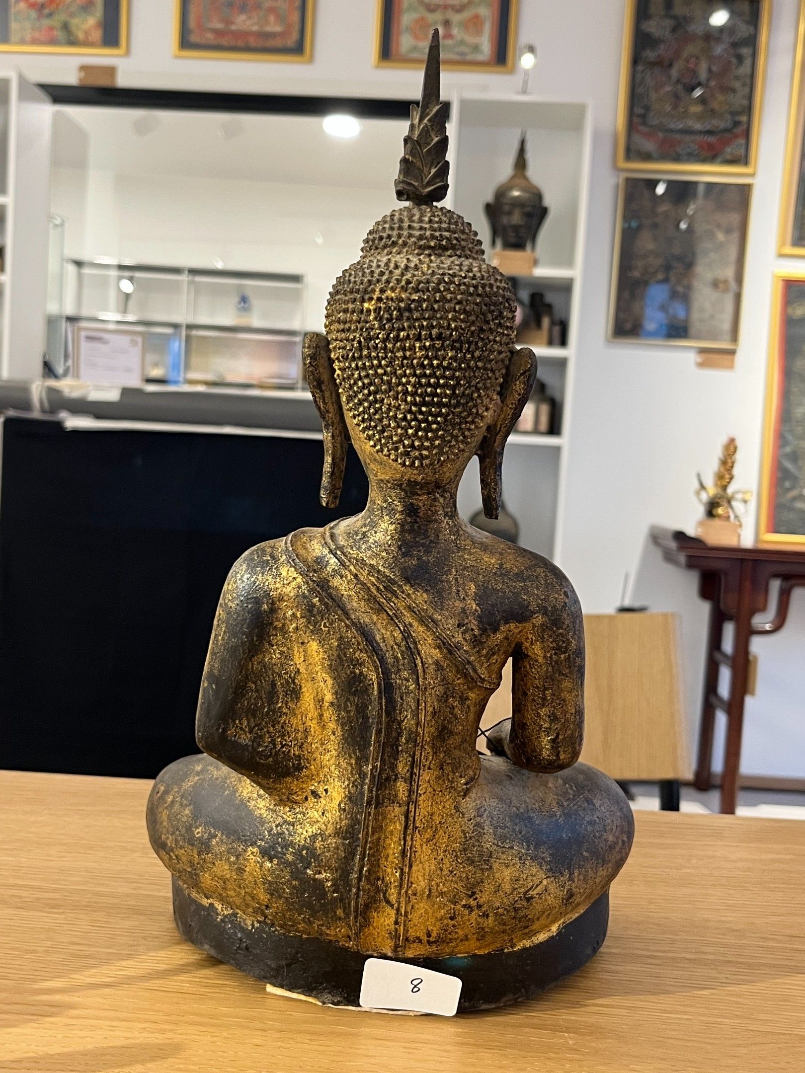 Seated bronze Buddha, hands in bhumisparsa mudra, wearing a …