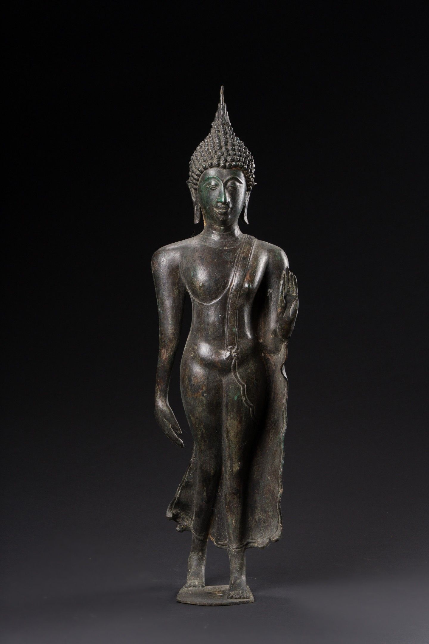 Bronze subject depicting Buddha walking in Abhaya-mudra posi…