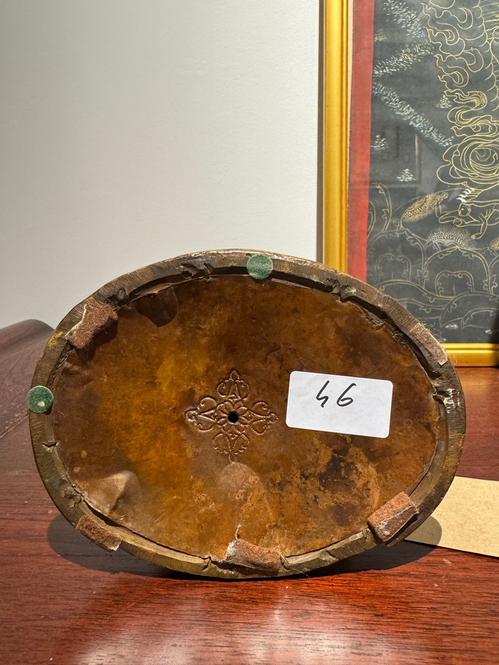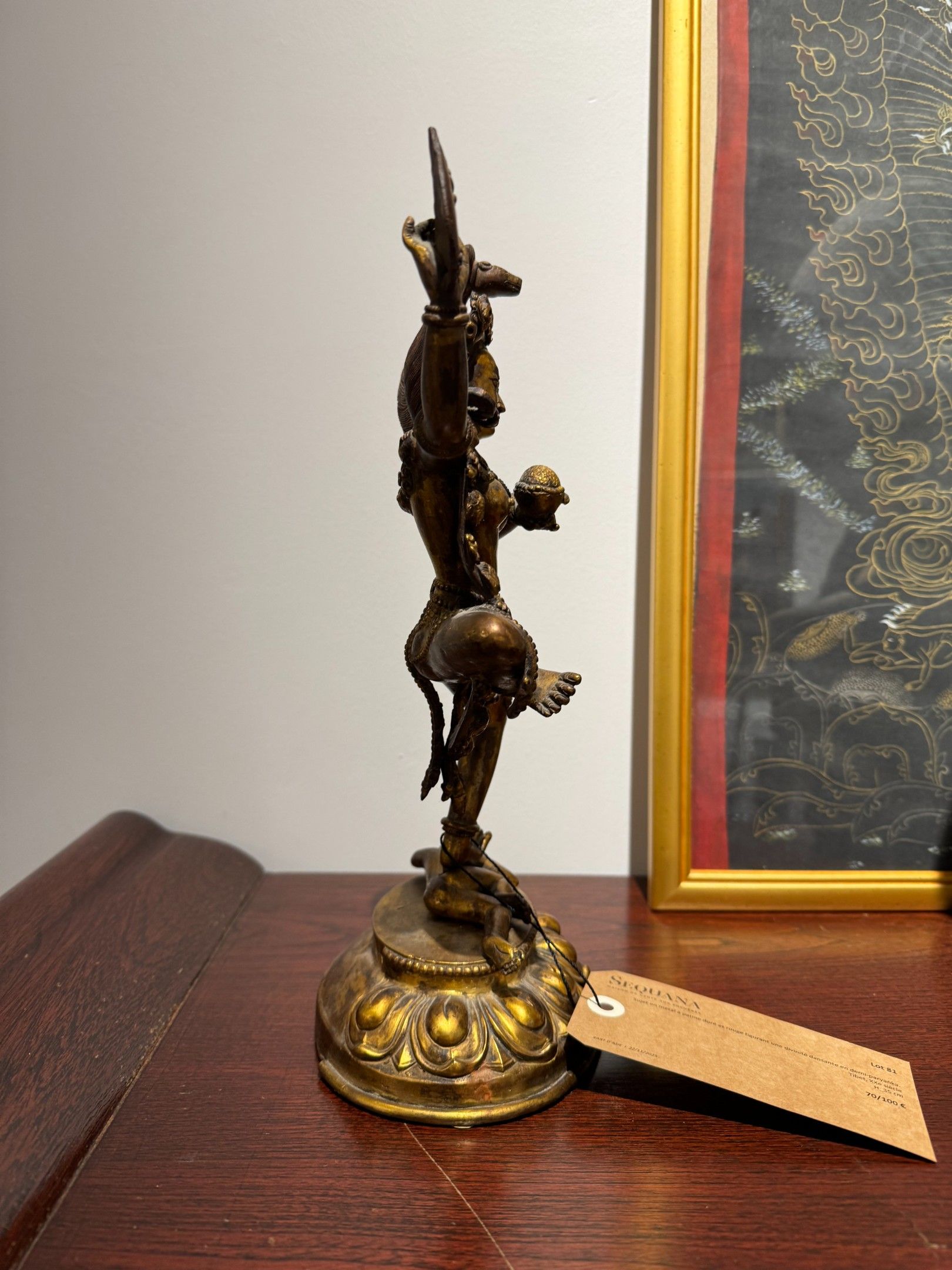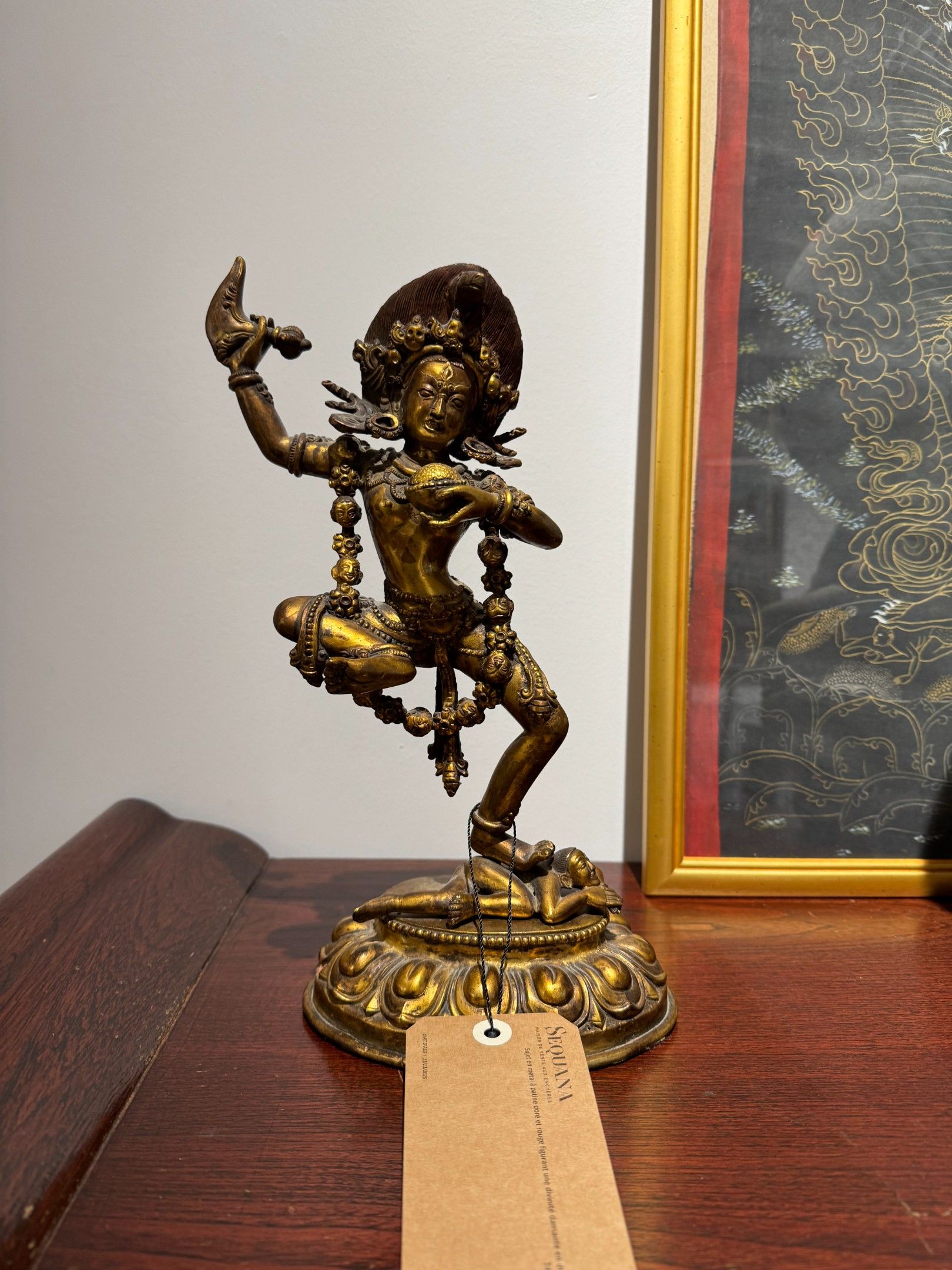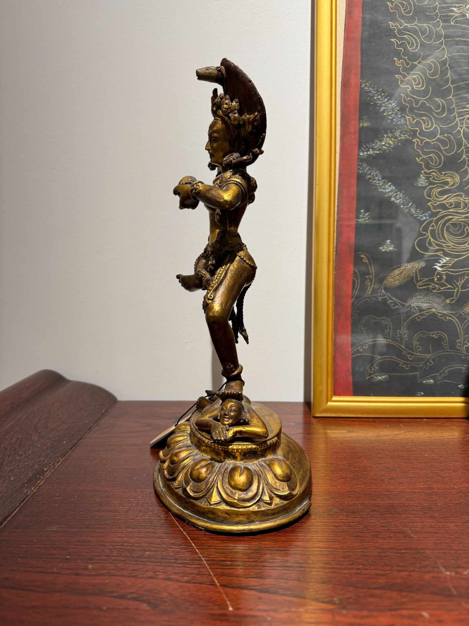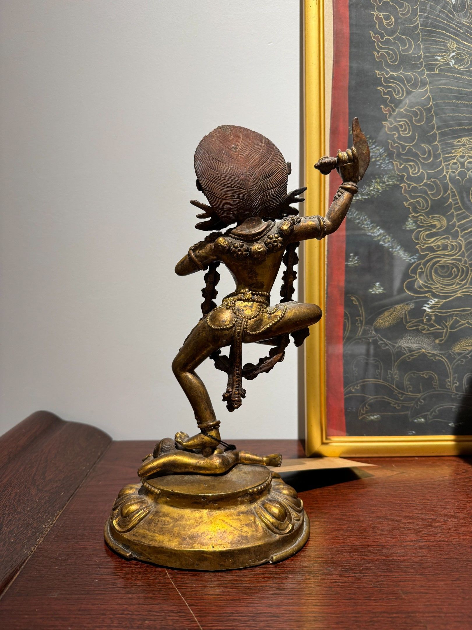 Gilt and red patina metal subject depicting a dancing divinity in half-paryaṅka.