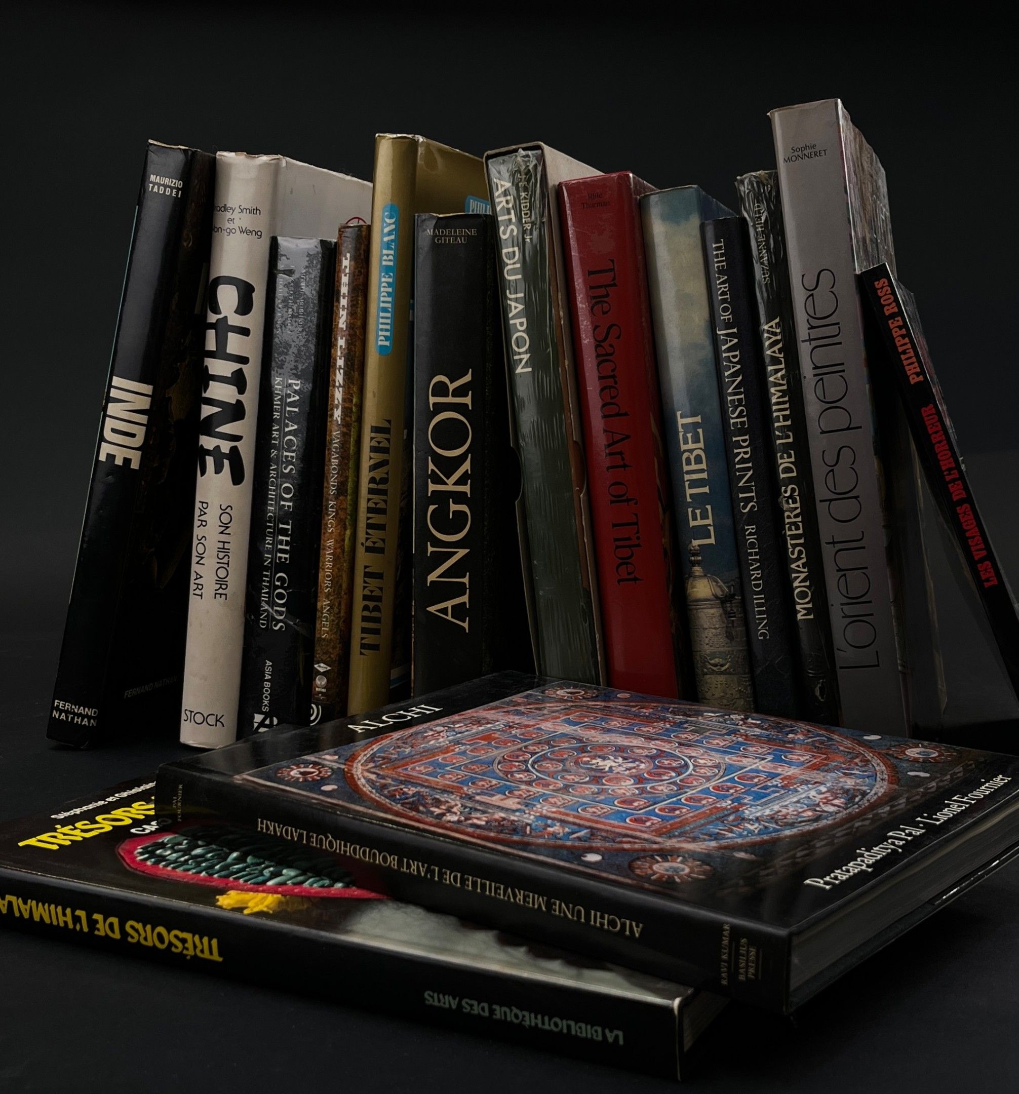 In a handle, a set of bound or paperback books, travel and fine arts, including Himalayas (Tibet and Bhutan), Japan, China, India, Orientalism and miscellaneous.