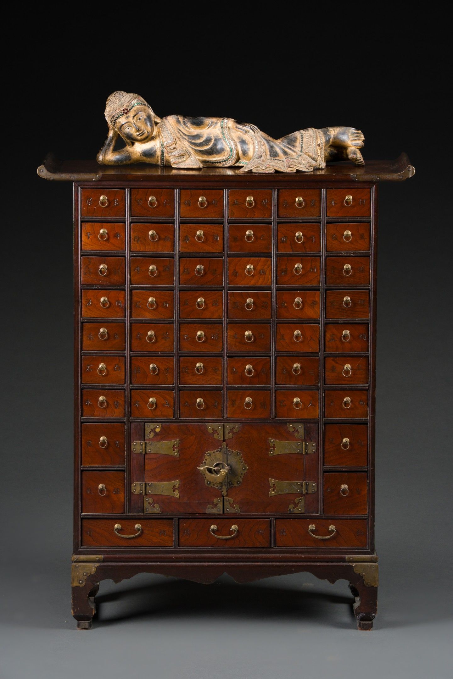Apothecary's cabinet in stained exotic wood opening with 49 …