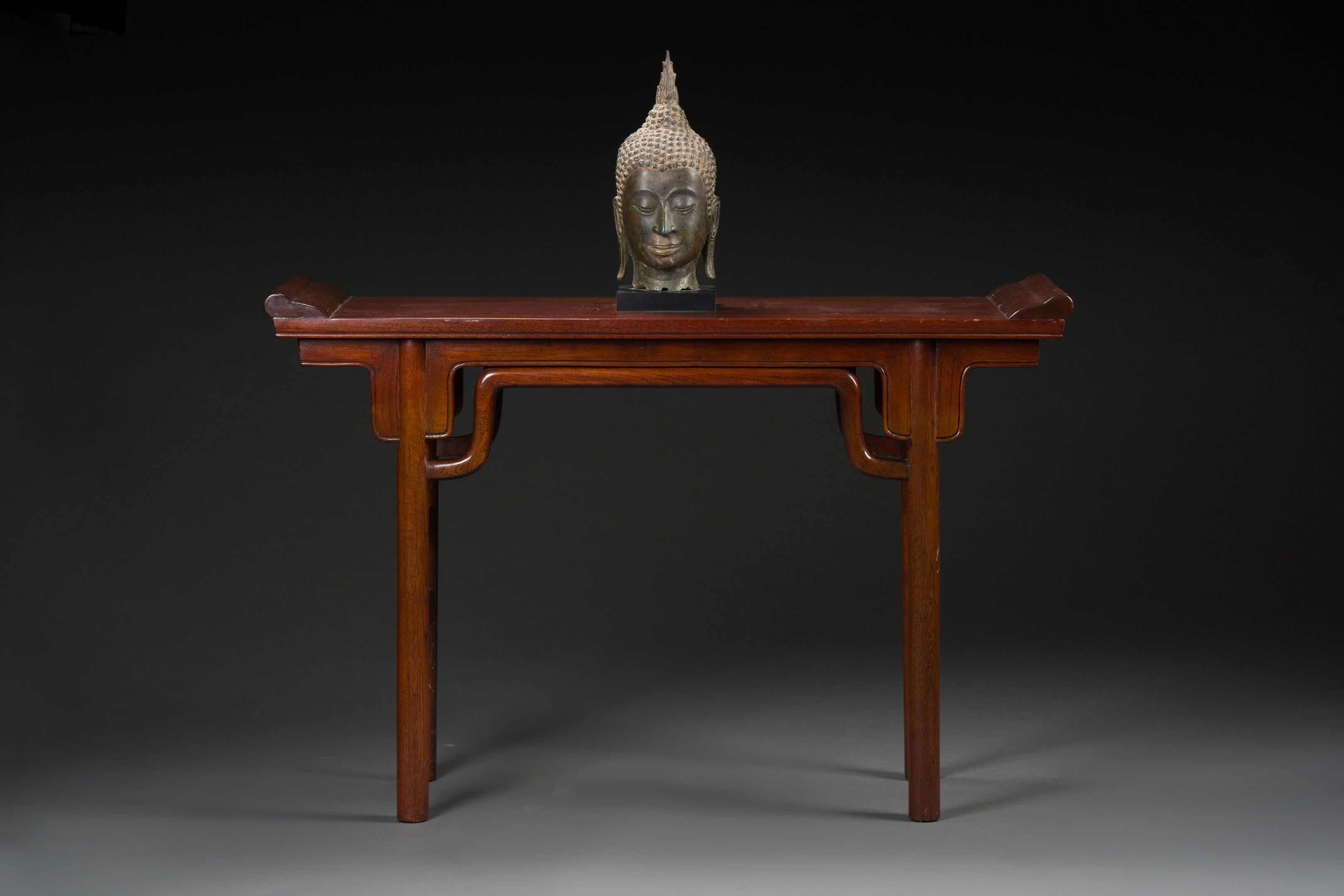 Console table in stained exotic wood, with an openwork top underlined by an openwork belt.